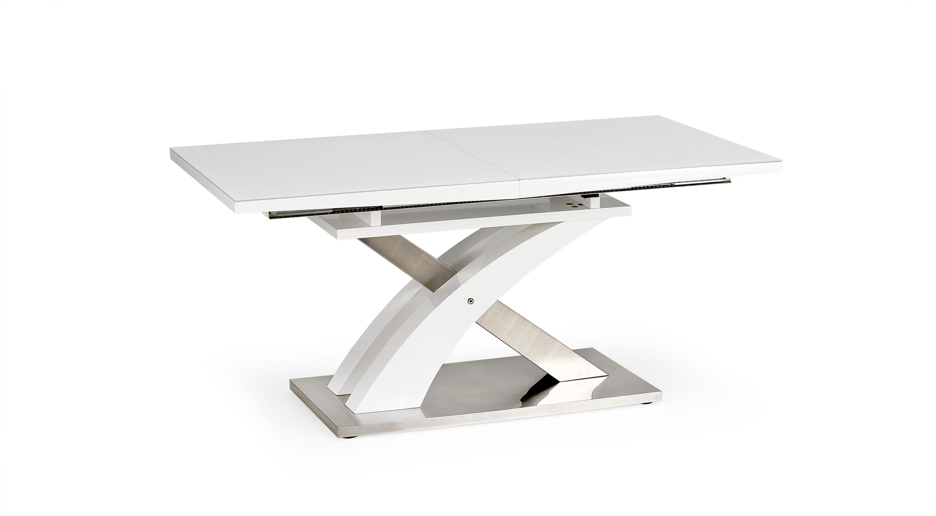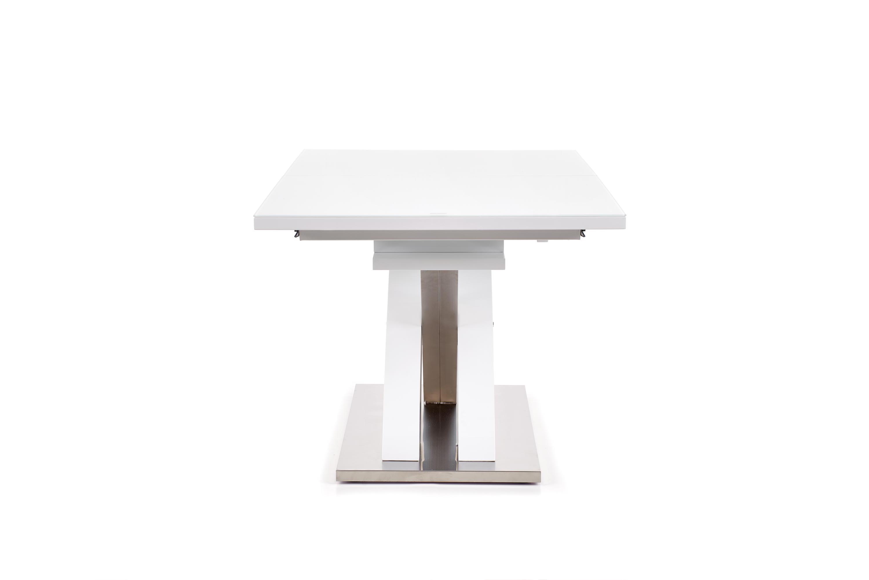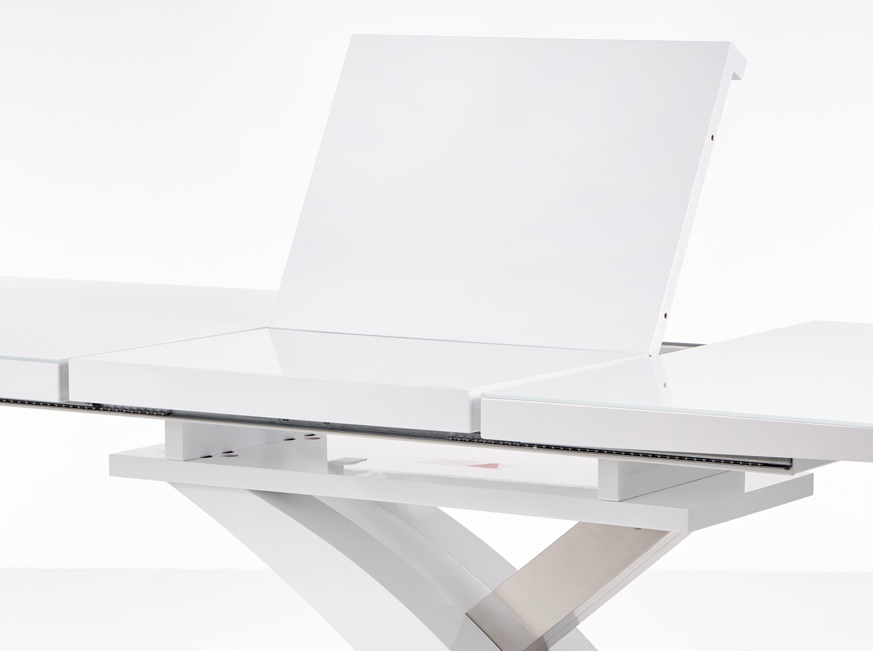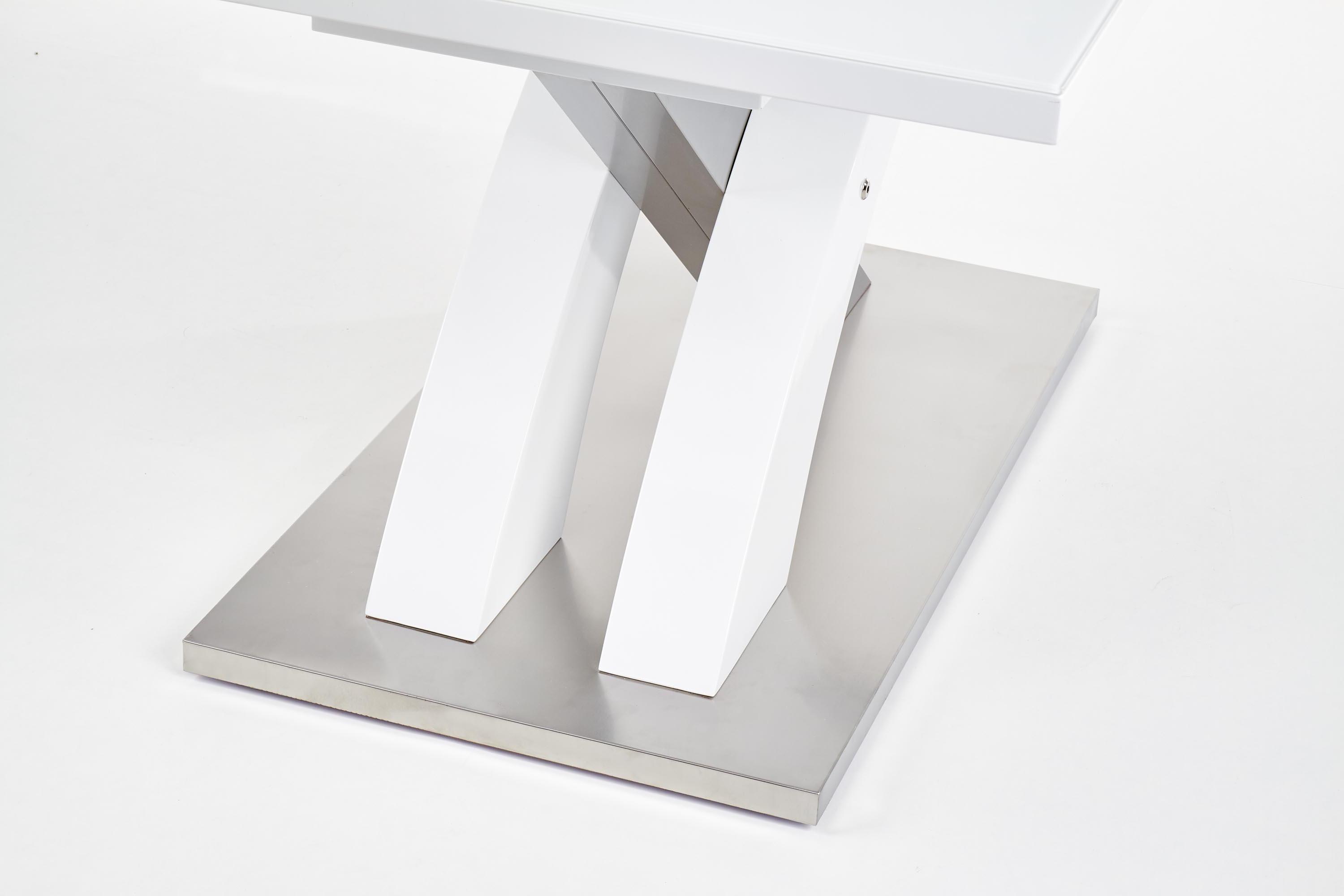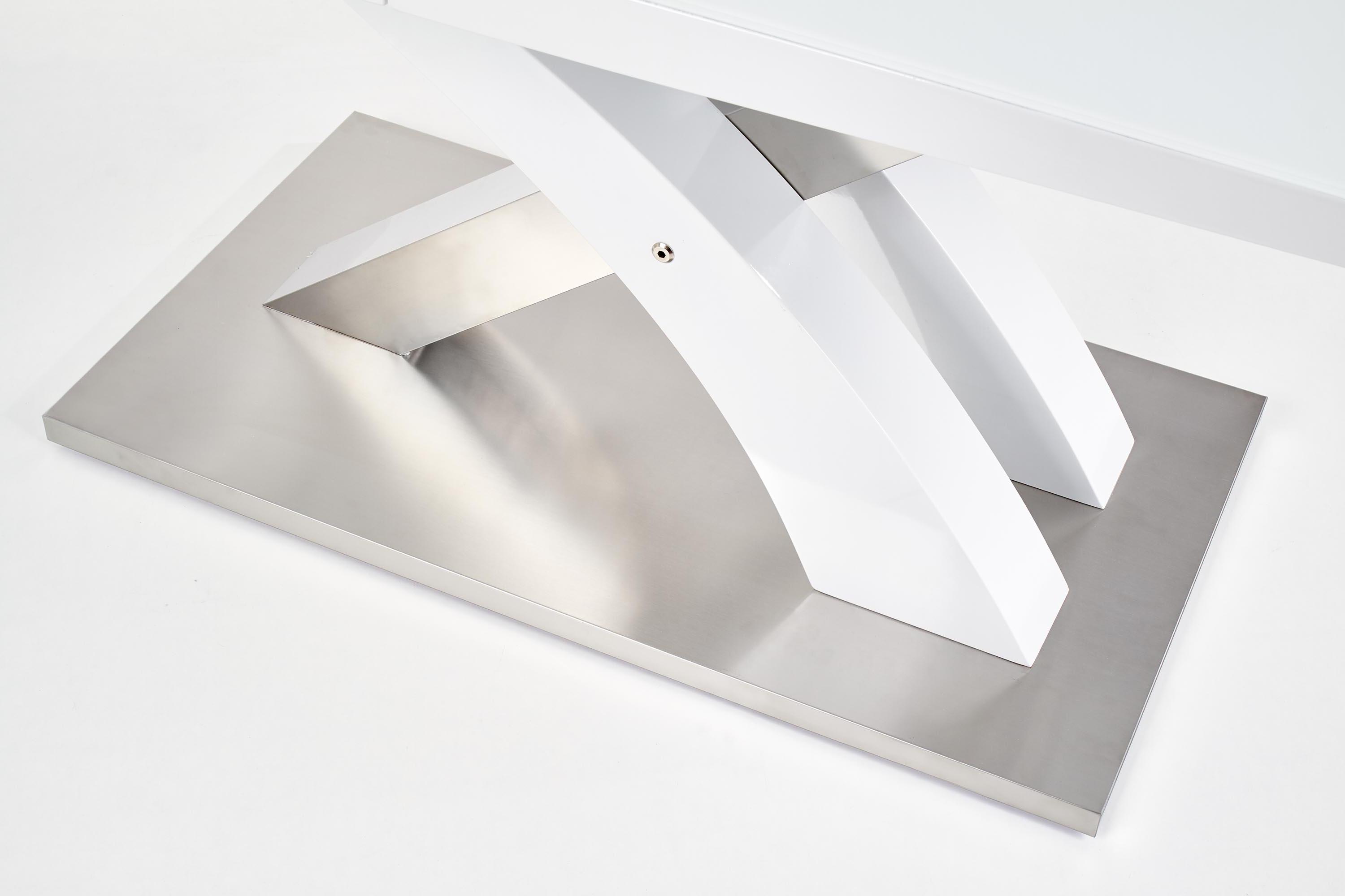 Stół wykonano z materiału: szkło / MDF lakierowany / stal nierdzewna, kolor szkło - ekstra biały, MDF - biały