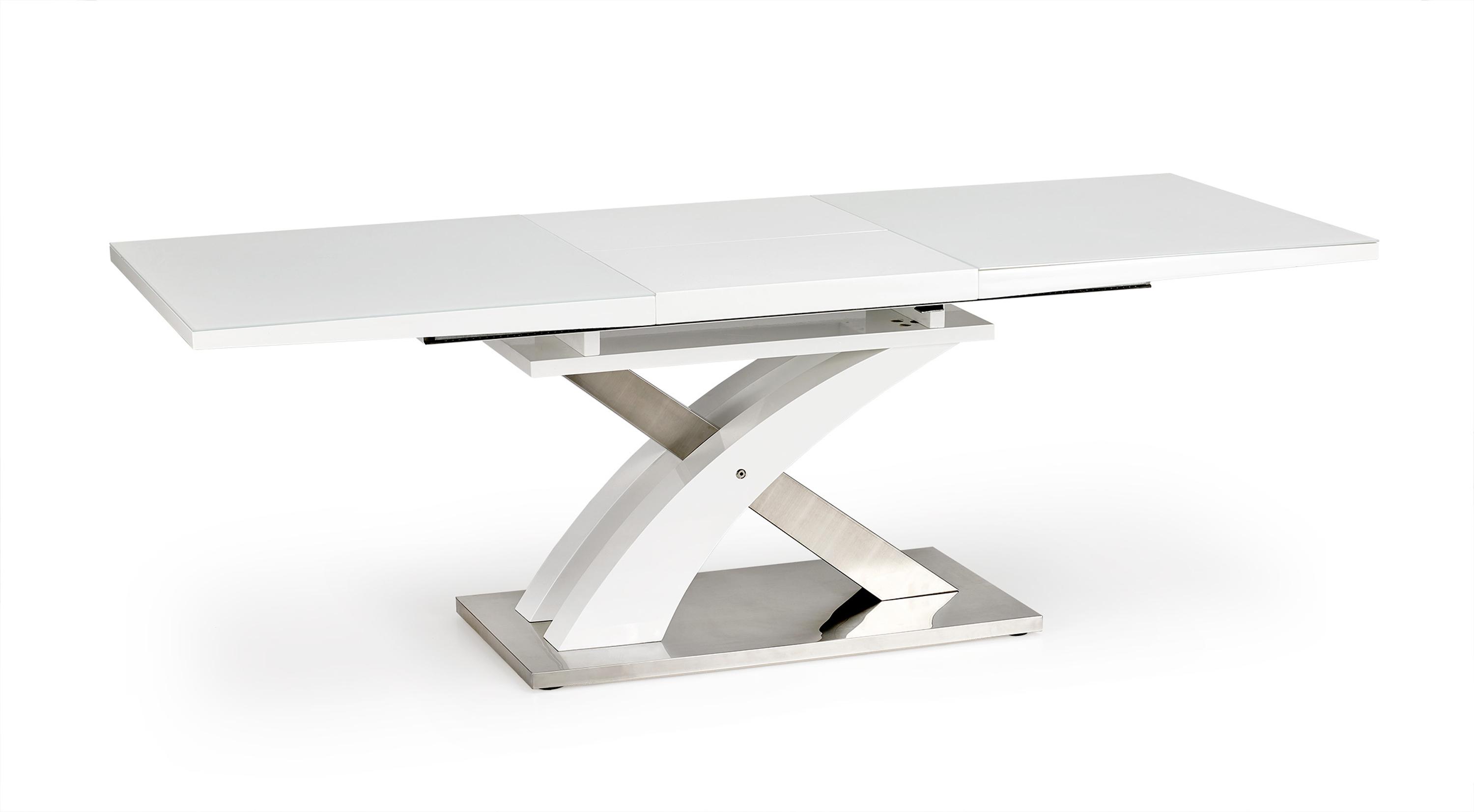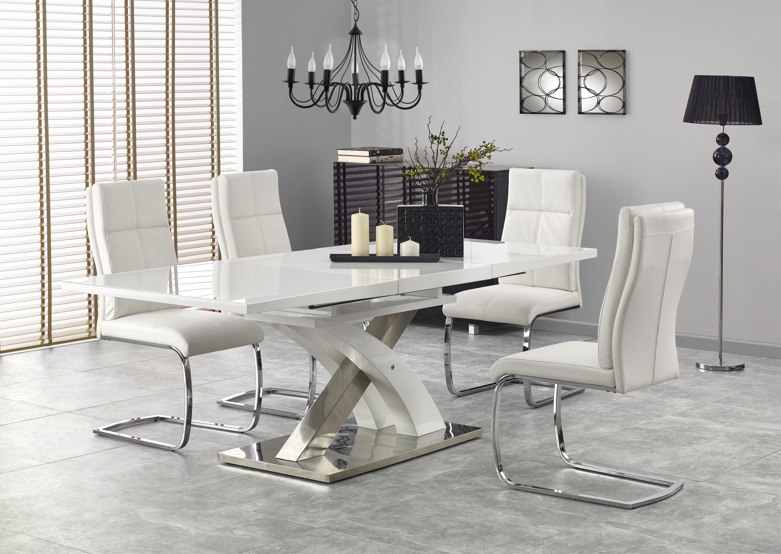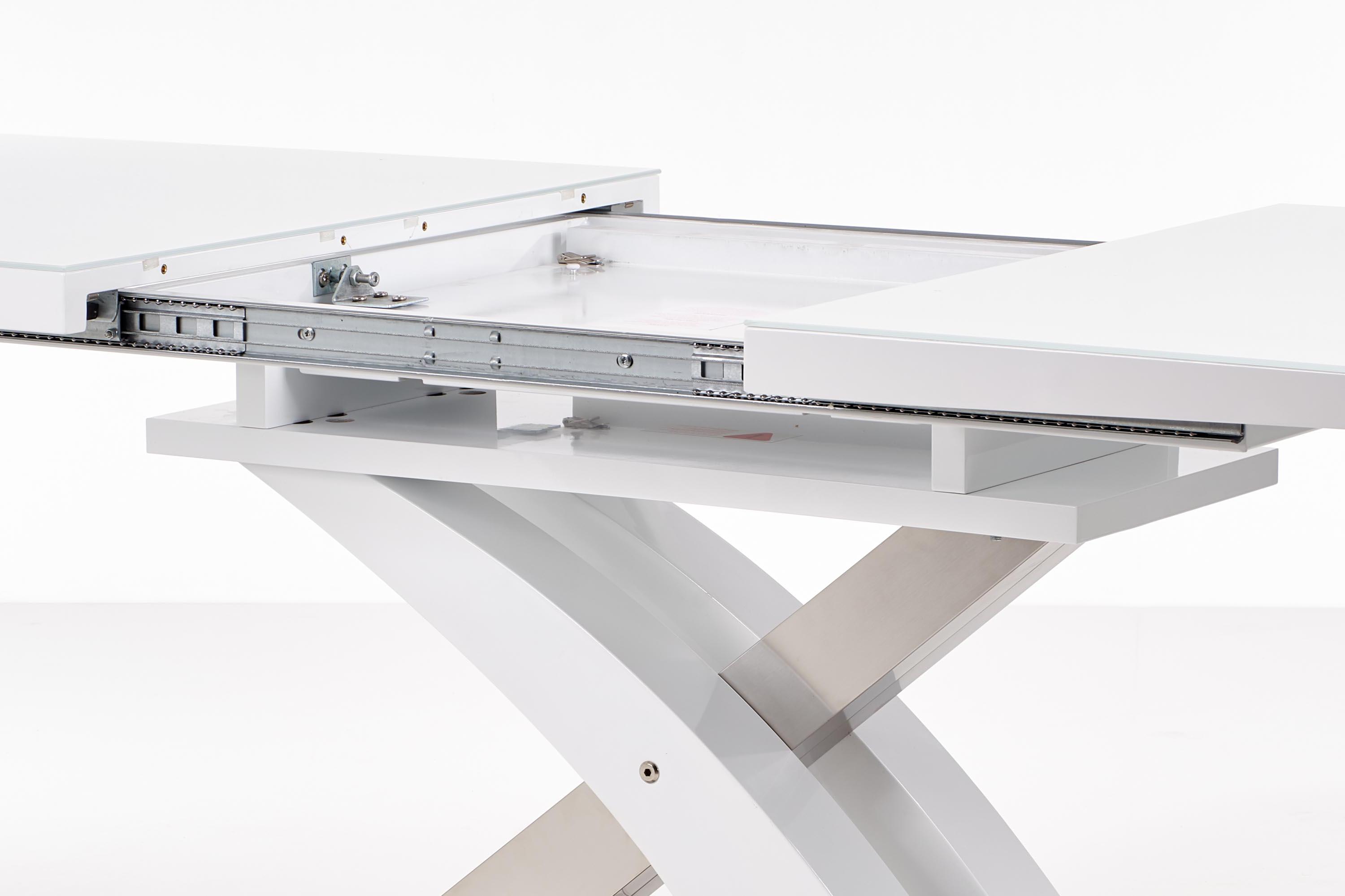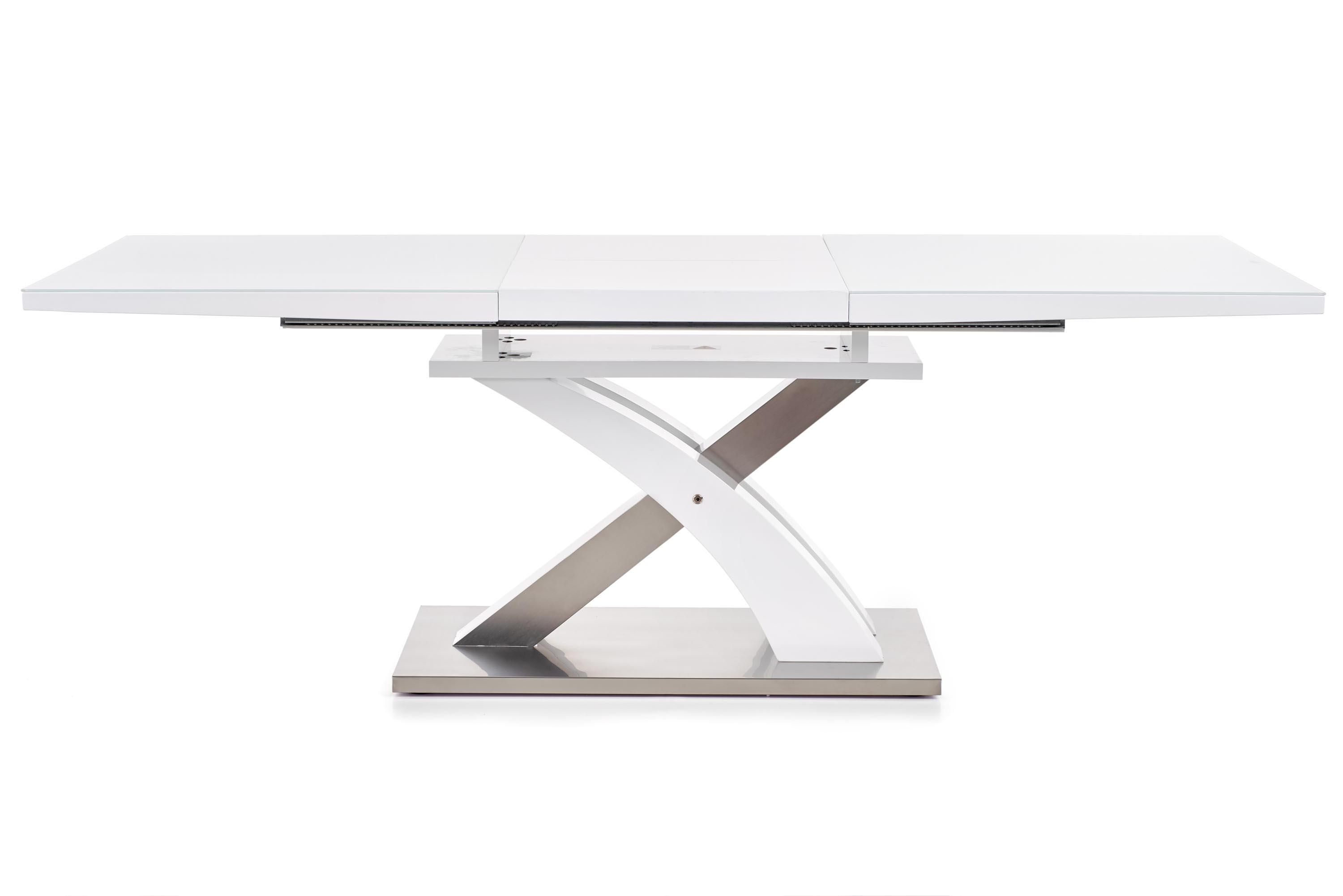Stół wykonano z materiału: szkło / MDF lakierowany / stal nierdzewna, kolor szkło - ekstra biały, MDF - biały