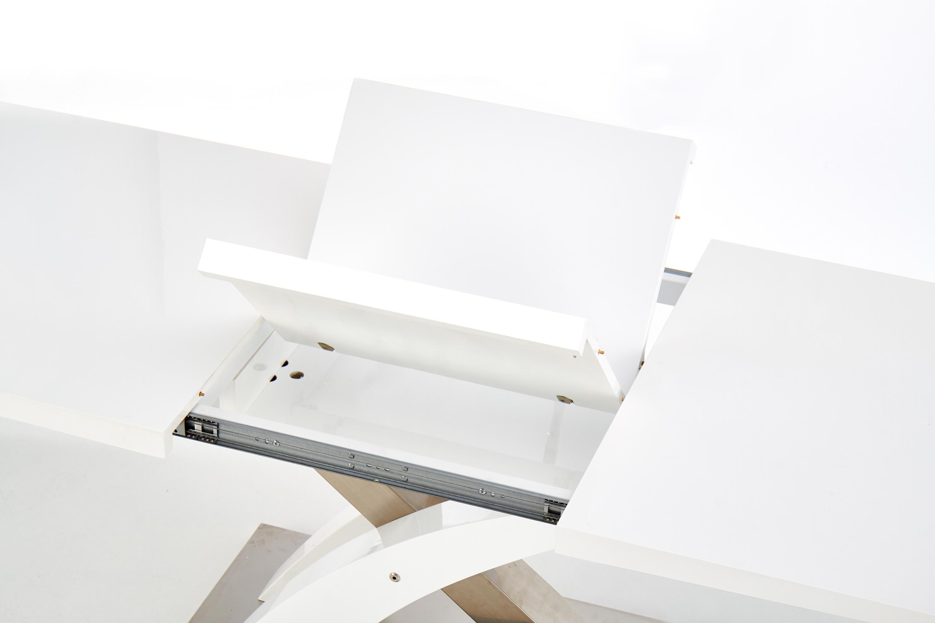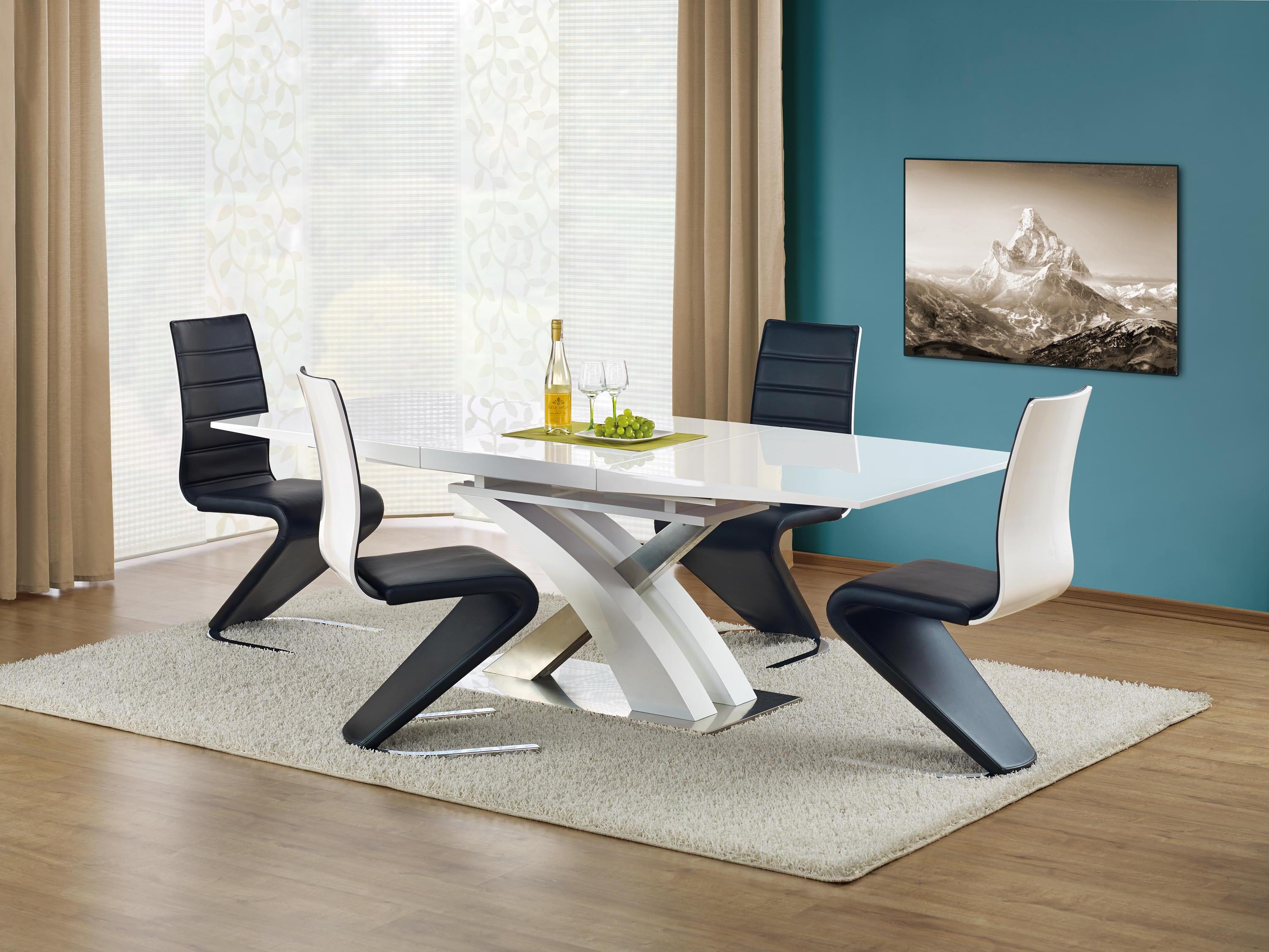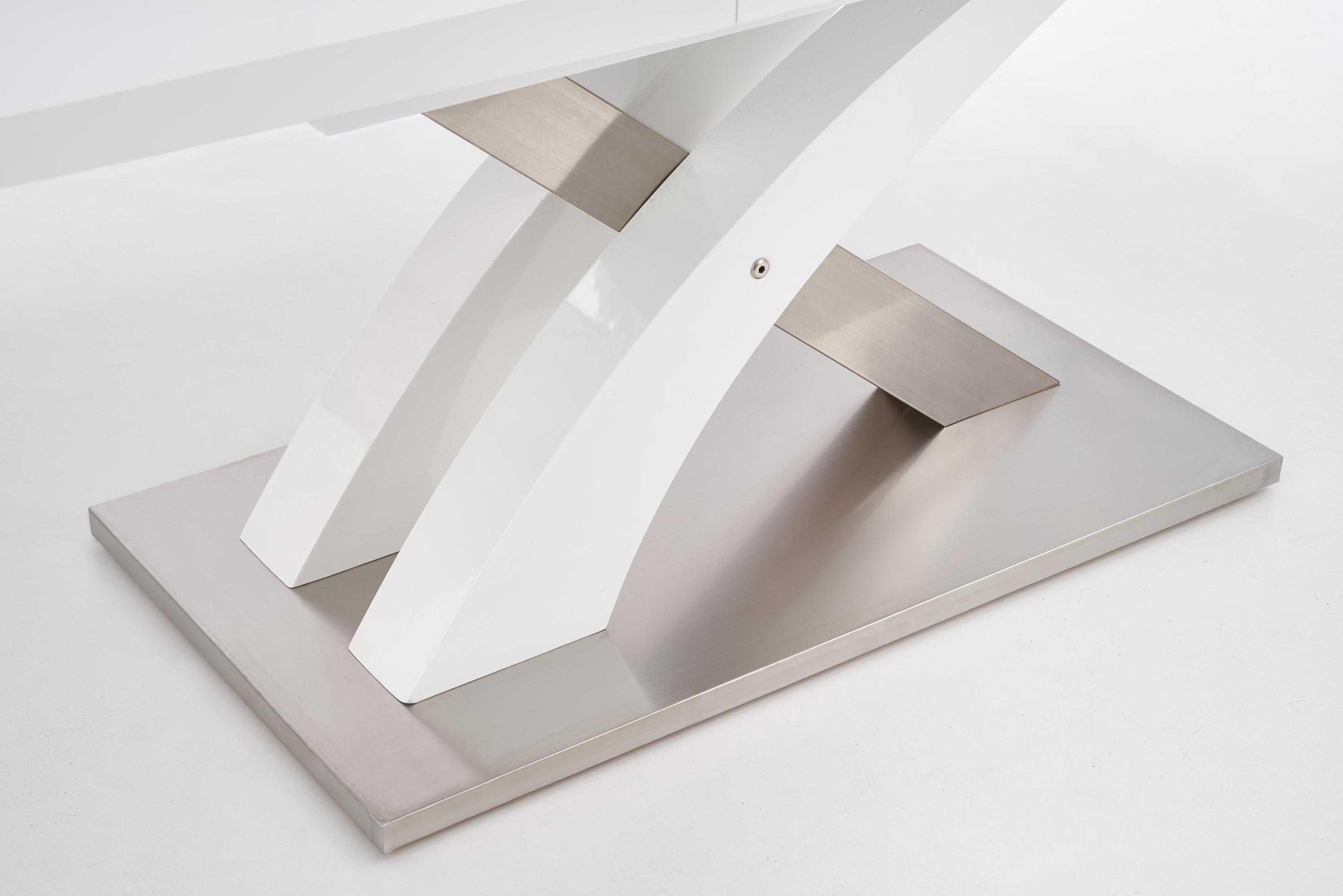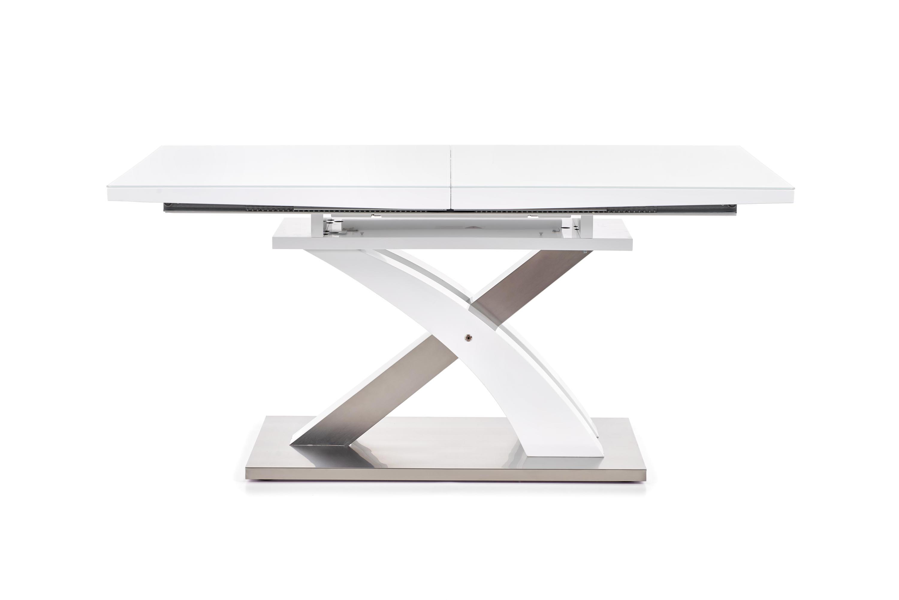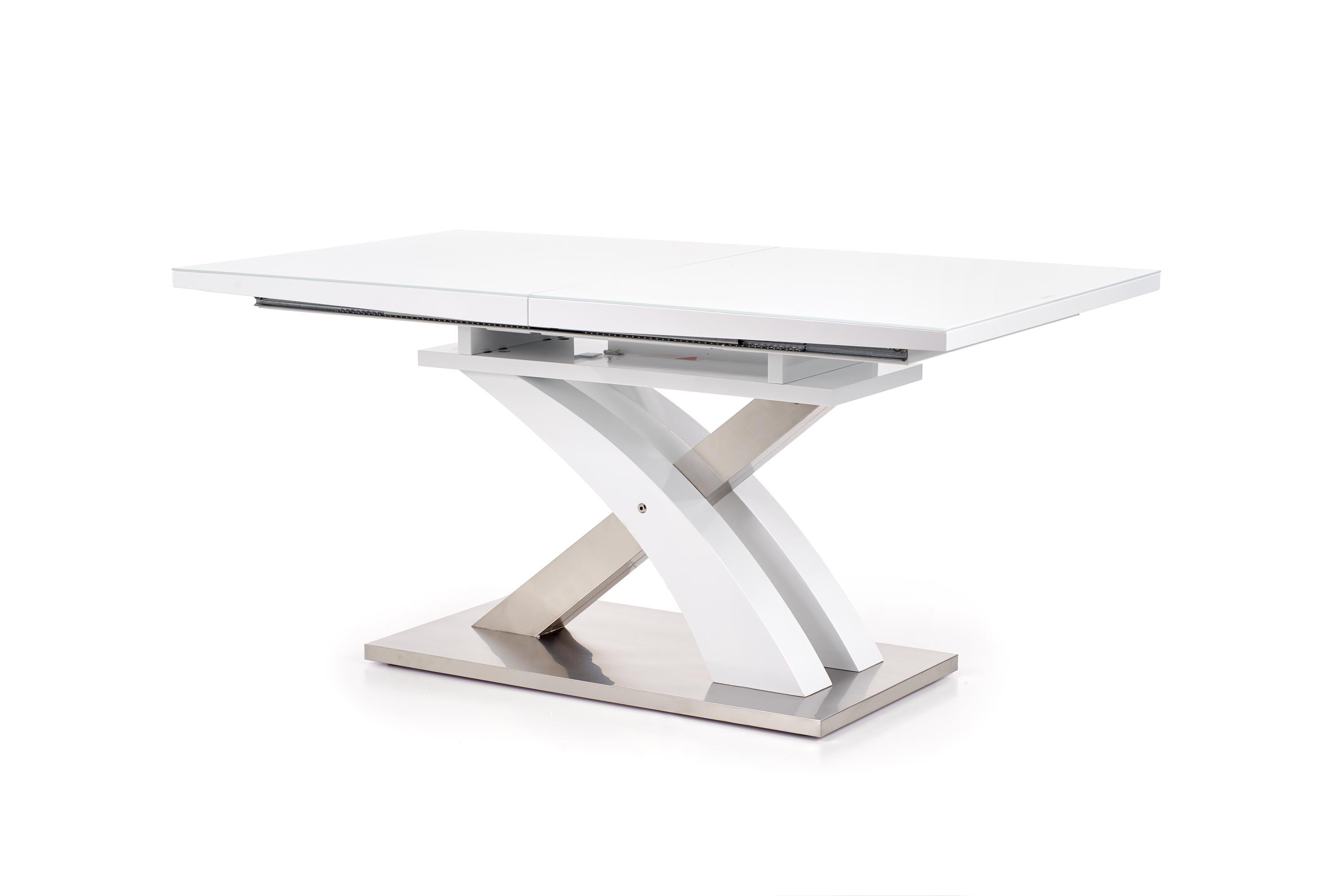 Stół wykonano z materiału: szkło / MDF lakierowany / stal nierdzewna, kolor szkło - ekstra biały, MDF - biały