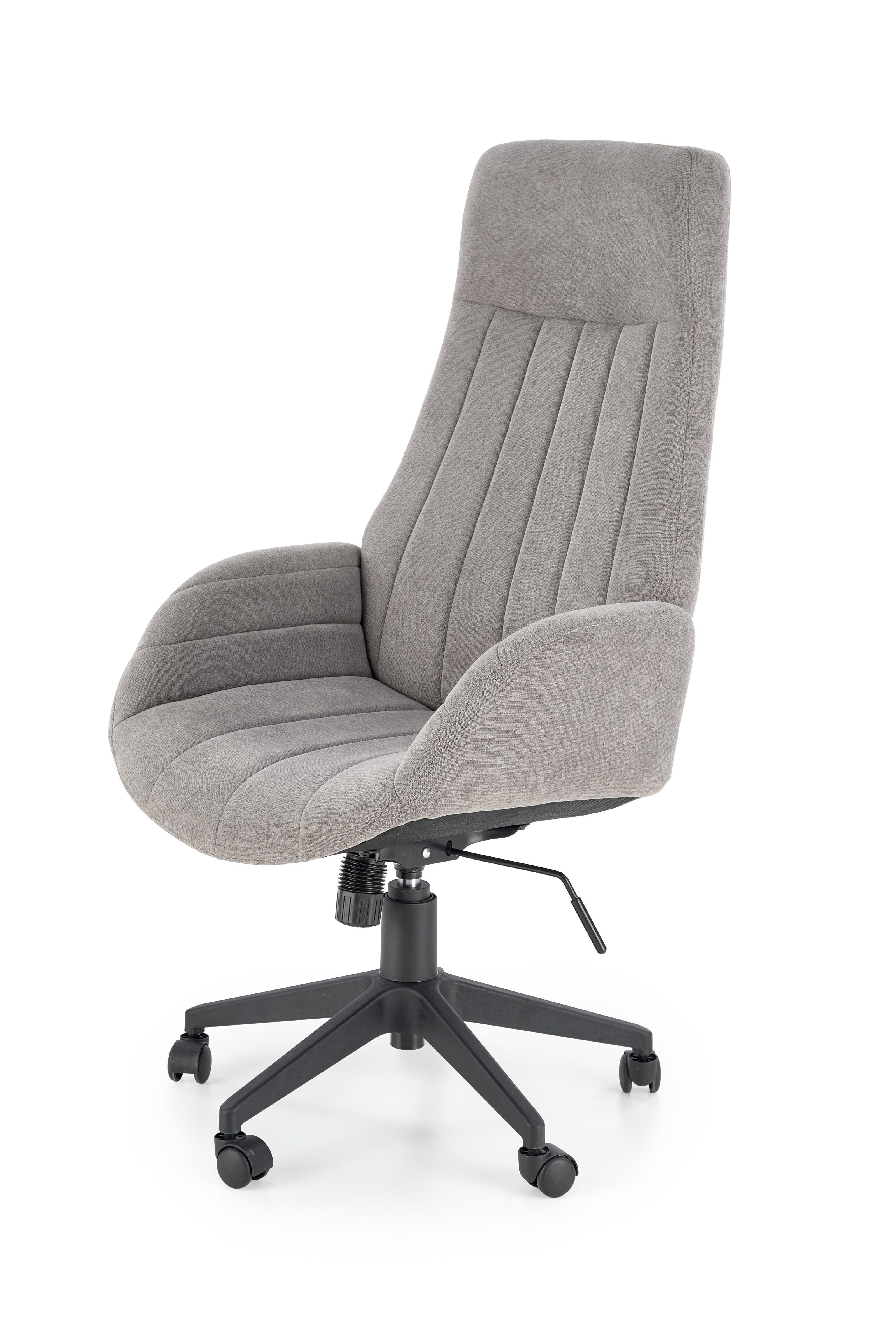 Strona główna » Meble » Fotele do biurka » Biurowy fotel w popielatej tapicerce, kubełkowa konstrukcja