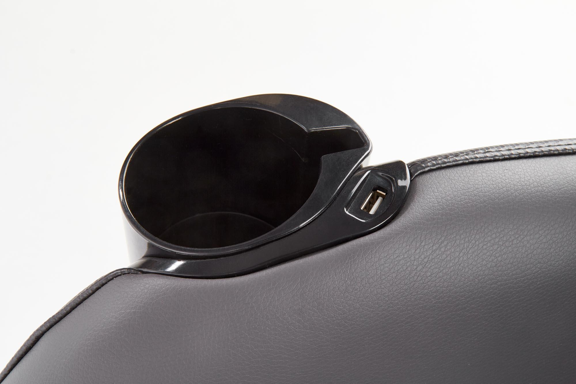 Wykonano z materiału: eco skóra, kolor ciemny popiel - popielaty