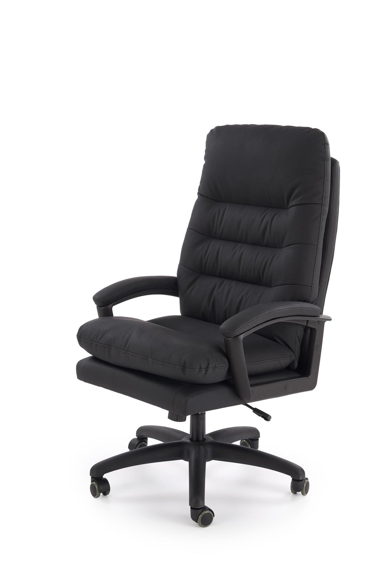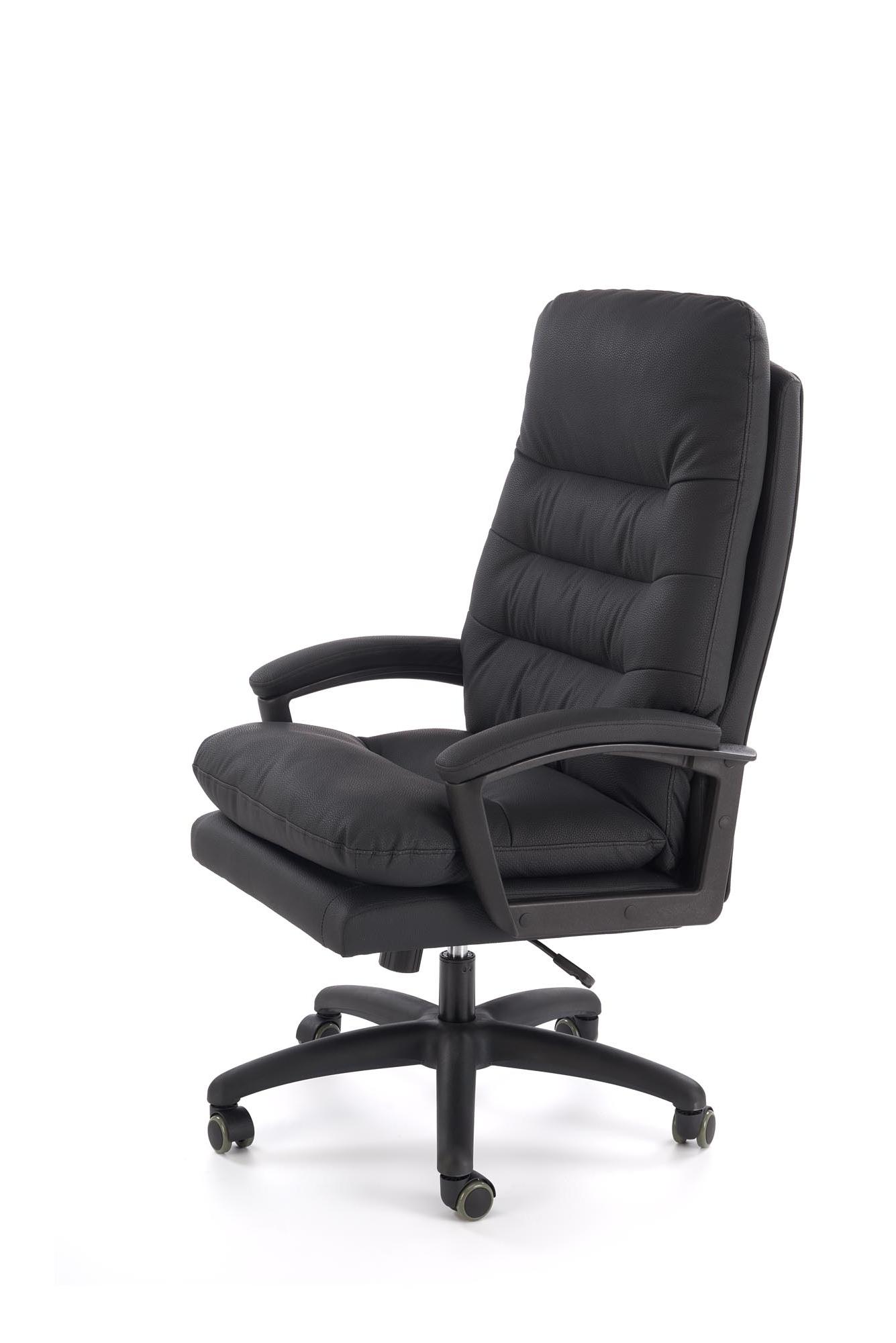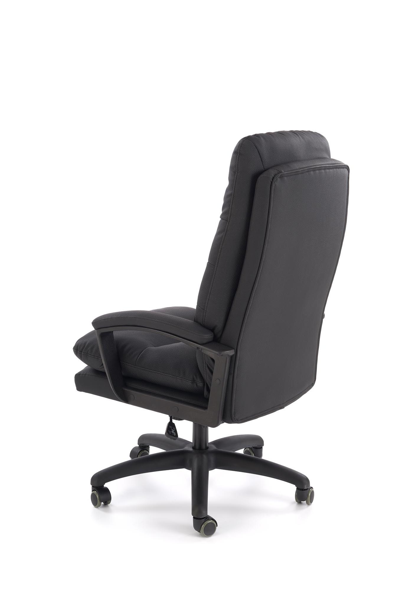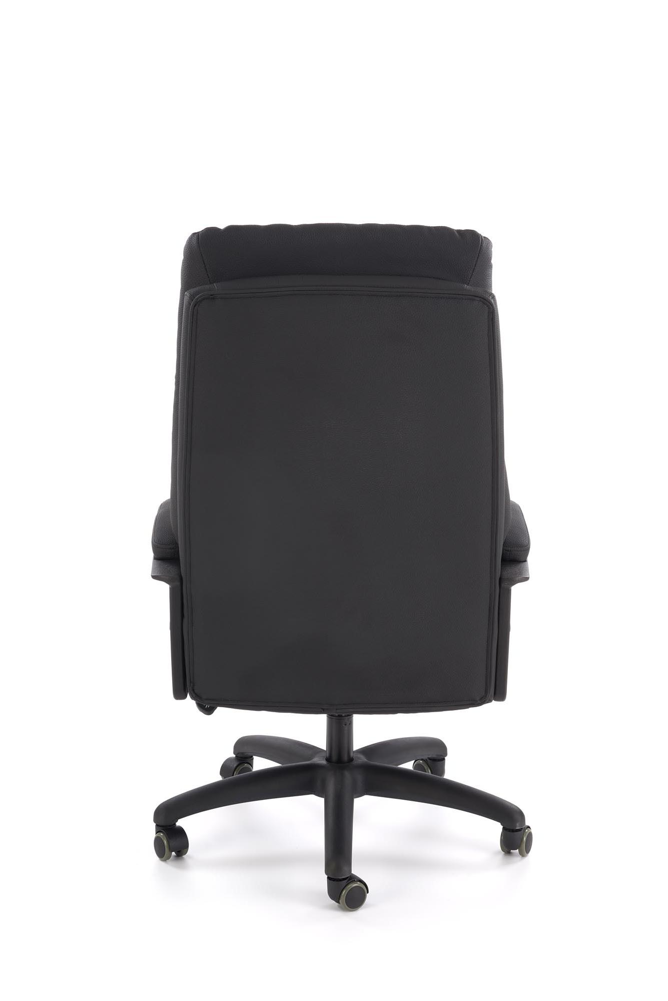 Strona główna » Meble » Fotele do biurka » Elegancki czarny fotel gabinetowy na obrotowej podstawie z kółkami kauczukowymi do powierzchni twardych, eko skóra