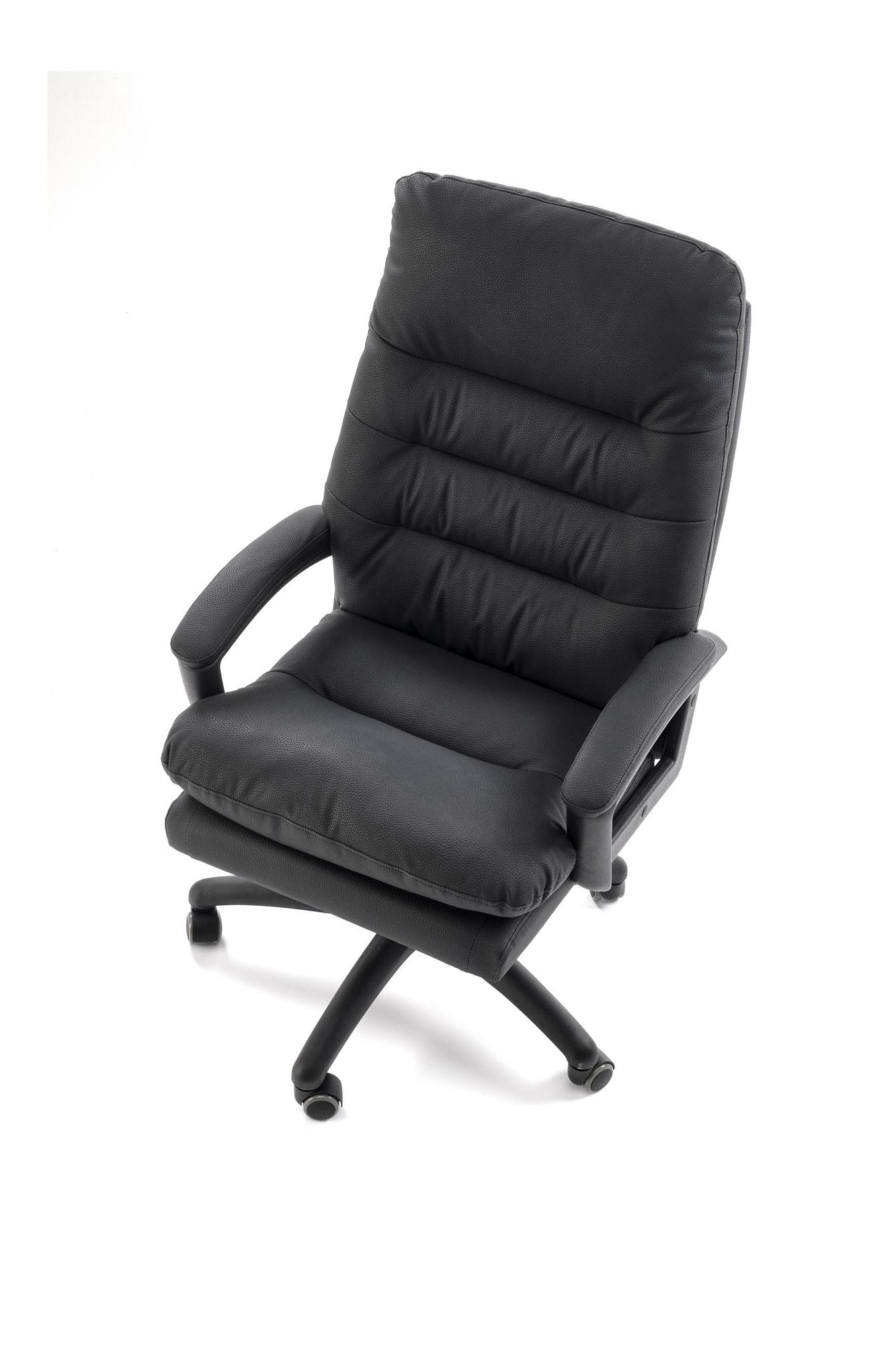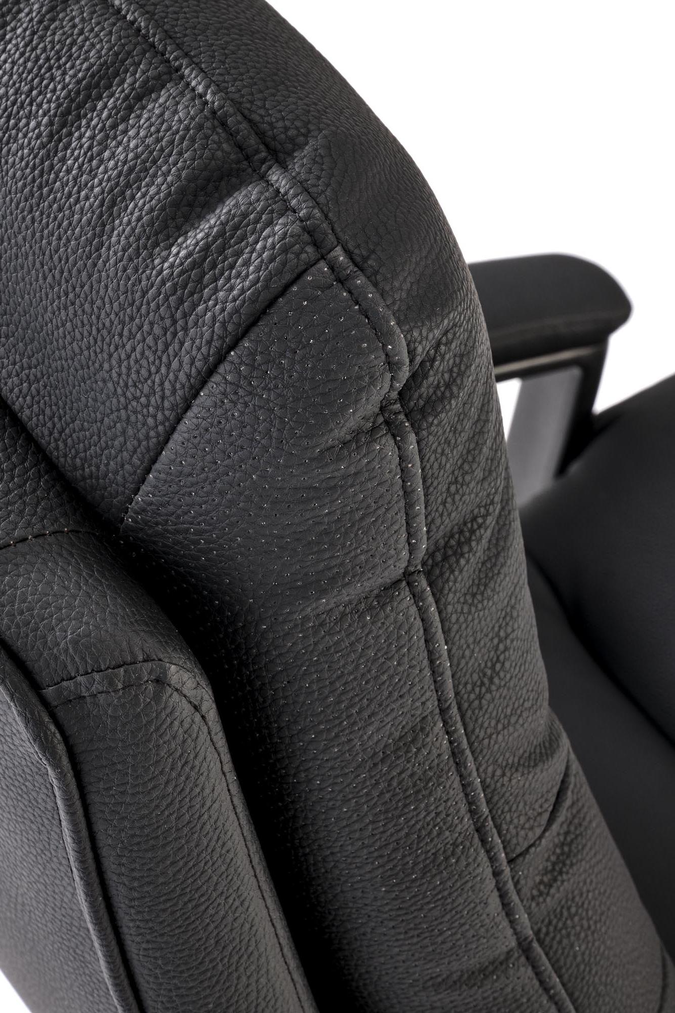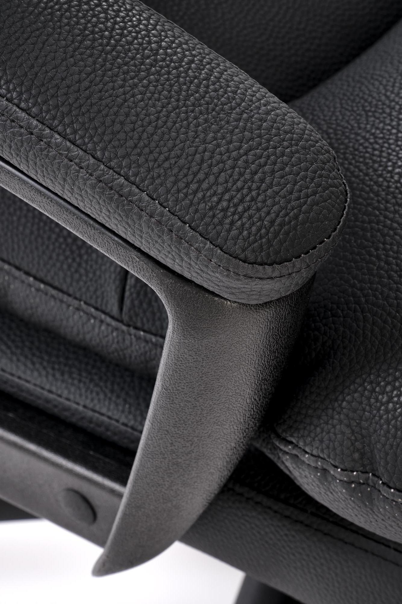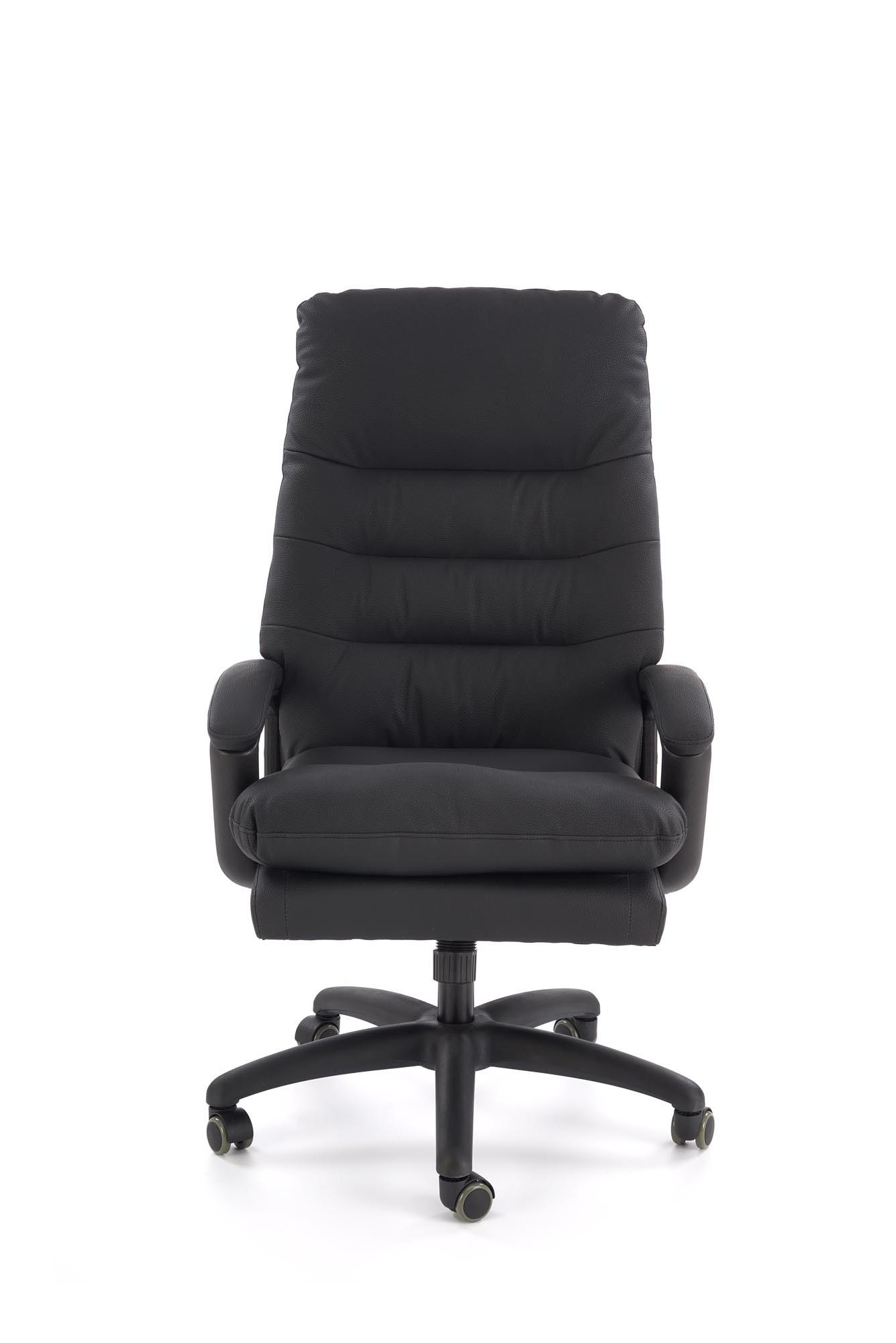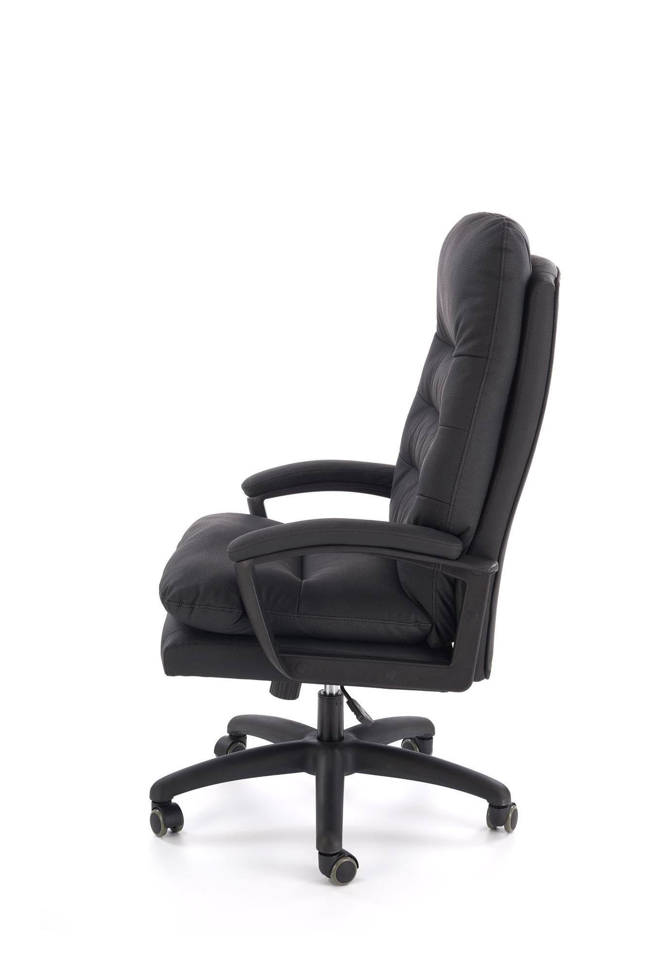 Strona główna » Meble » Fotele do biurka » Elegancki czarny fotel gabinetowy na obrotowej podstawie z kółkami kauczukowymi do powierzchni twardych, eko skóra