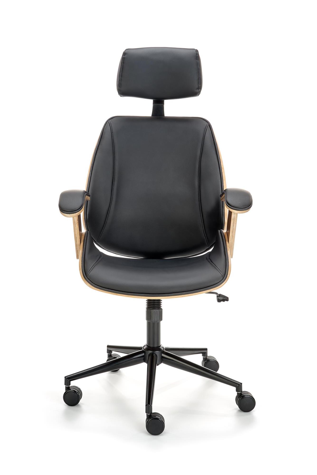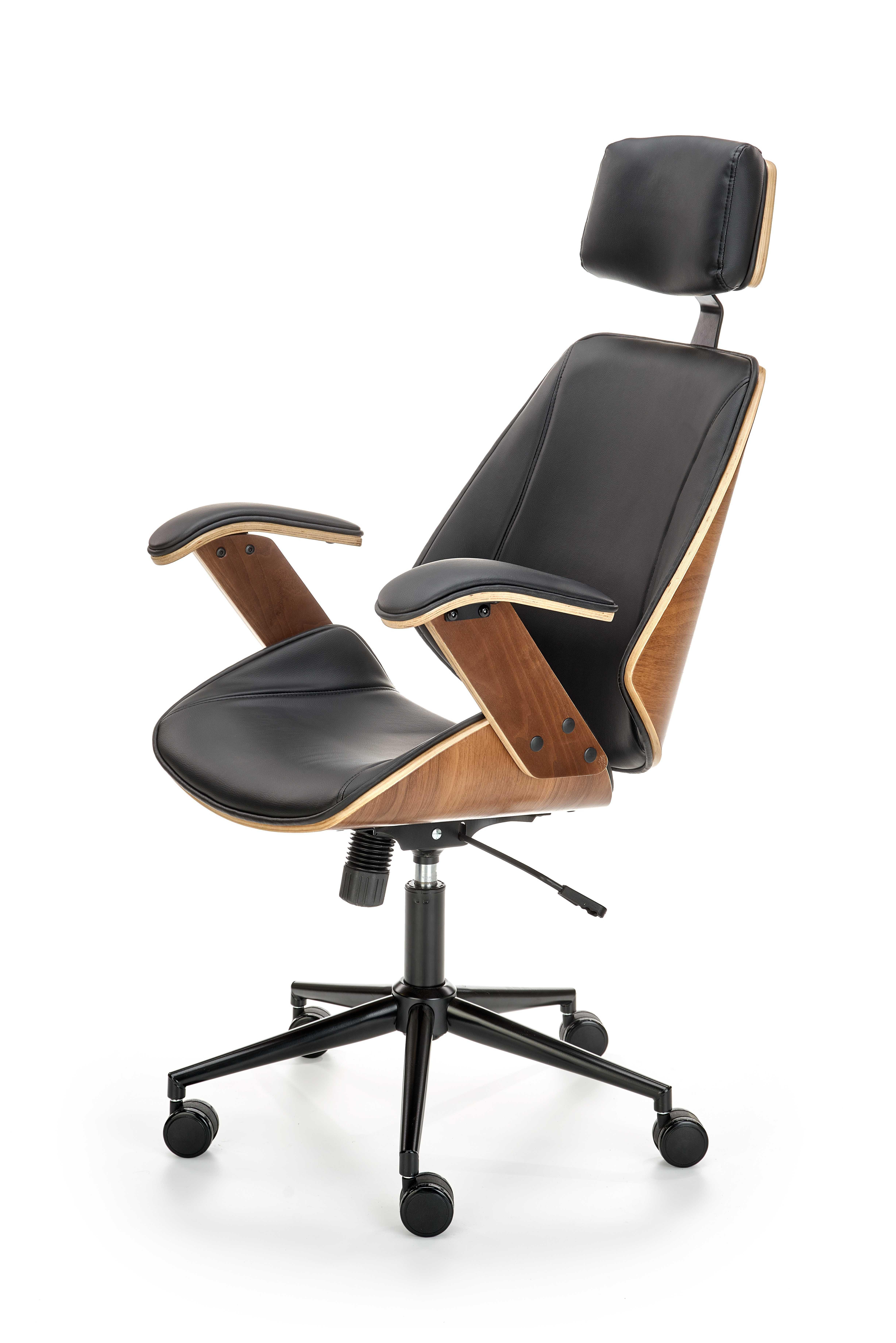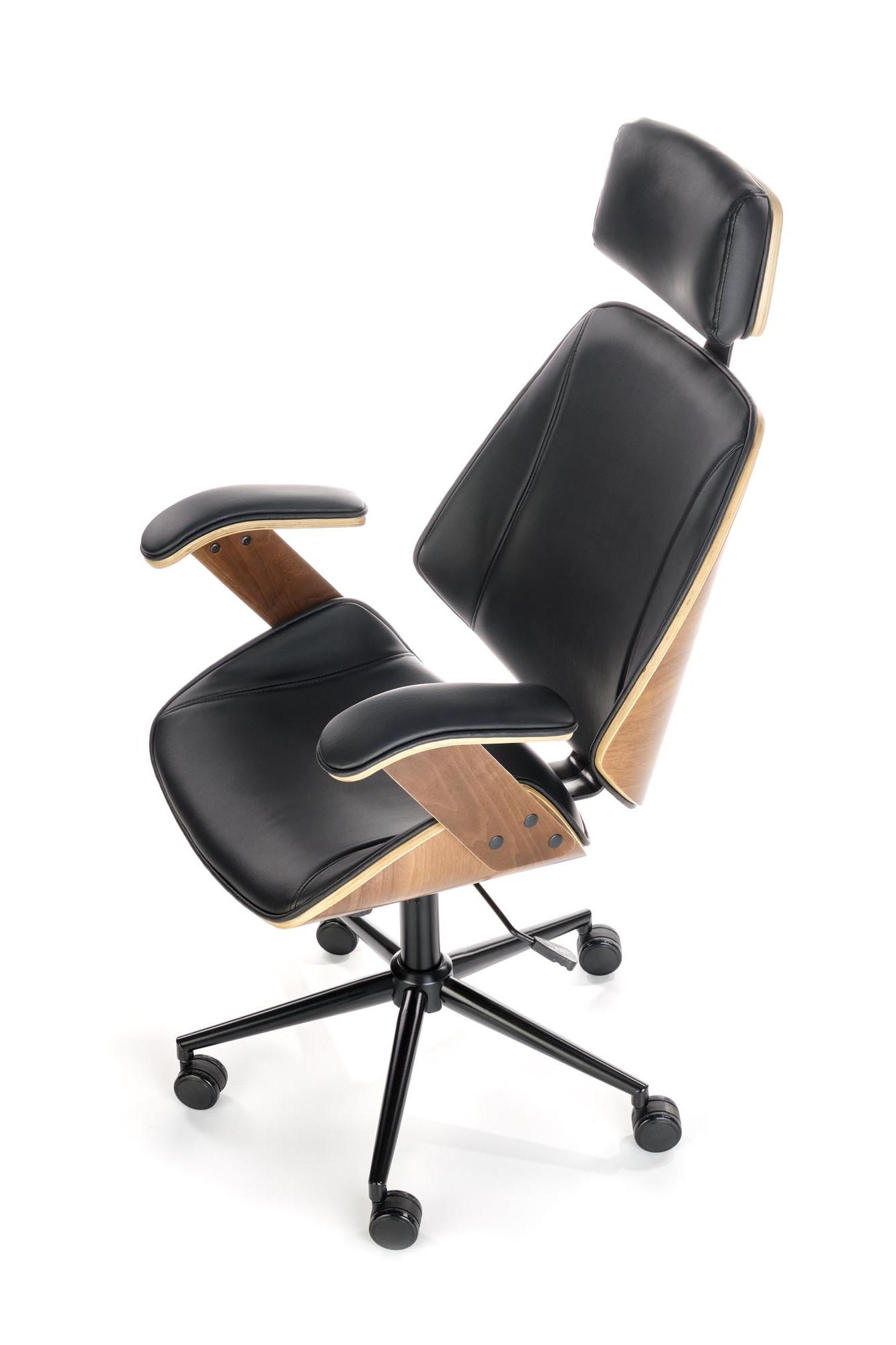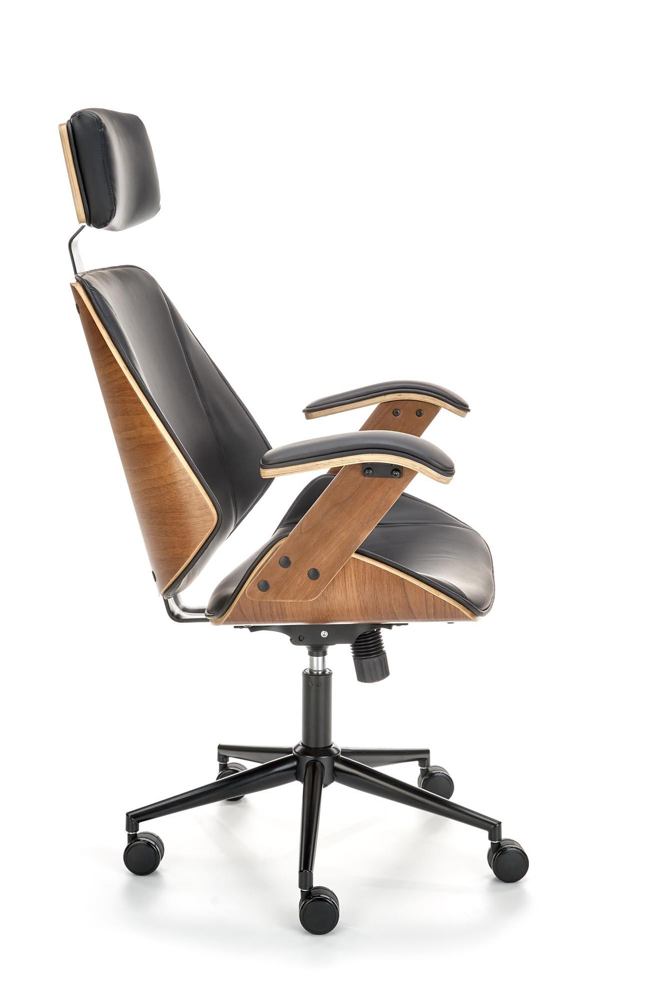 Fotel obrotowy wykonano z materiału: orzechowy - czarny