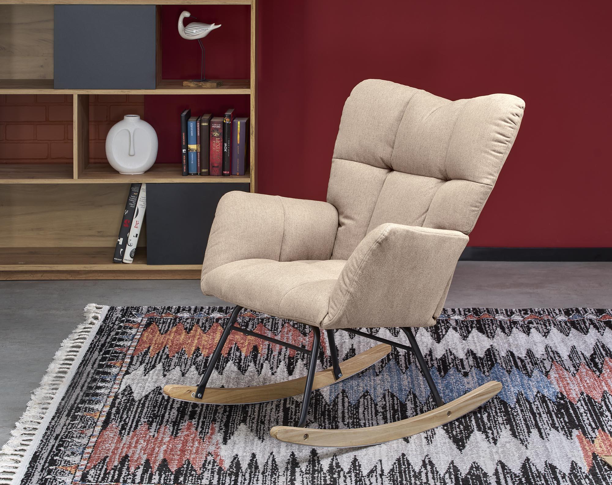 Wykonano z materiału: tkanina - NEA / stal malowana proszkowo / drewno lite, kolor beżowy NEA#25