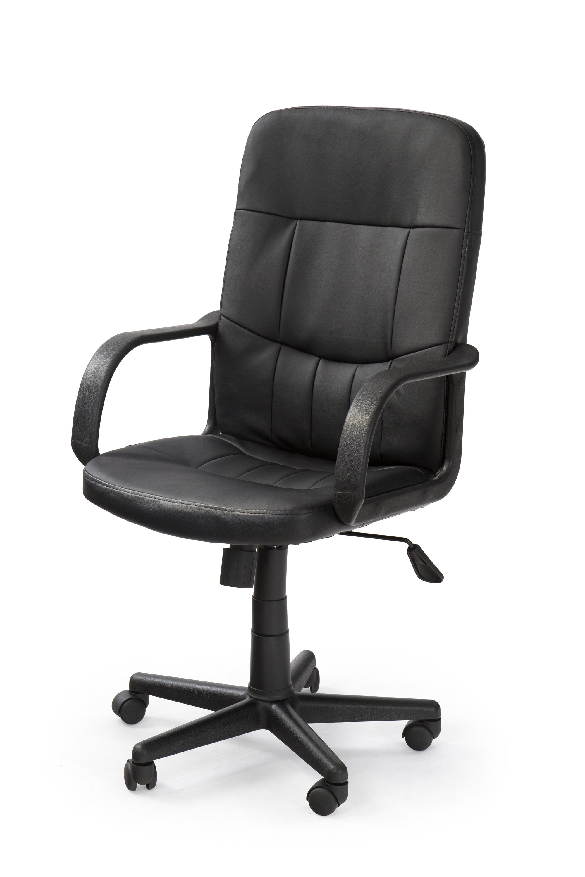 Fotel do biurka, bez zagłówka, w czarnej ekoskórze, na czarnej obrotowej podstawie