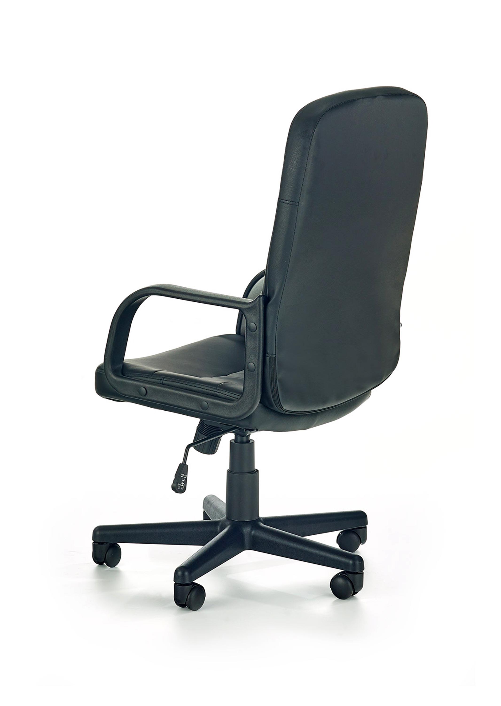 Strona główna » Meble » Fotele do biurka » Fotel do biurka, bez zagłówka, w czarnej ekoskórze, na czarnej obrotowej podstawie