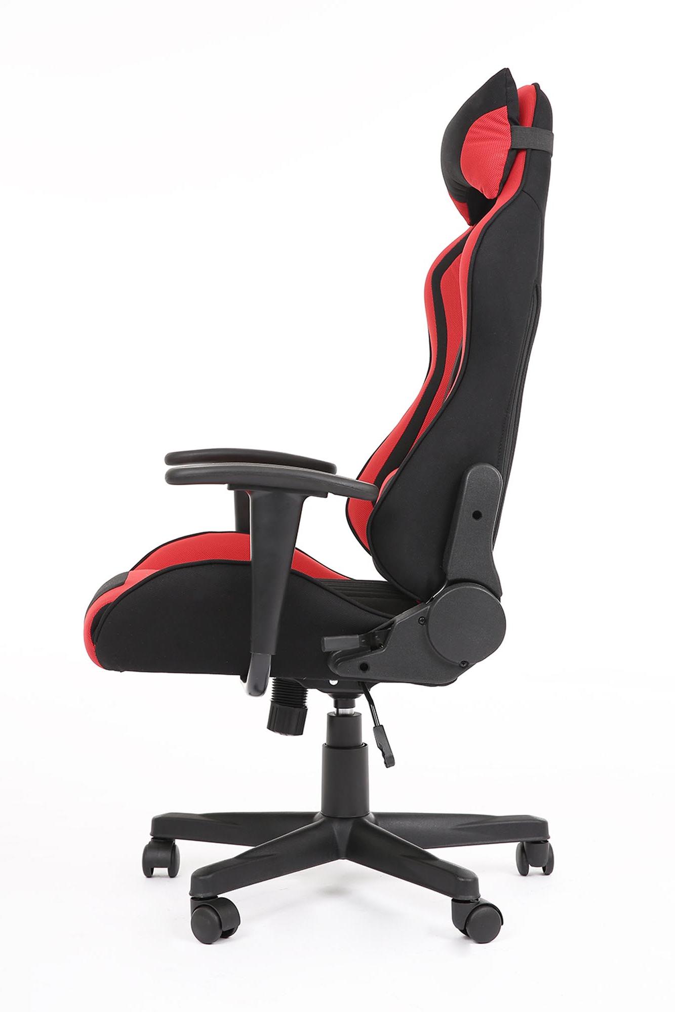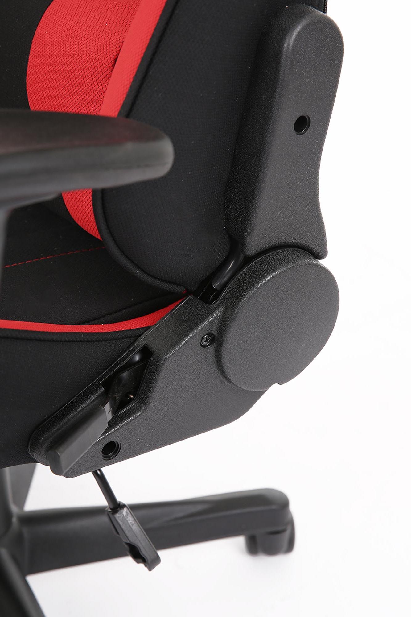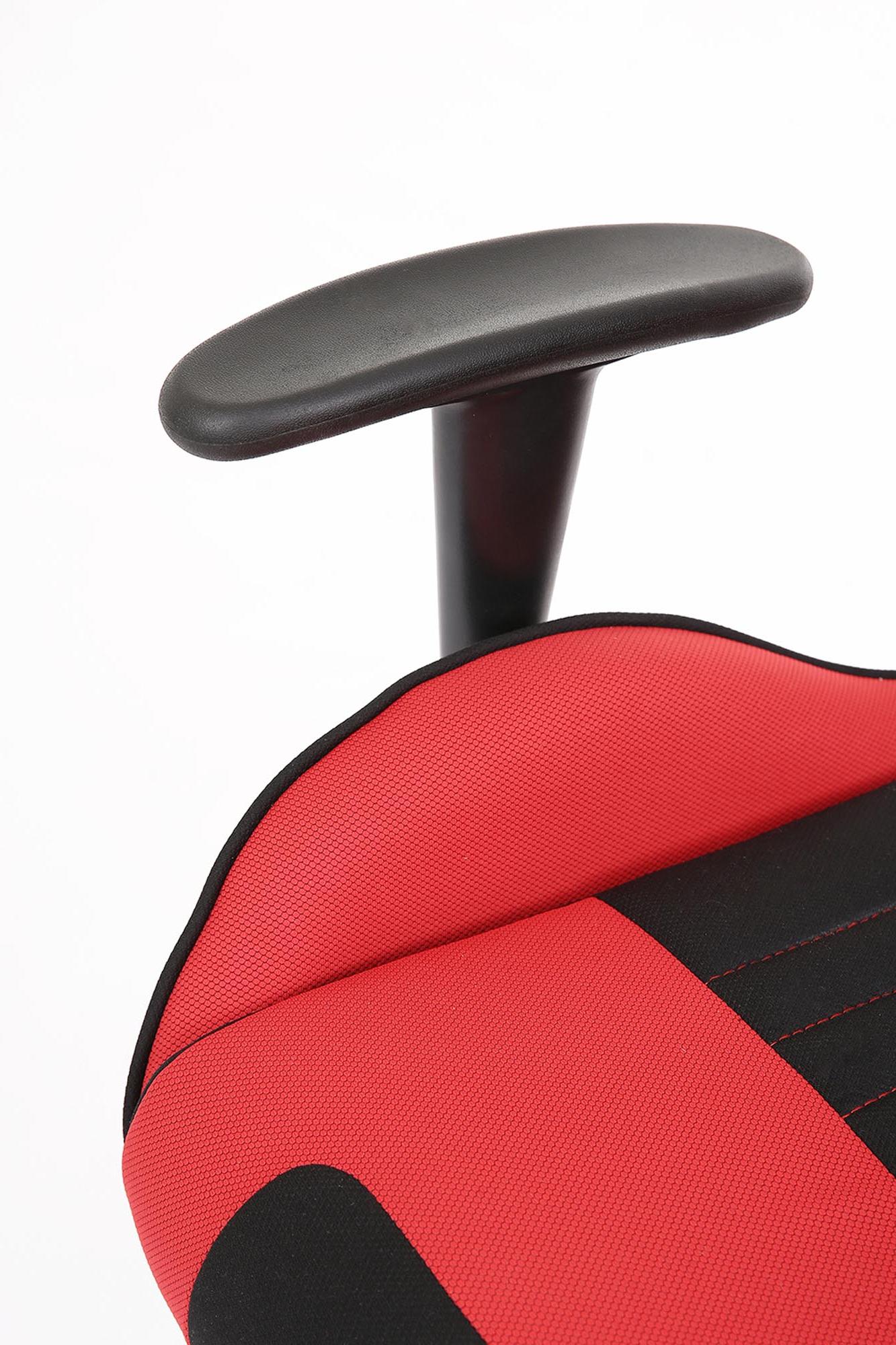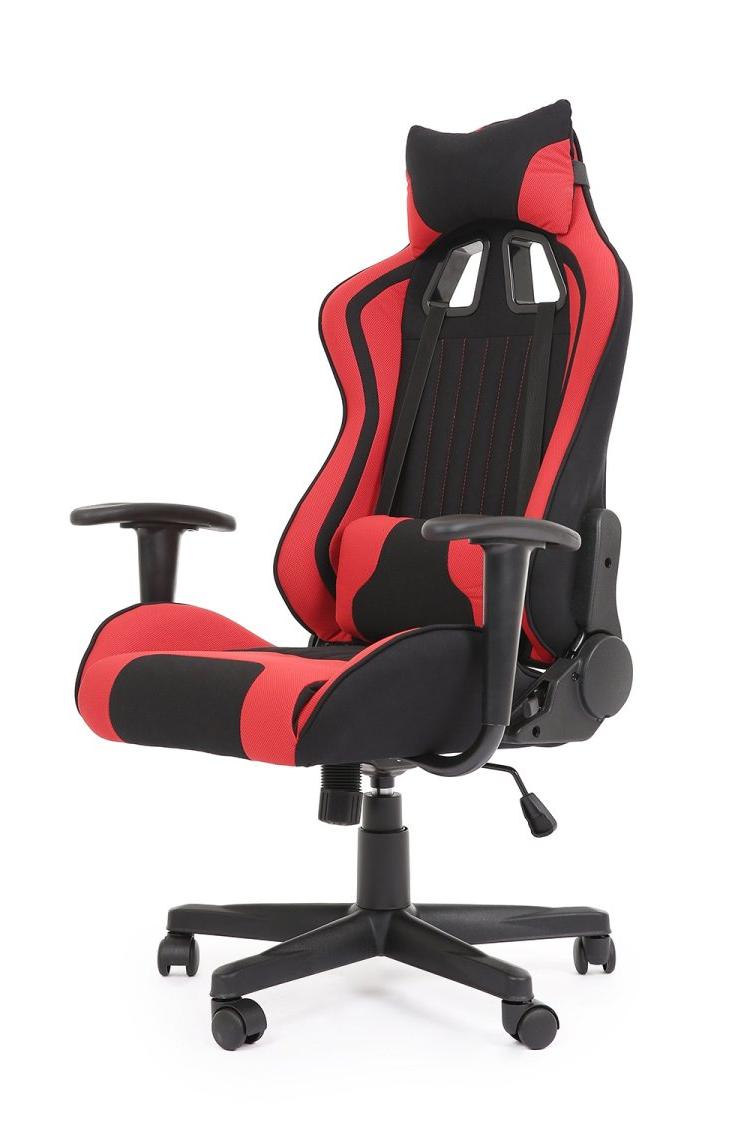 Fotel obrotowy wykonano z materiału: czerwony-czarny