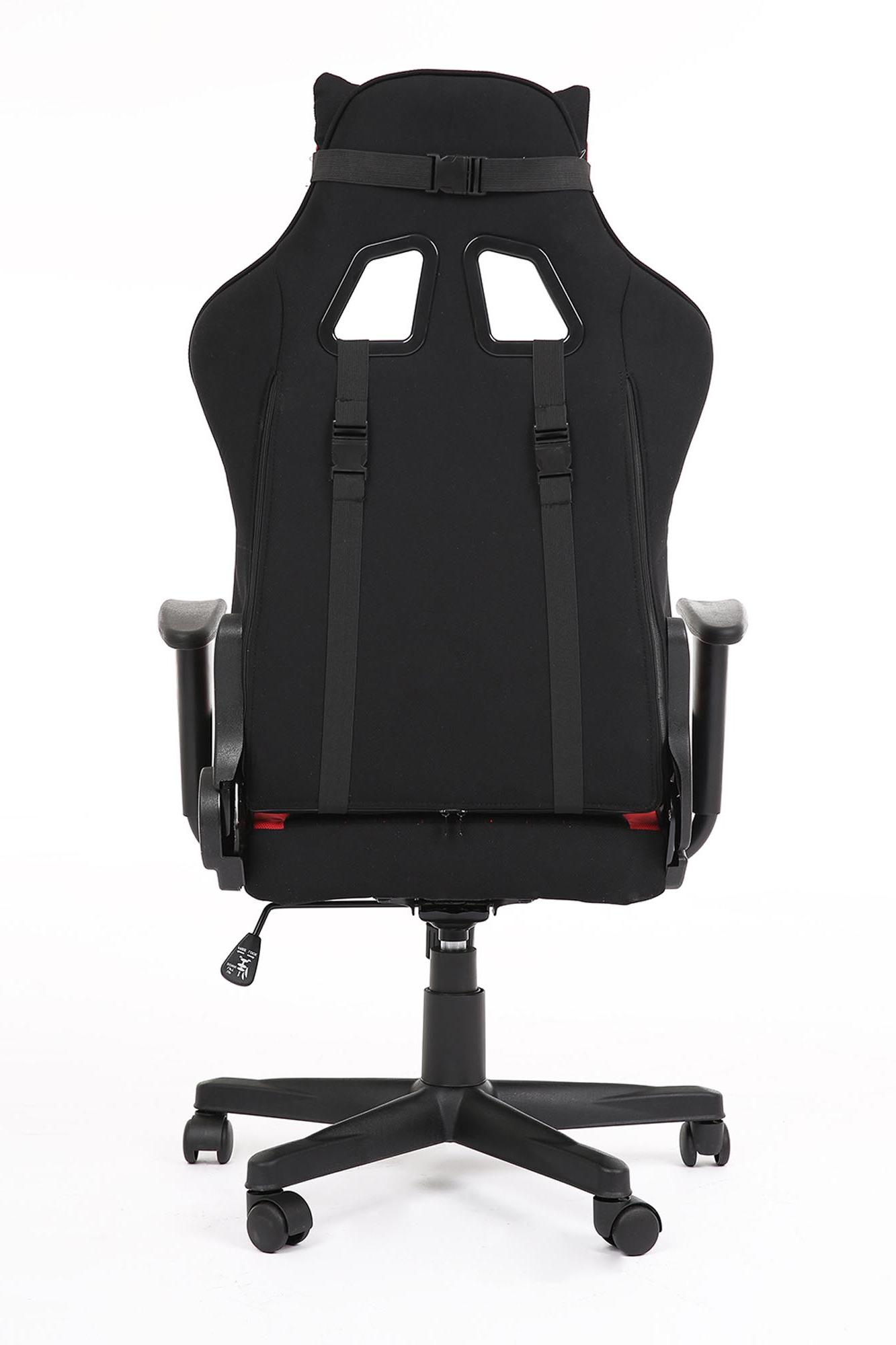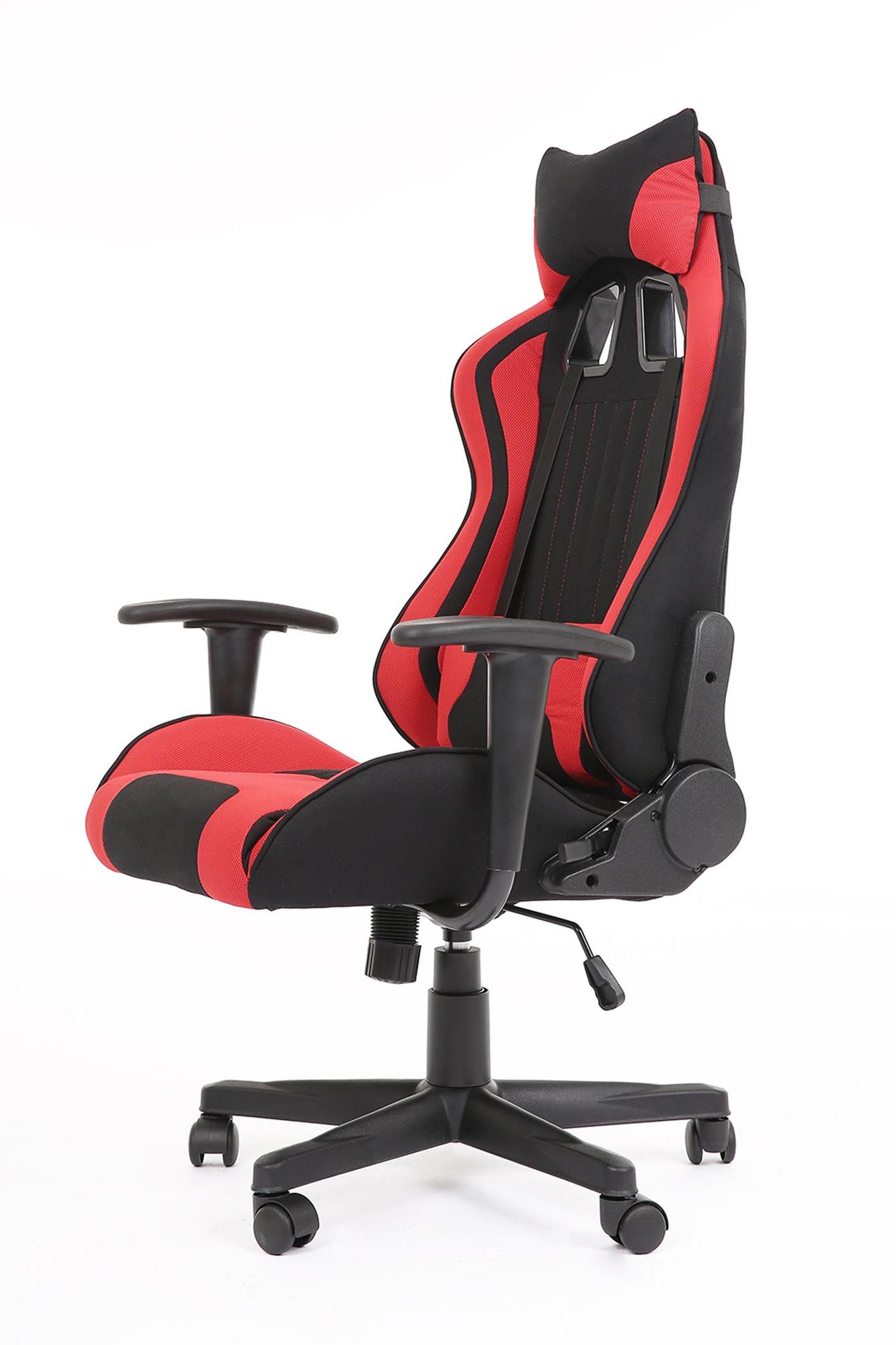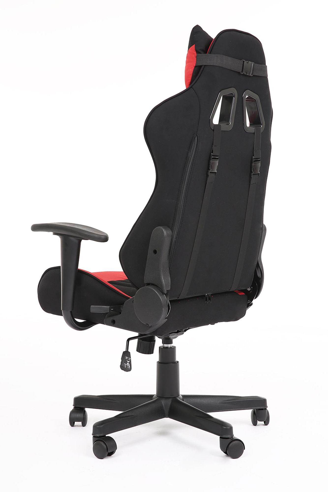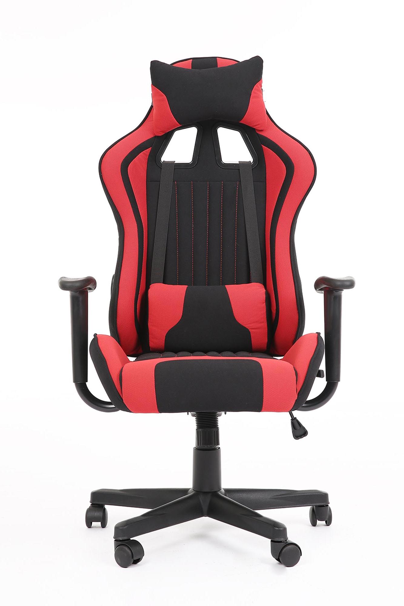Fotel obrotowy wykonano z materiału: czerwony-czarny