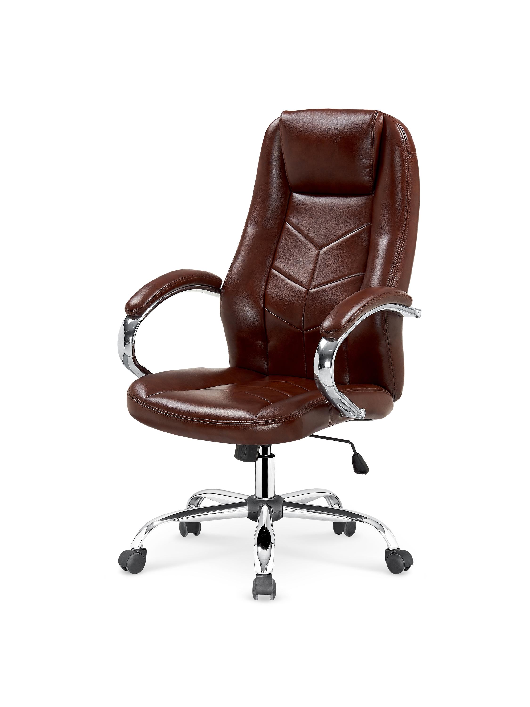Fotel obrotowy wykonano z materiału: eco skóra, kolor brązowy