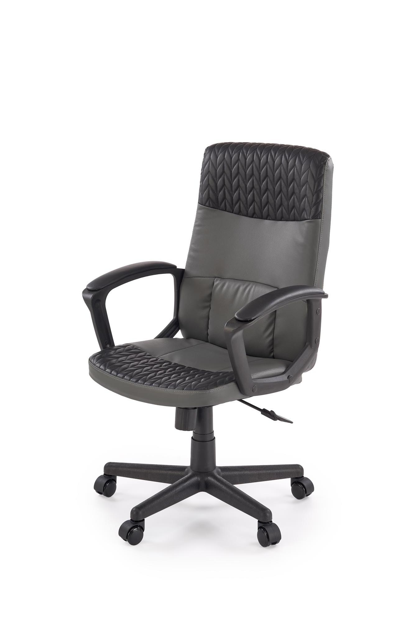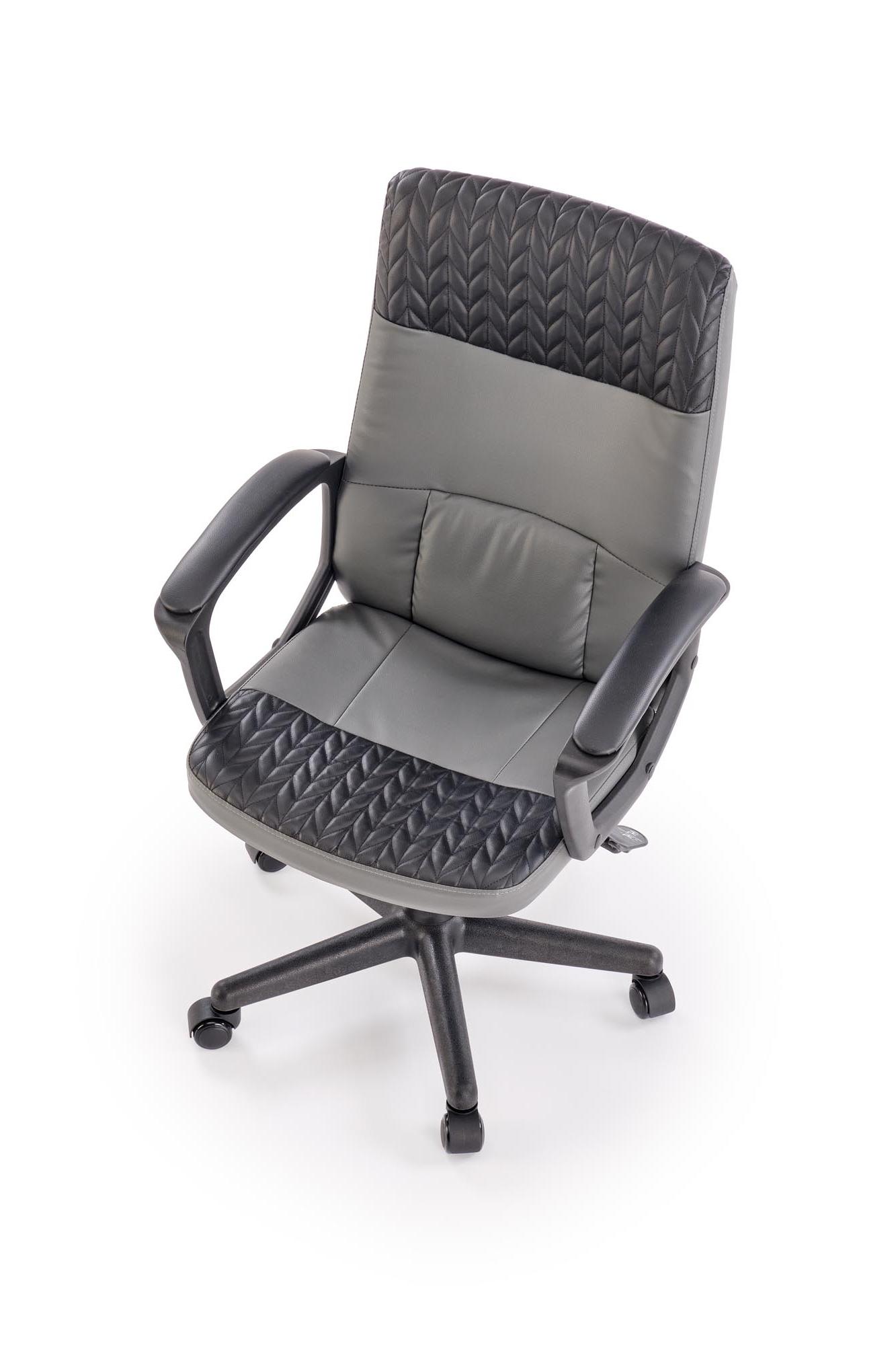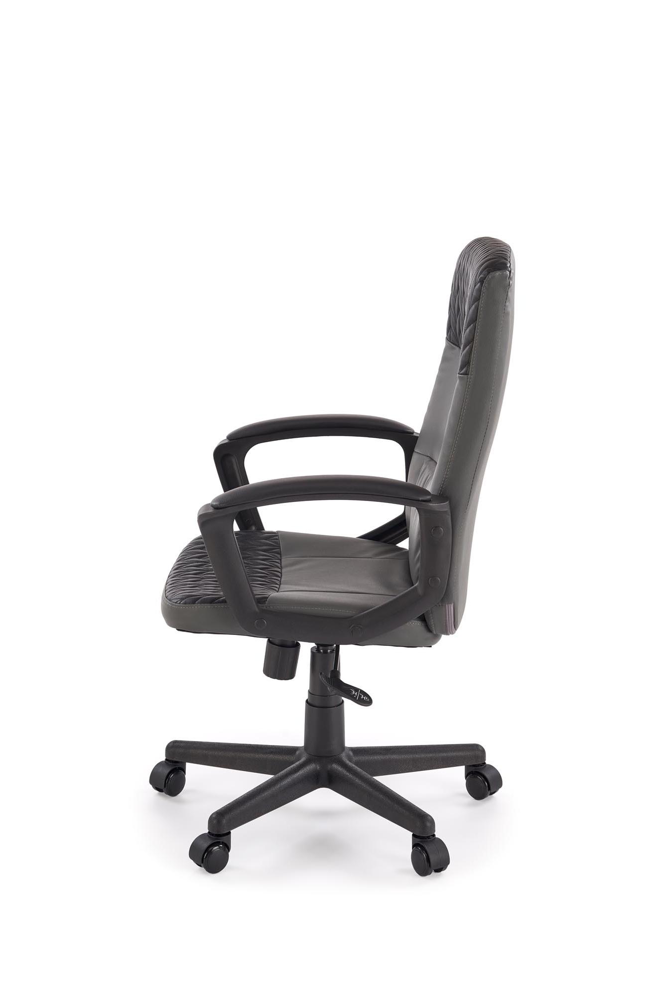 Fotel do biurka, klasyczny, kolor czarny, popielaty, na czarnej podstawie z podłokietnikami, eko skóra