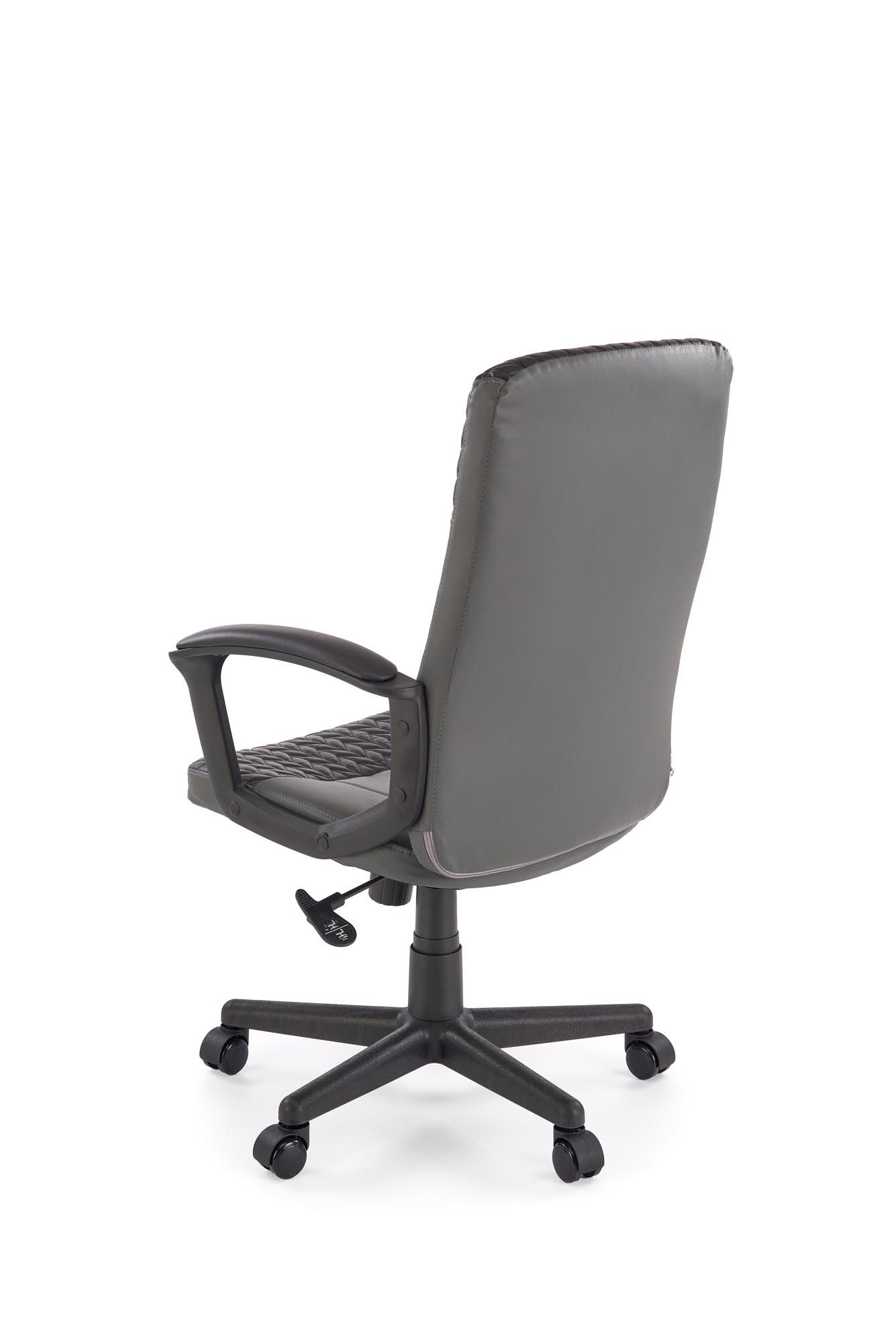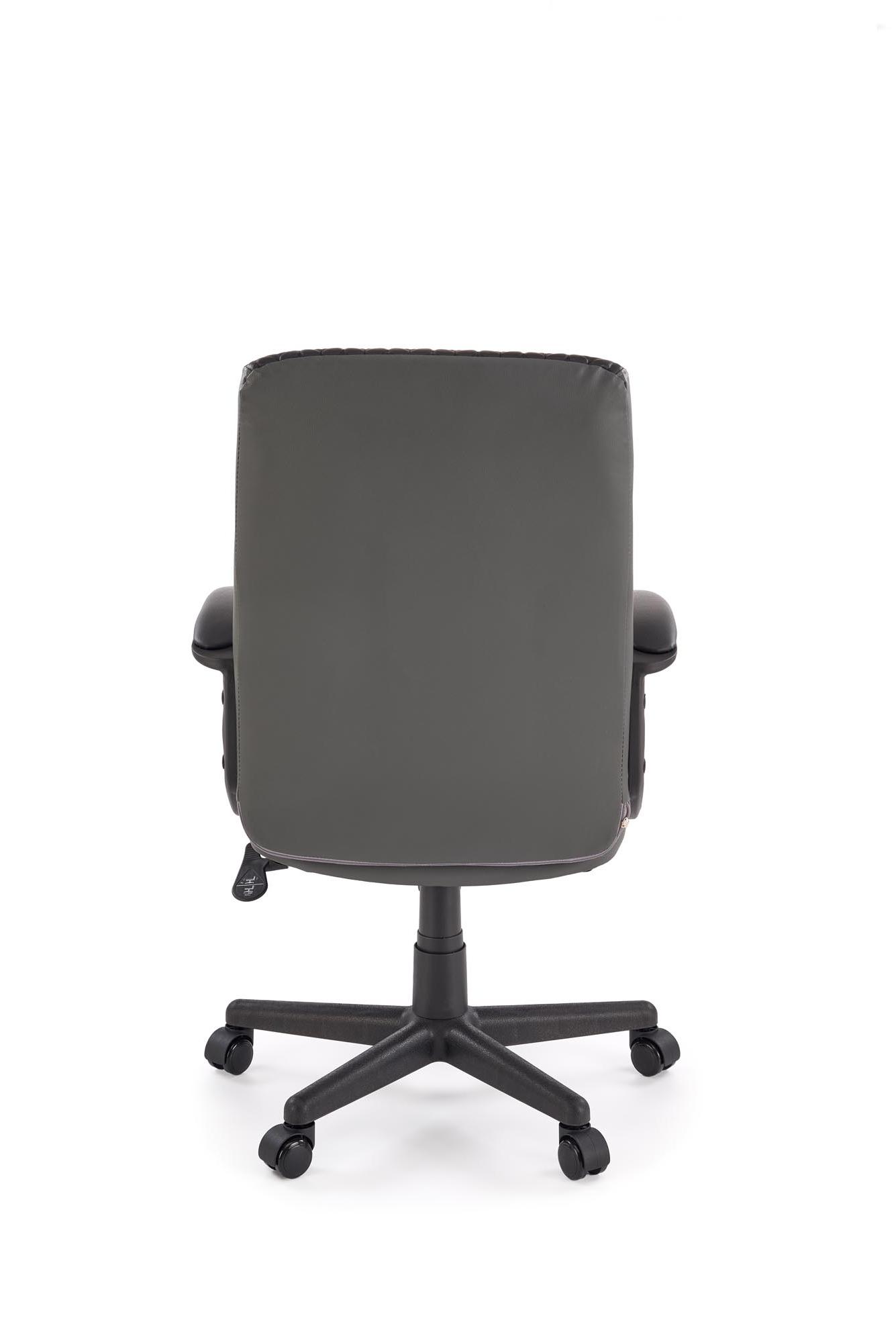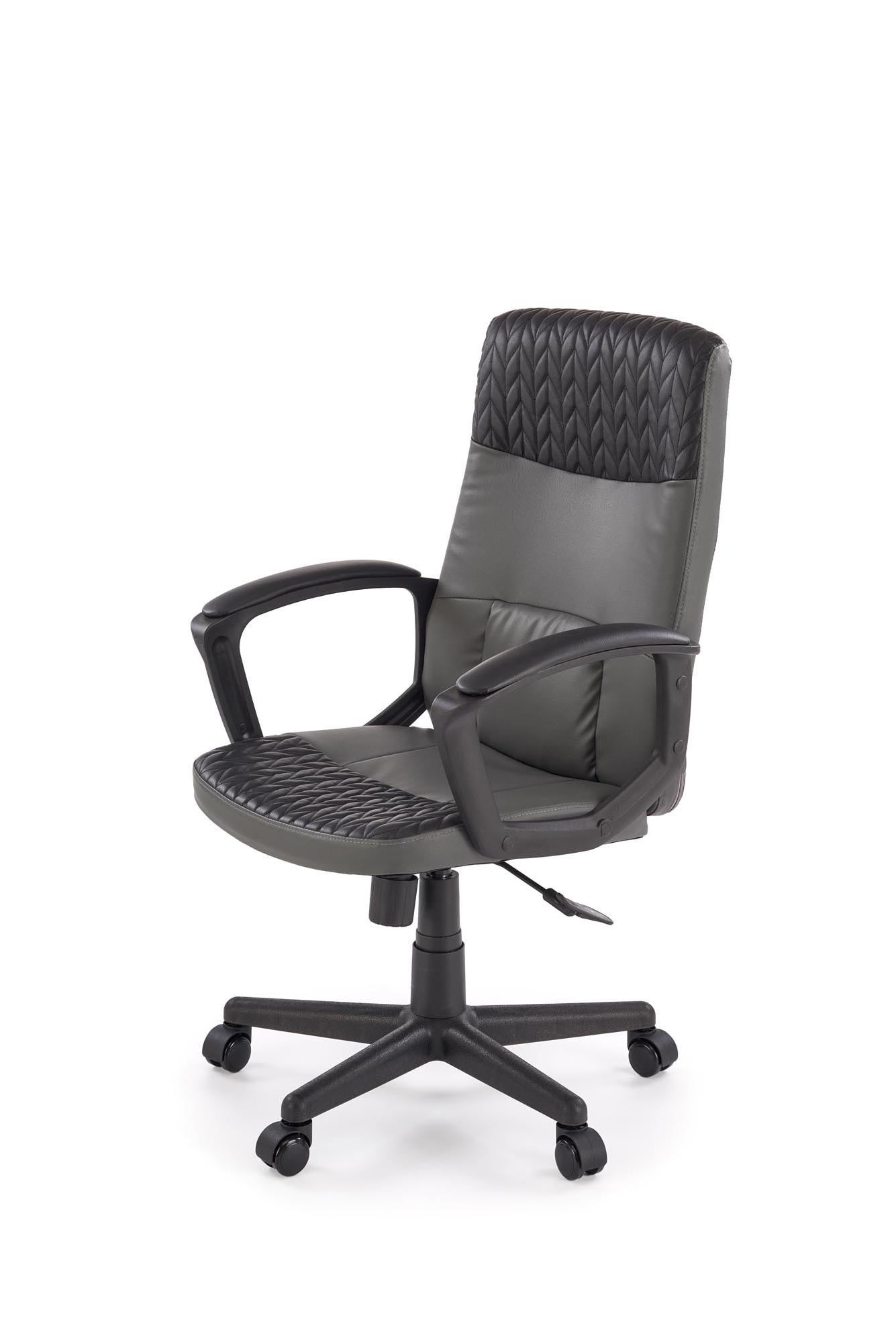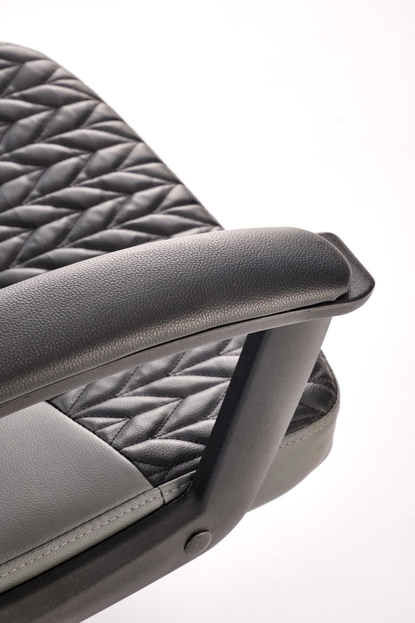 Fotel do biurka, klasyczny, kolor czarny, popielaty, na czarnej podstawie z podłokietnikami, eko skóra
