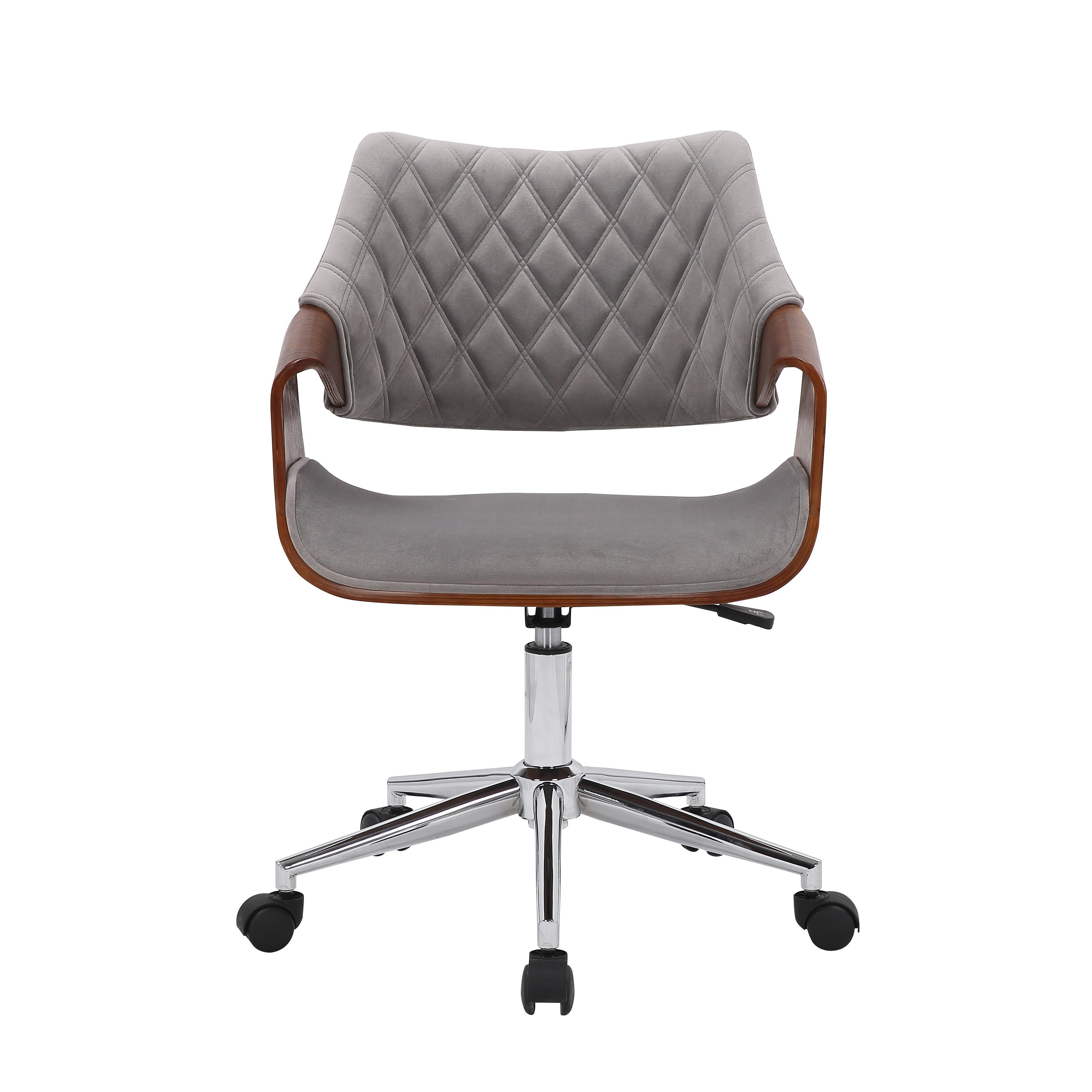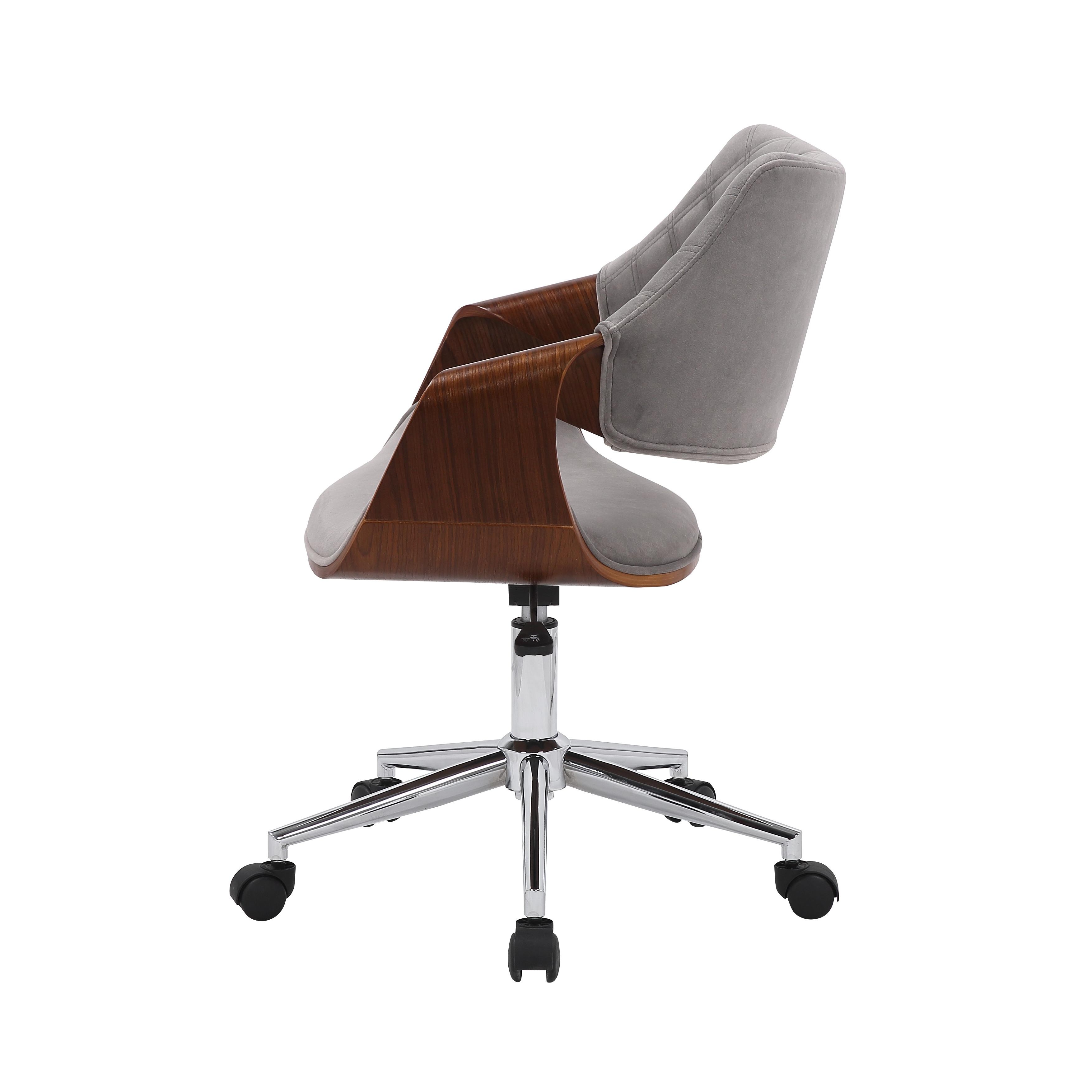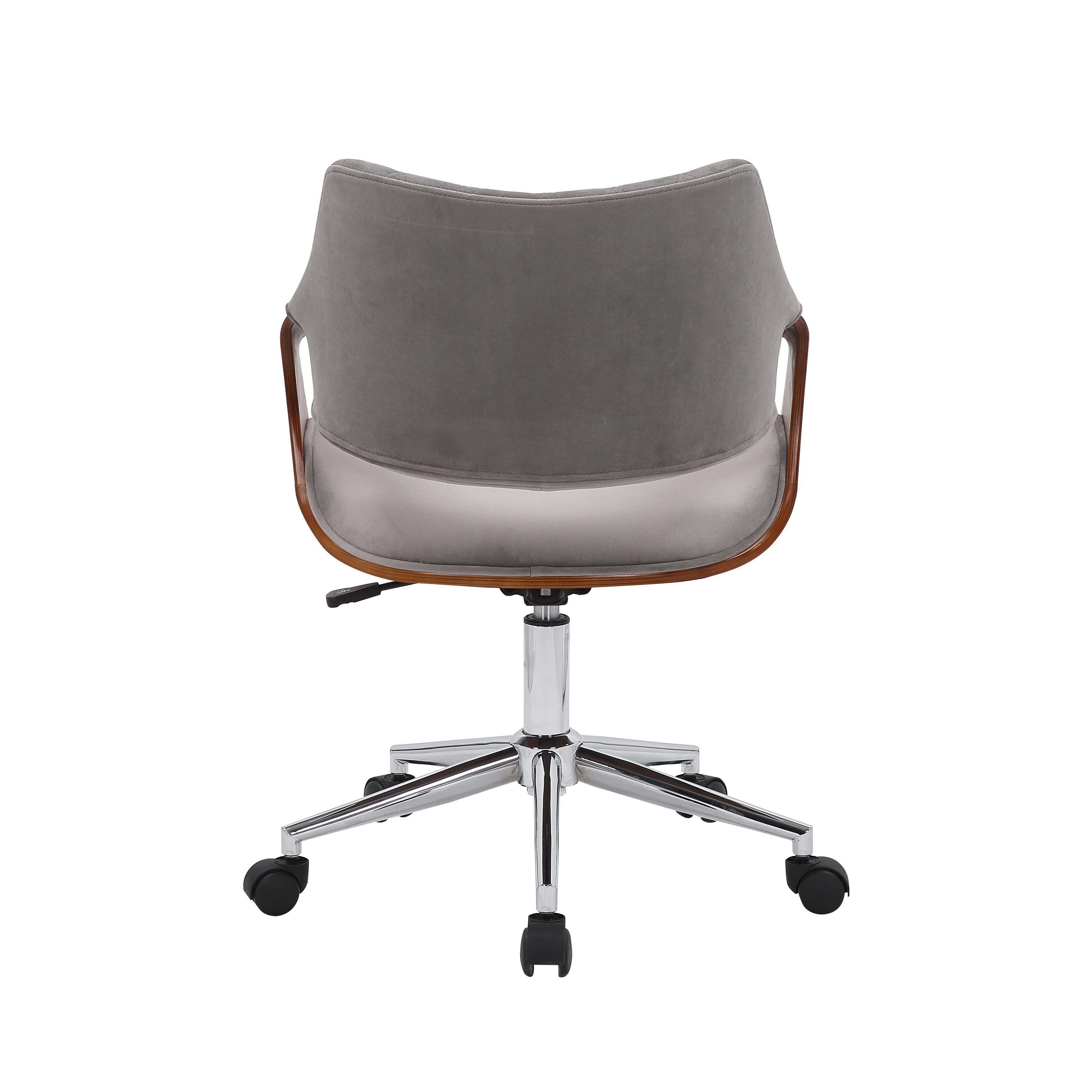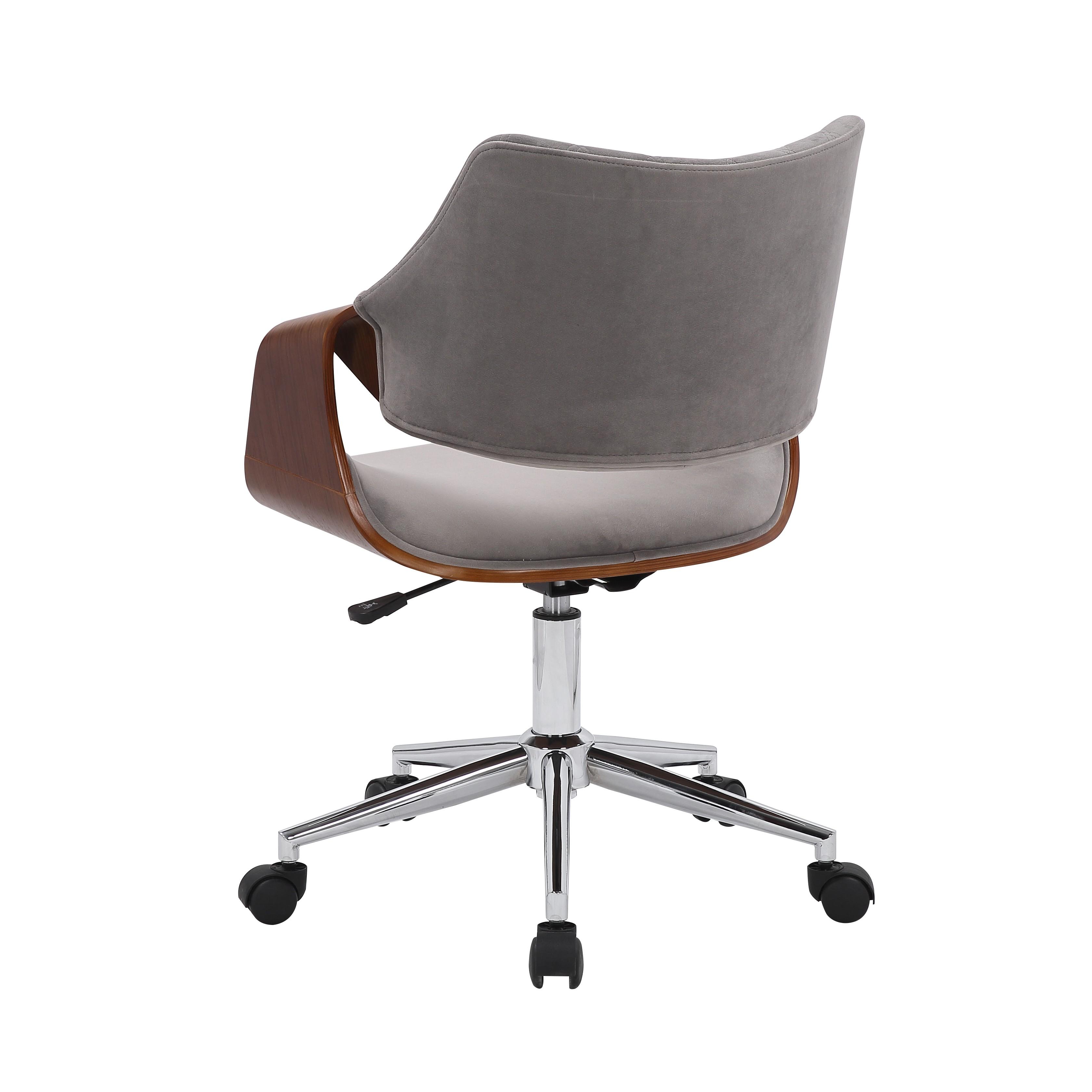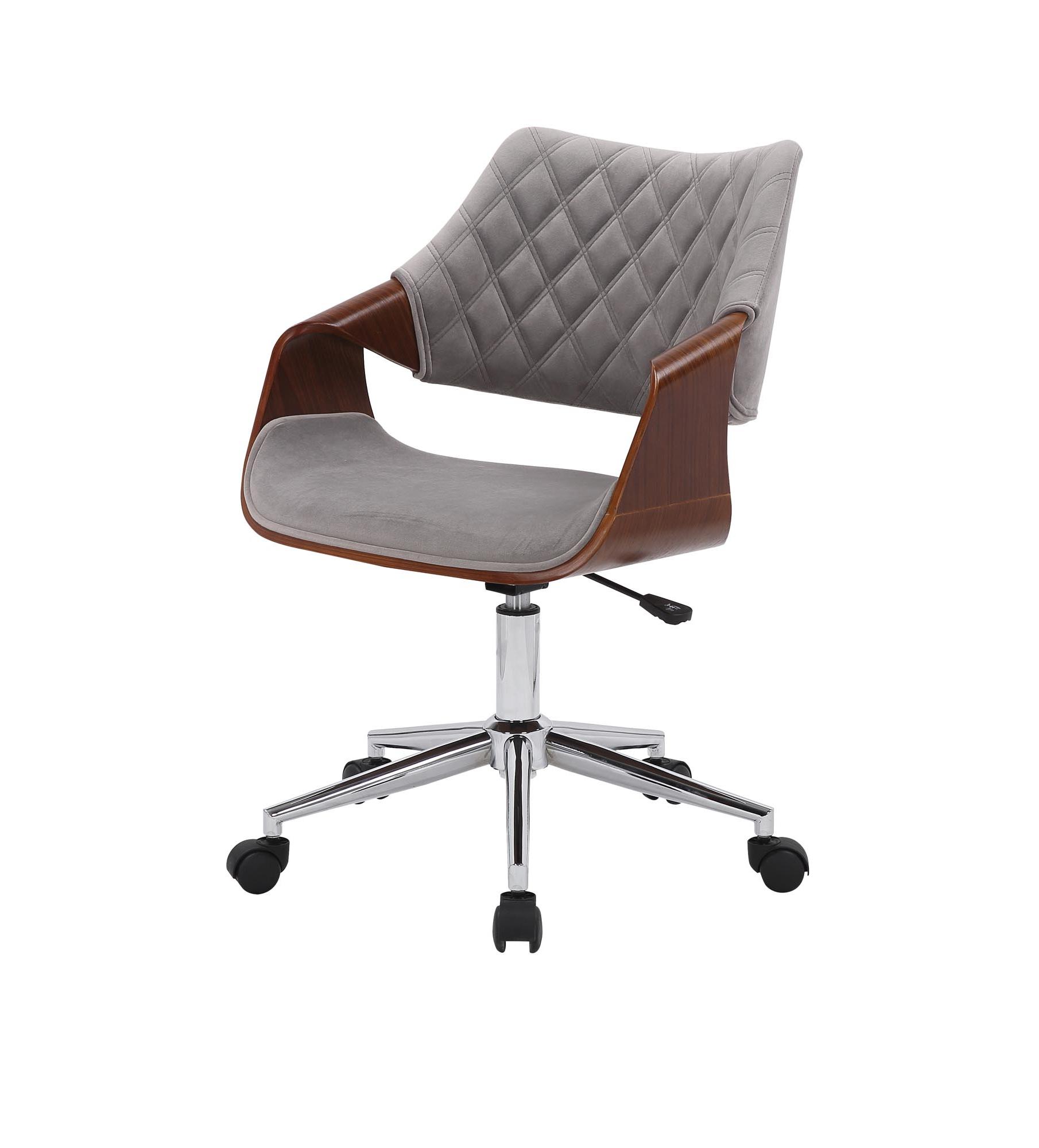 Fotel obrotowy wykonano z materiału: sklejka gięta / tkanina velvet, kolor orzechowy - popielaty