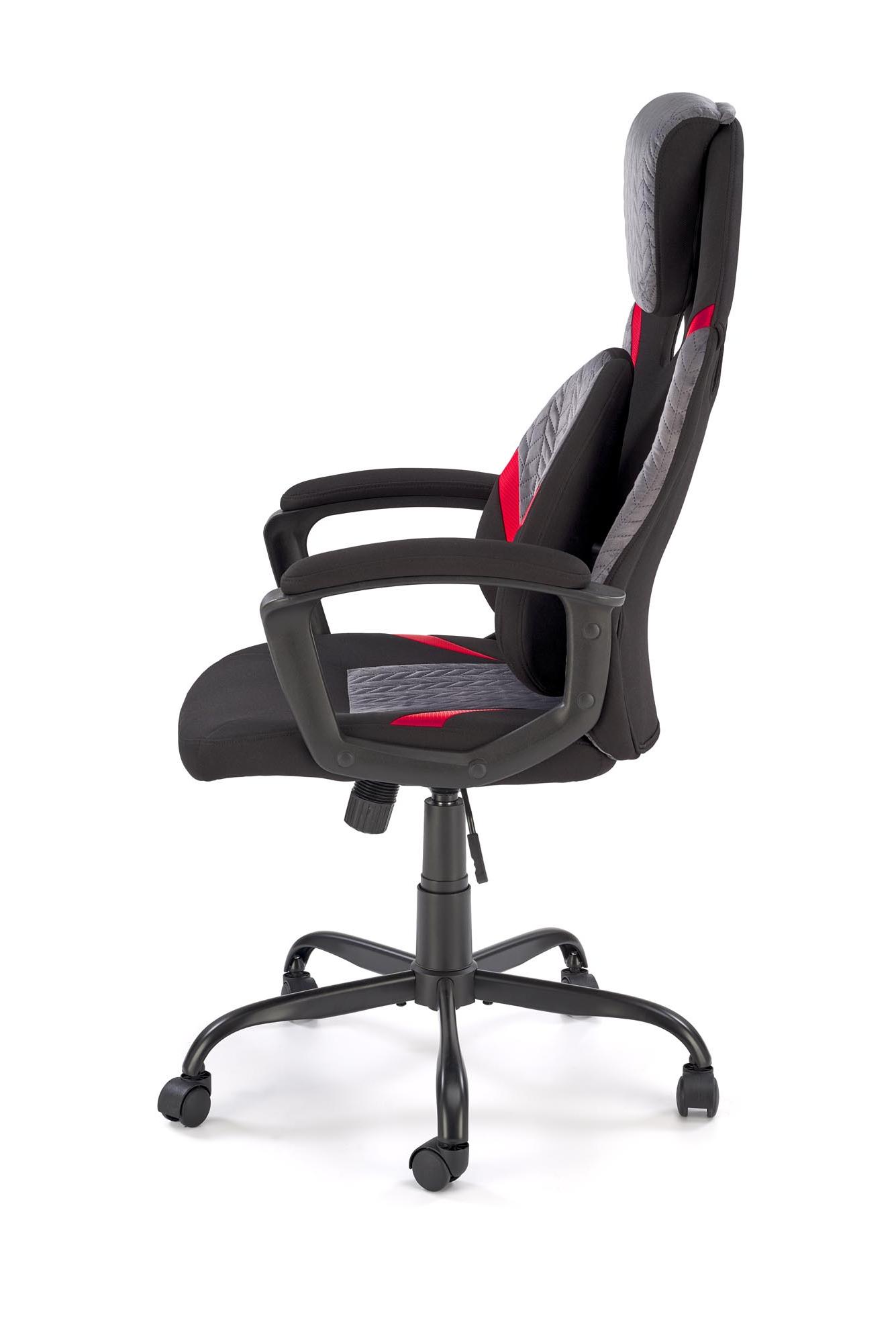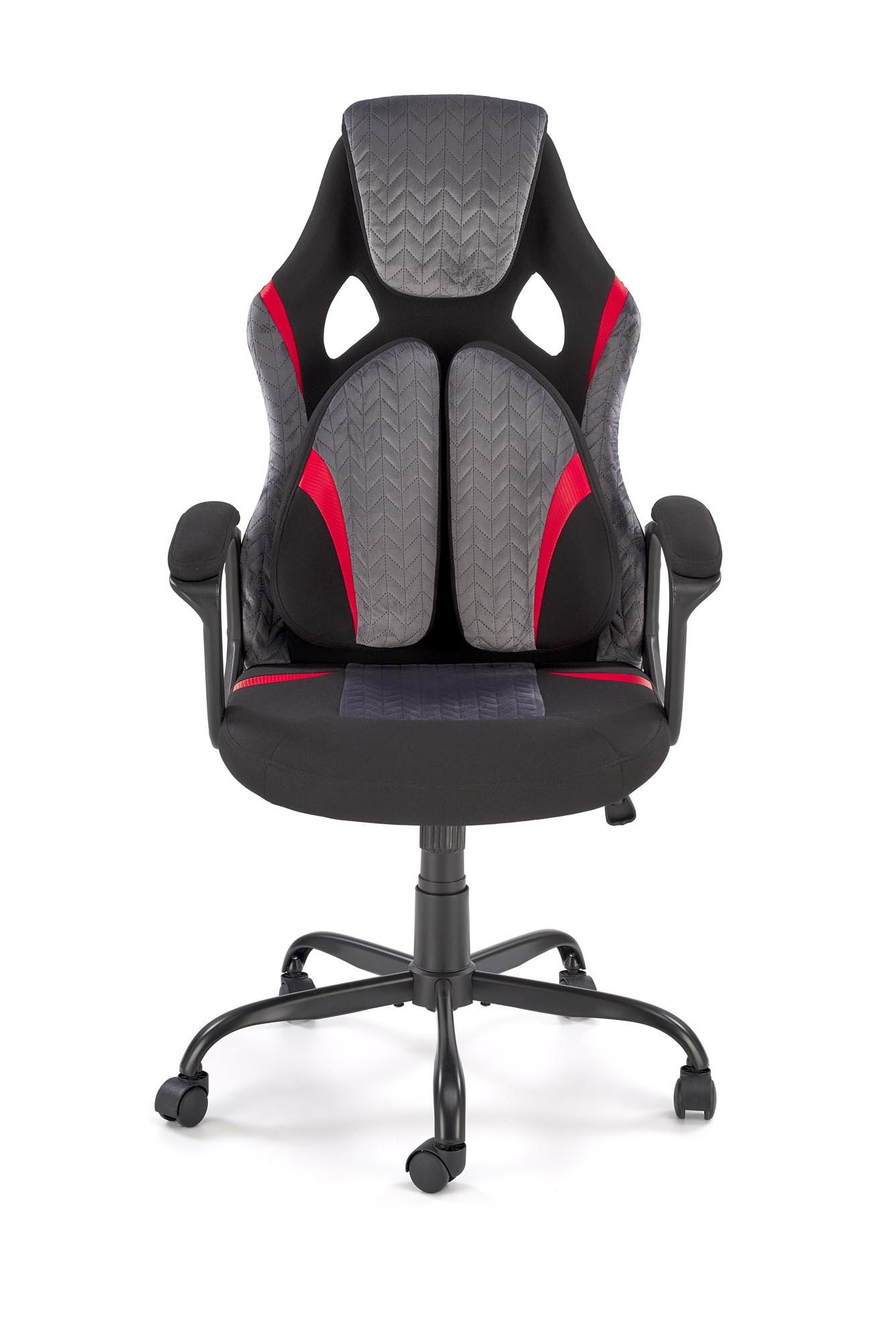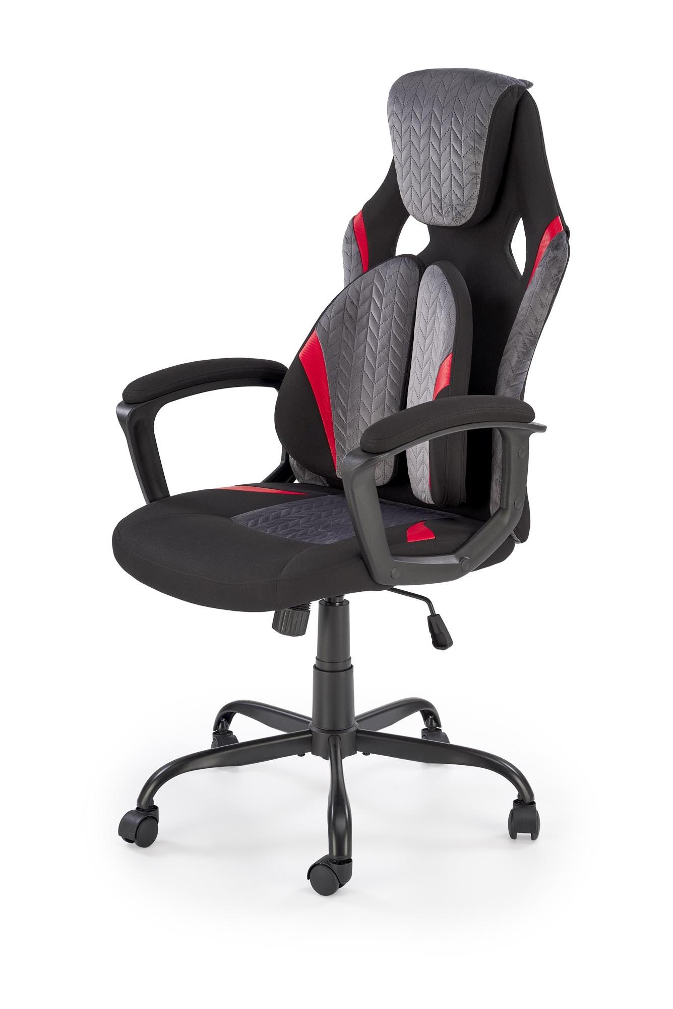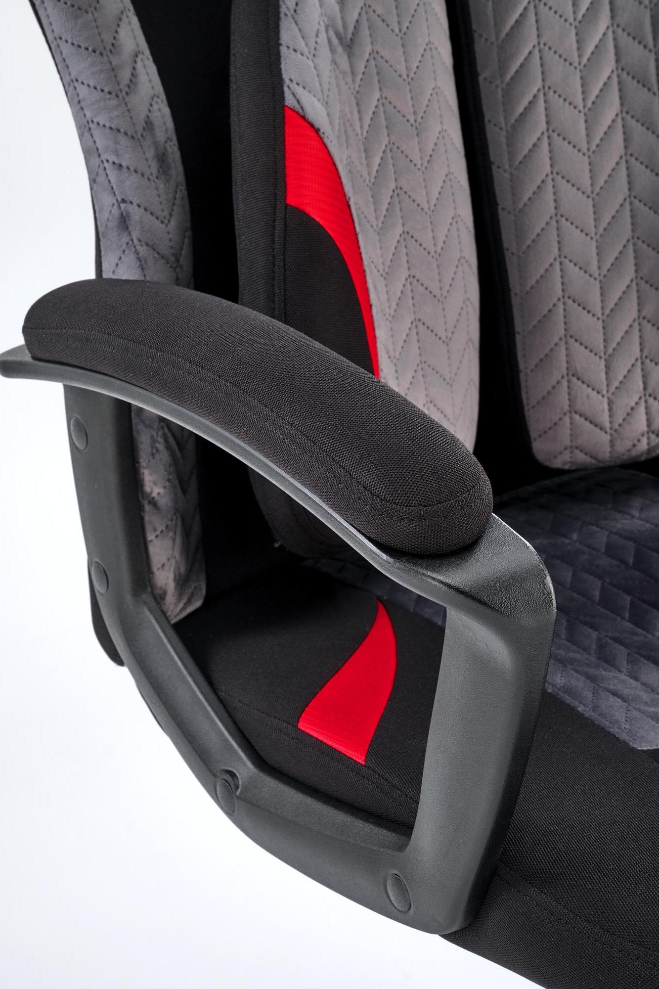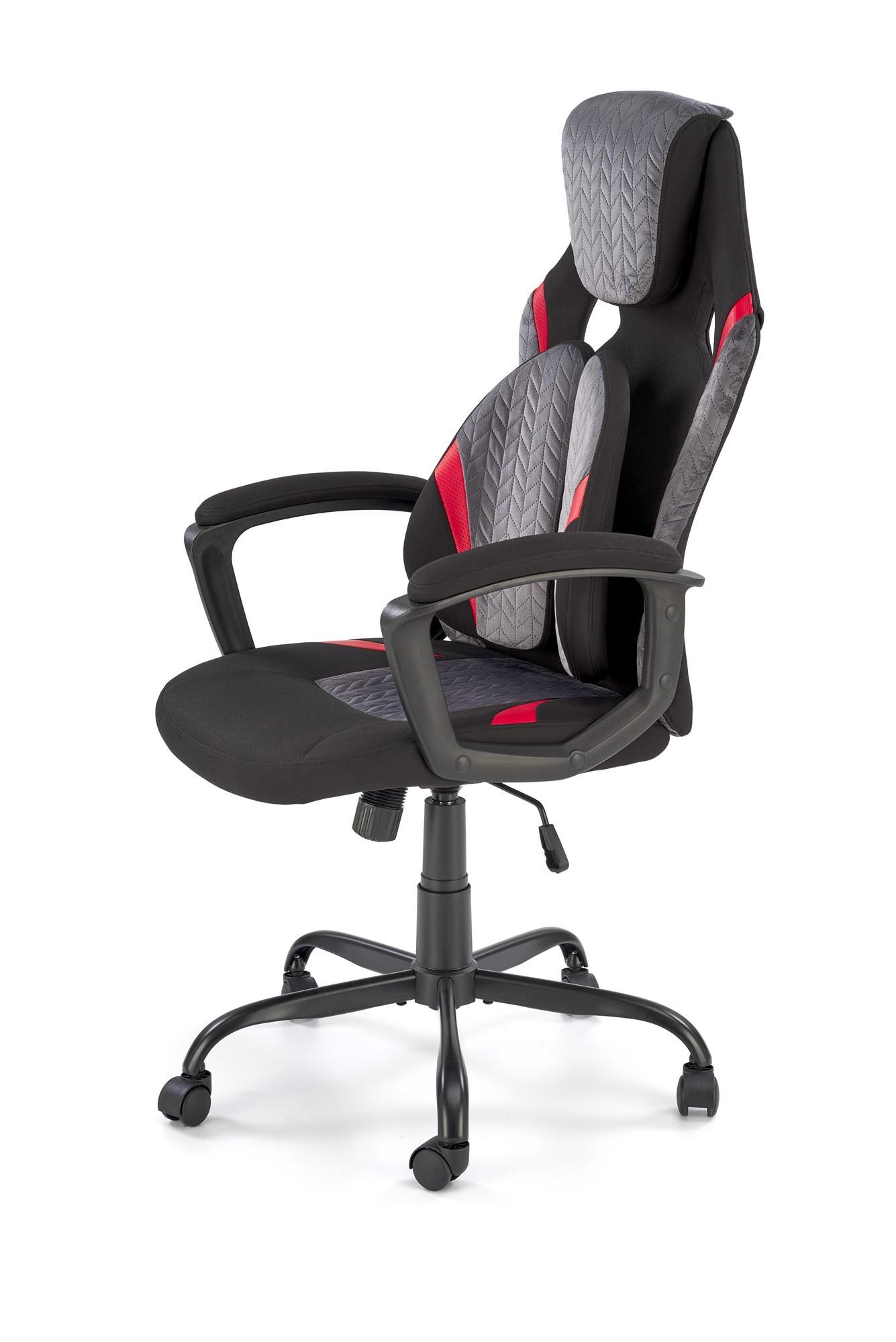 Fotel obrotowy wykonano z materiału: czarny - popielaty - czerwony