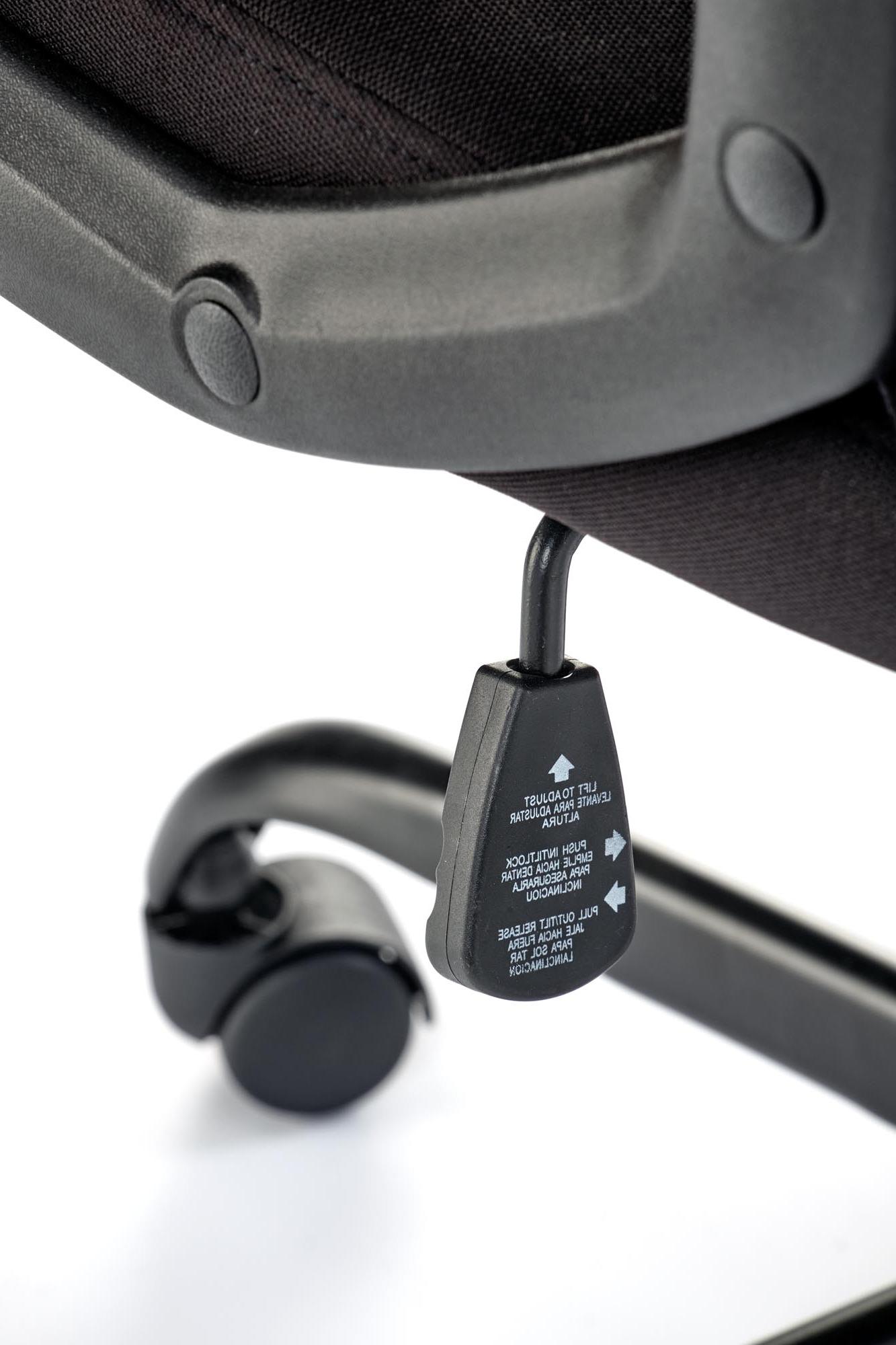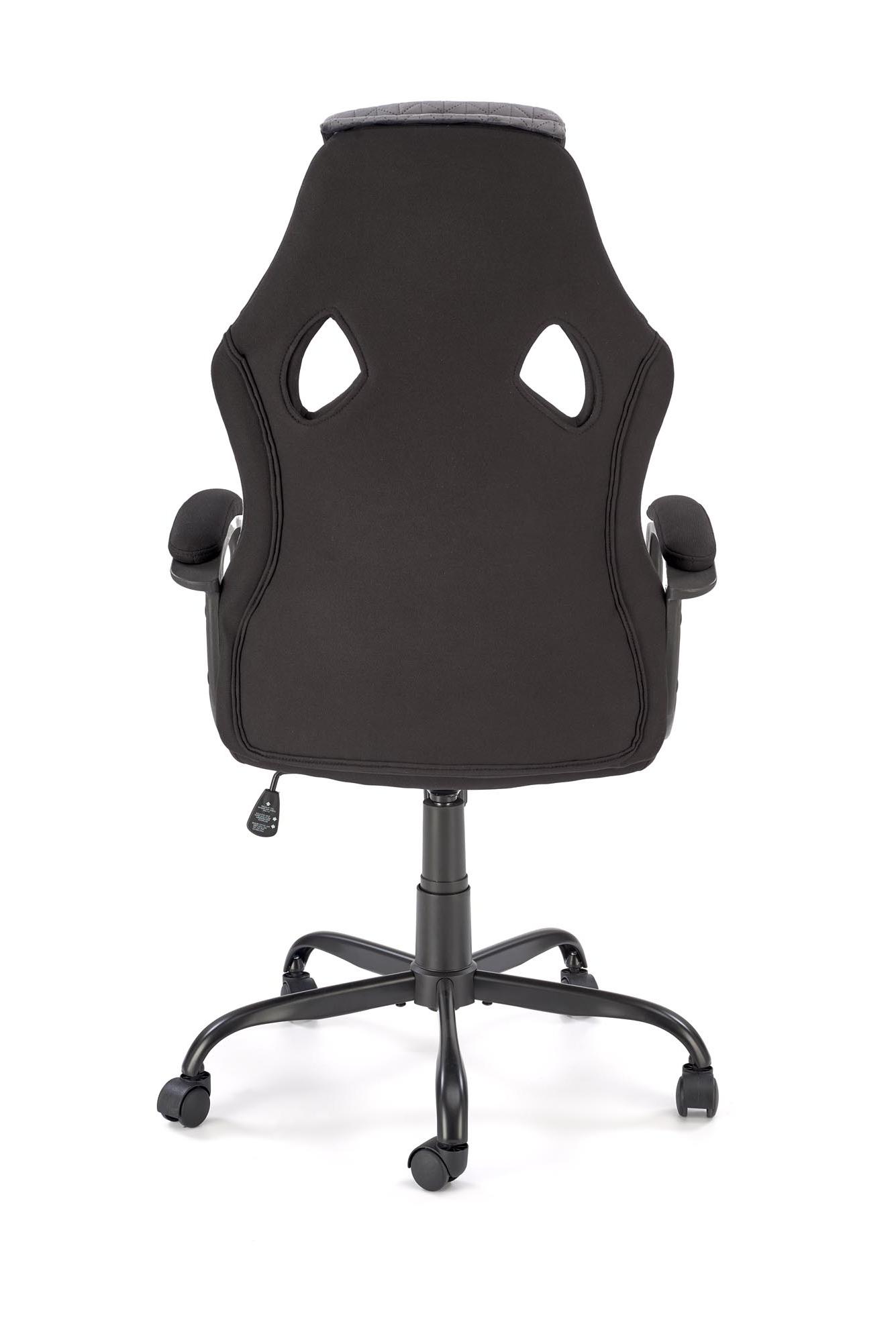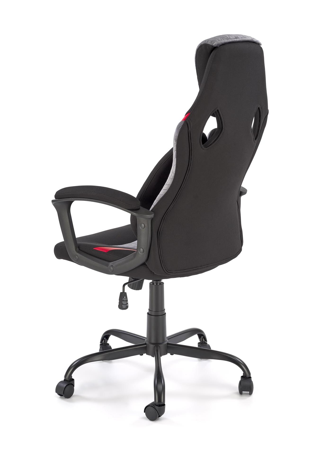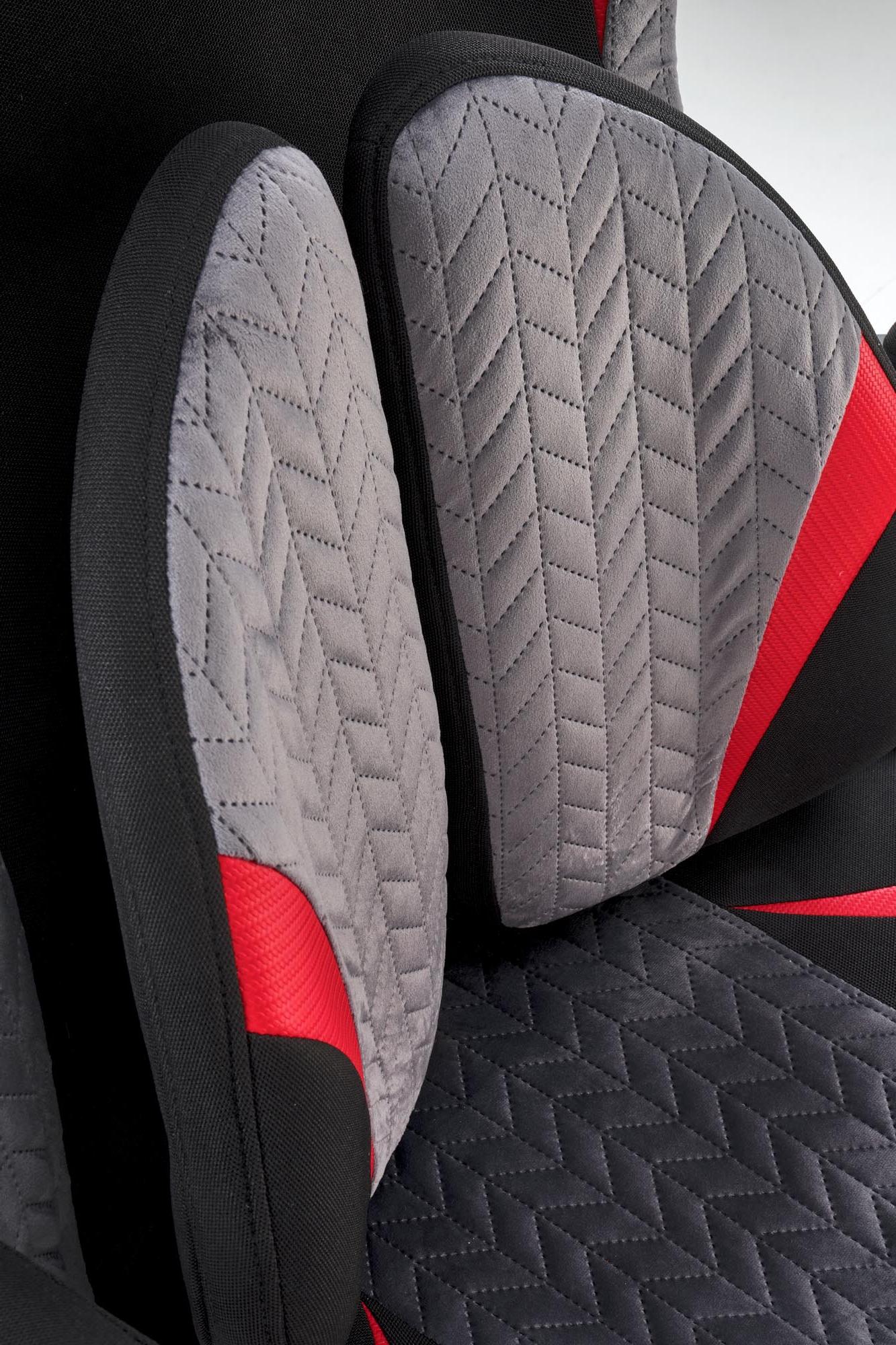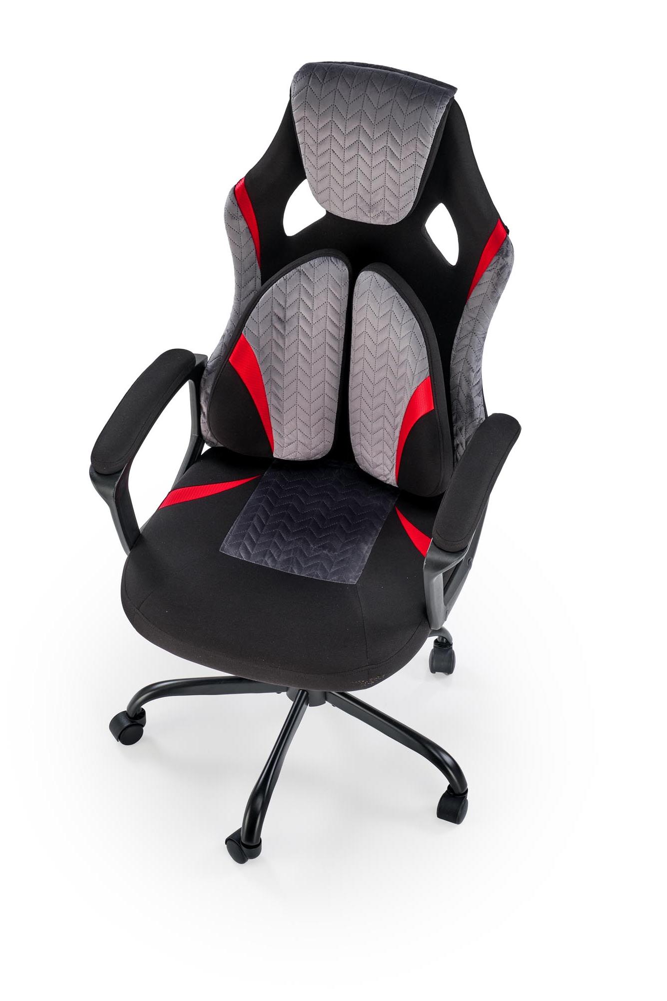 Fotel obrotowy wykonano z materiału: czarny - popielaty - czerwony