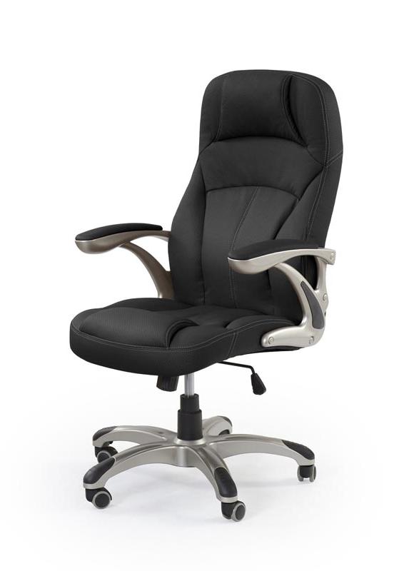 Fotel do biurka, kolor czarny, na srebrnej podstawie, kółka kauczukowe, eko skóra perforowana