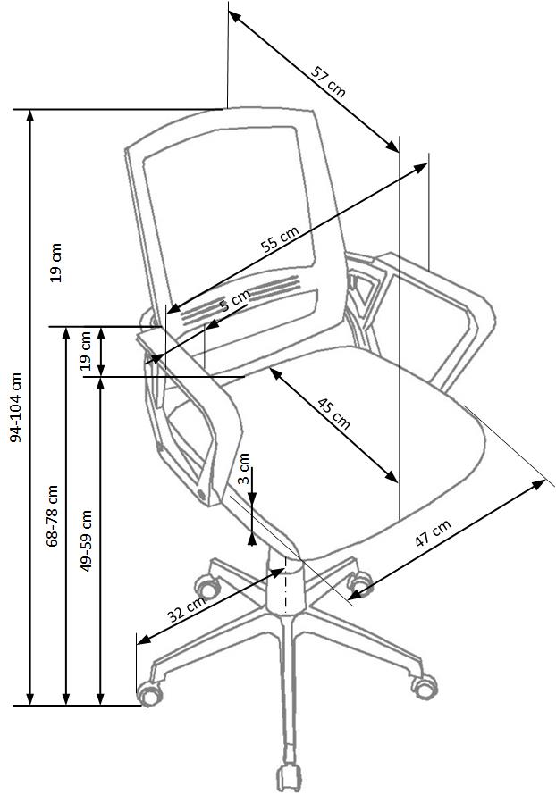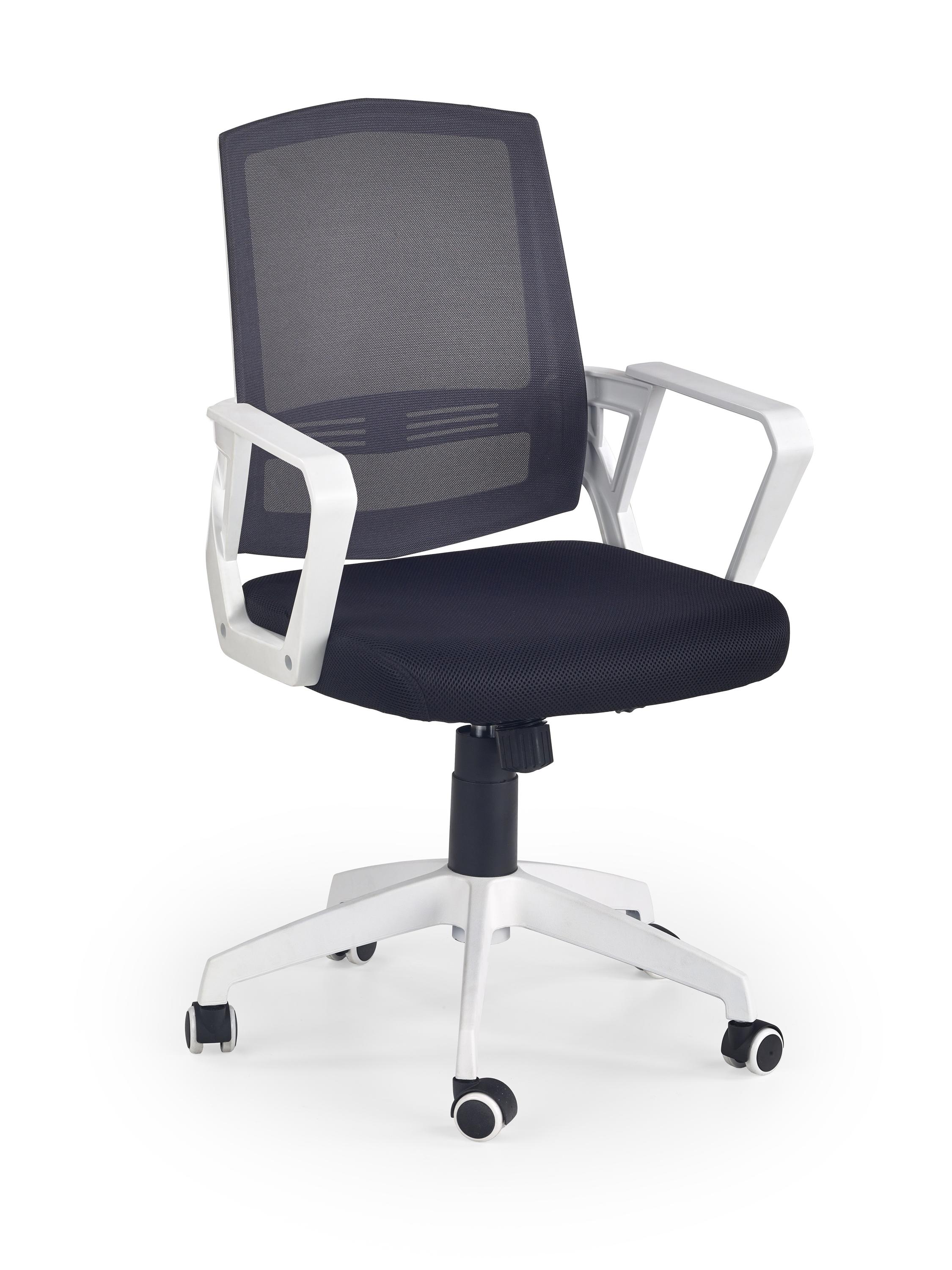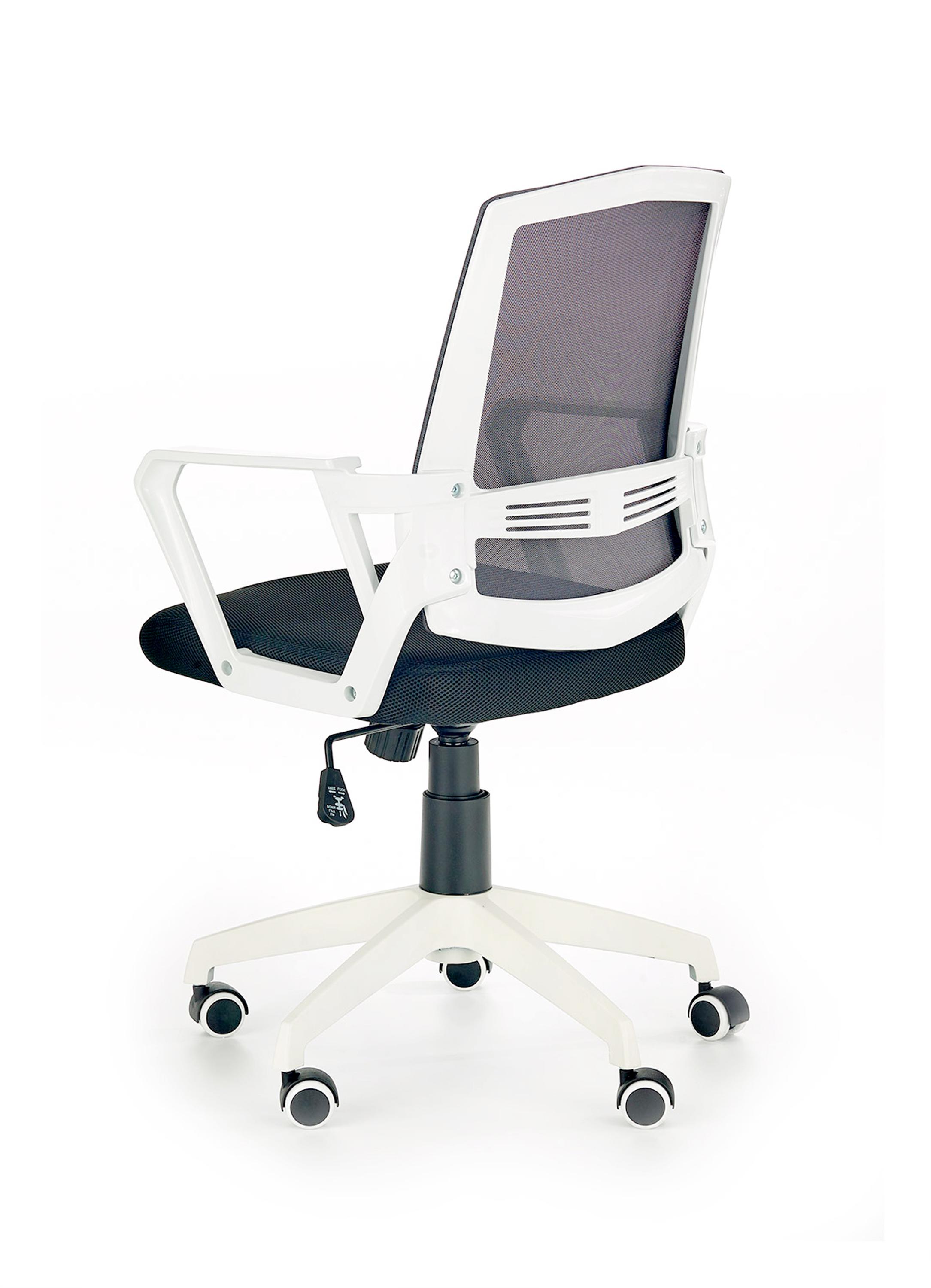 Fotel obrotowy wykonano z materiału: tkanina membranowa / siatka, kolor czarno-biało-popielaty