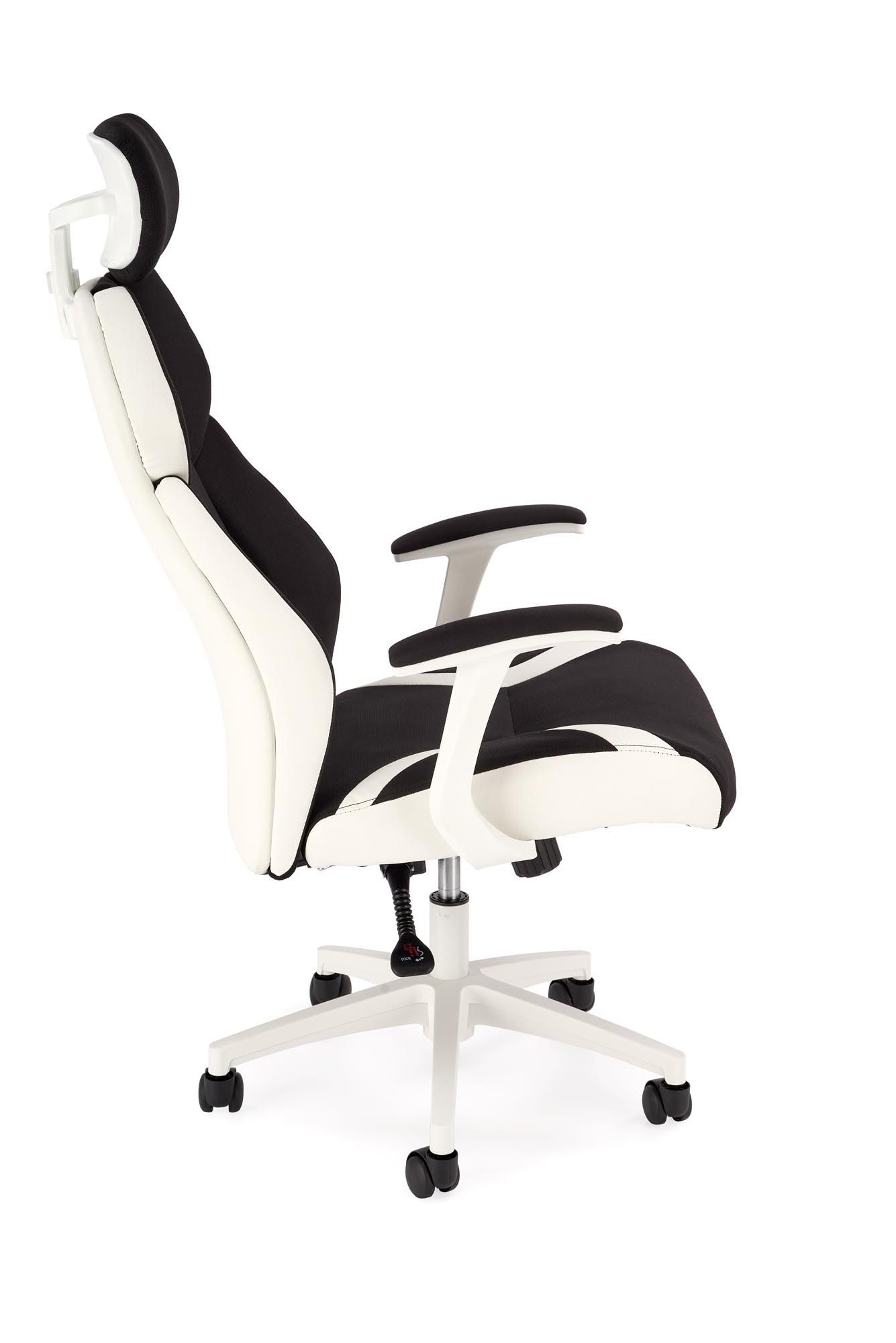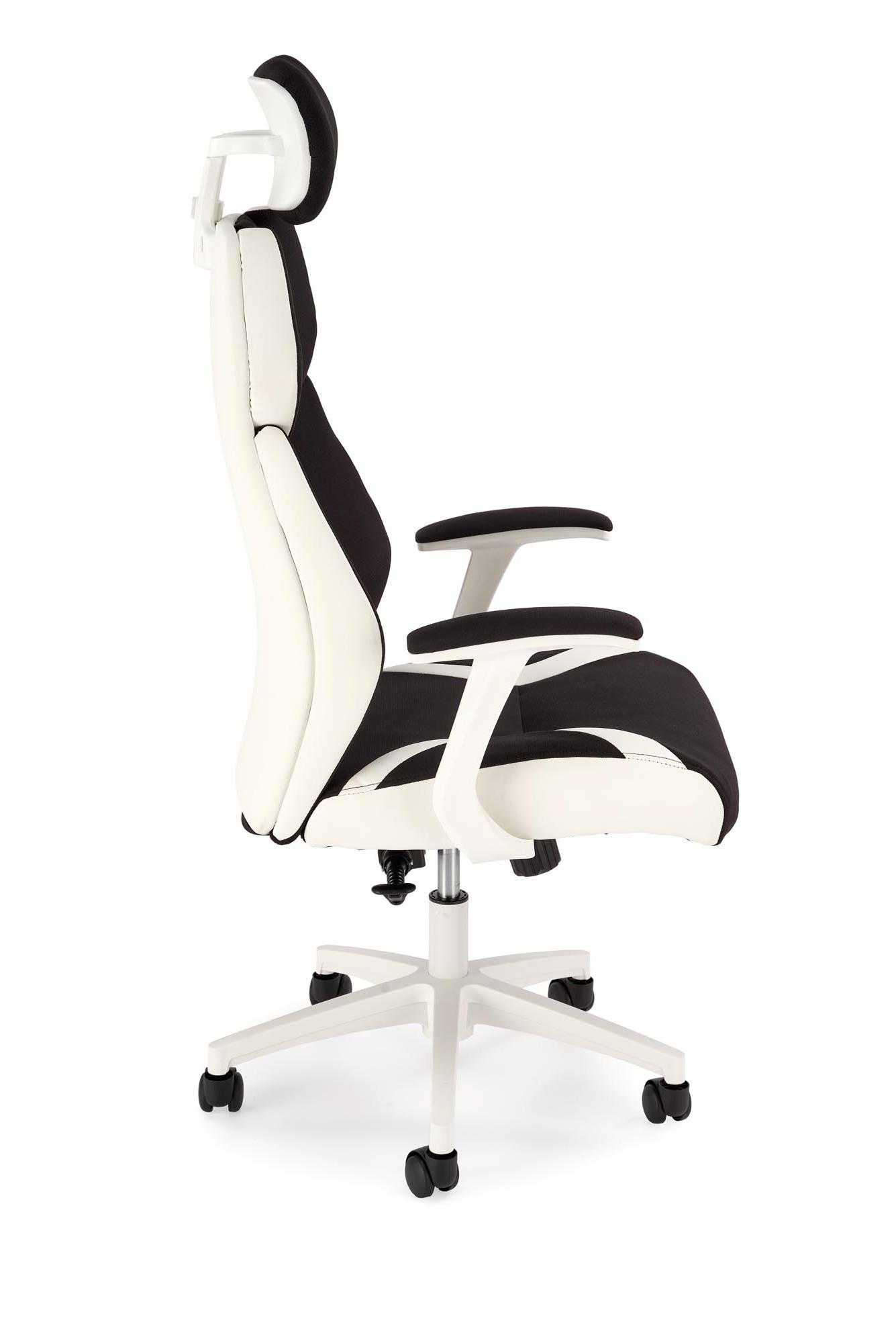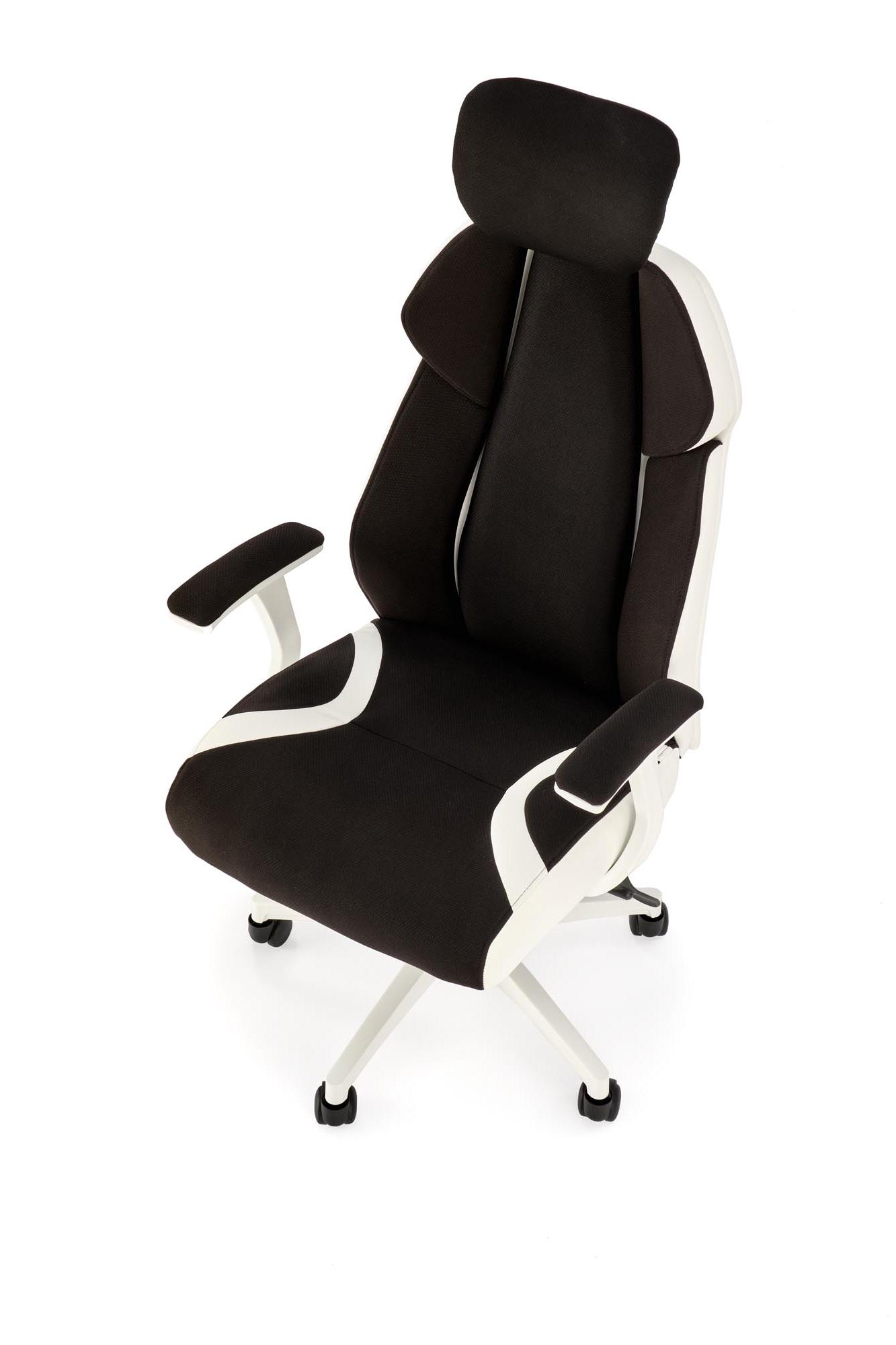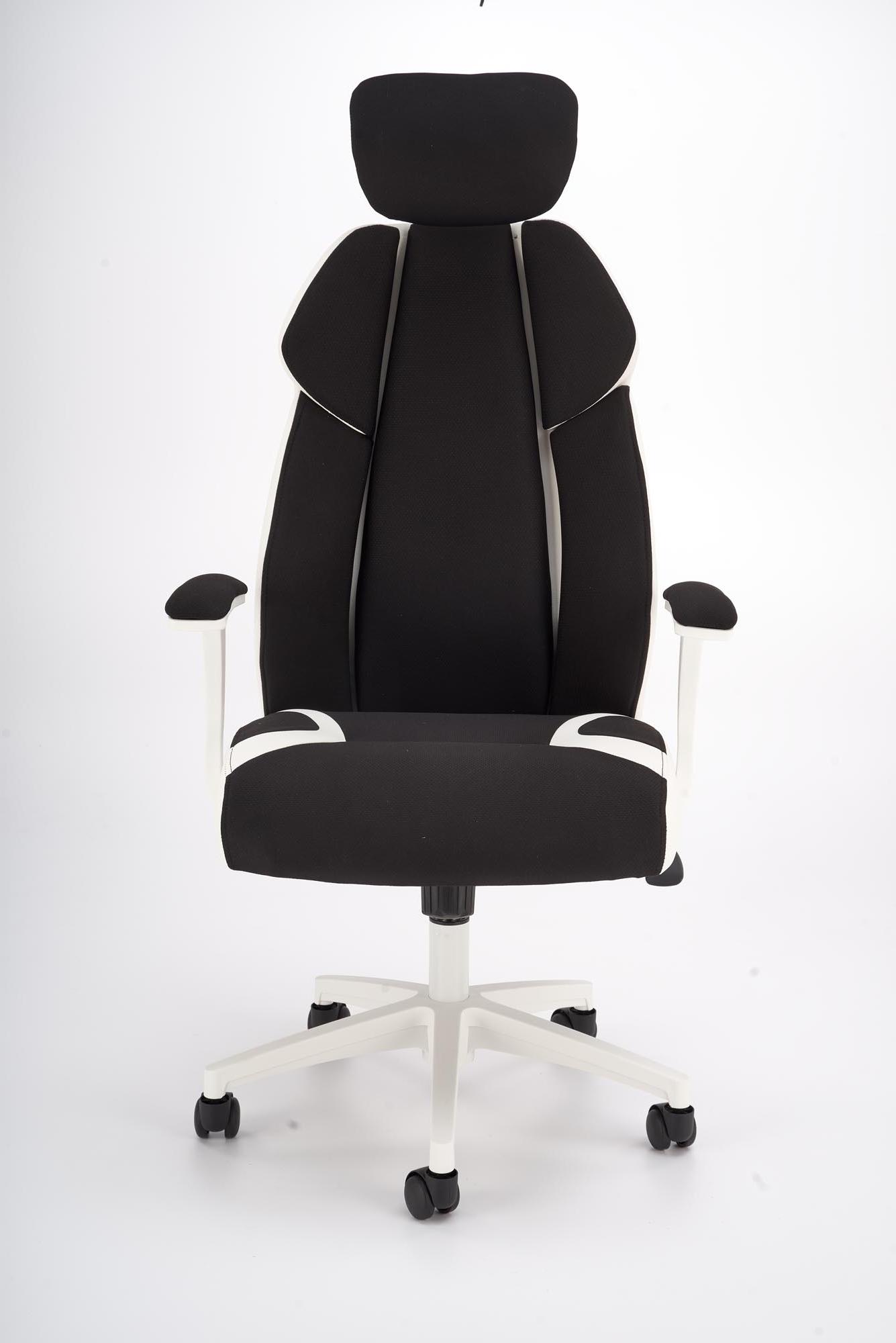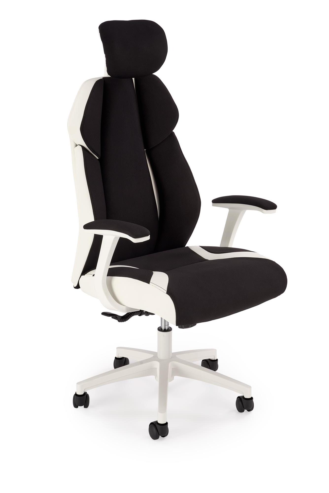 Fotel obrotowy wykonano z materiału: tkanina / eco skóra, kolor czarno-biały