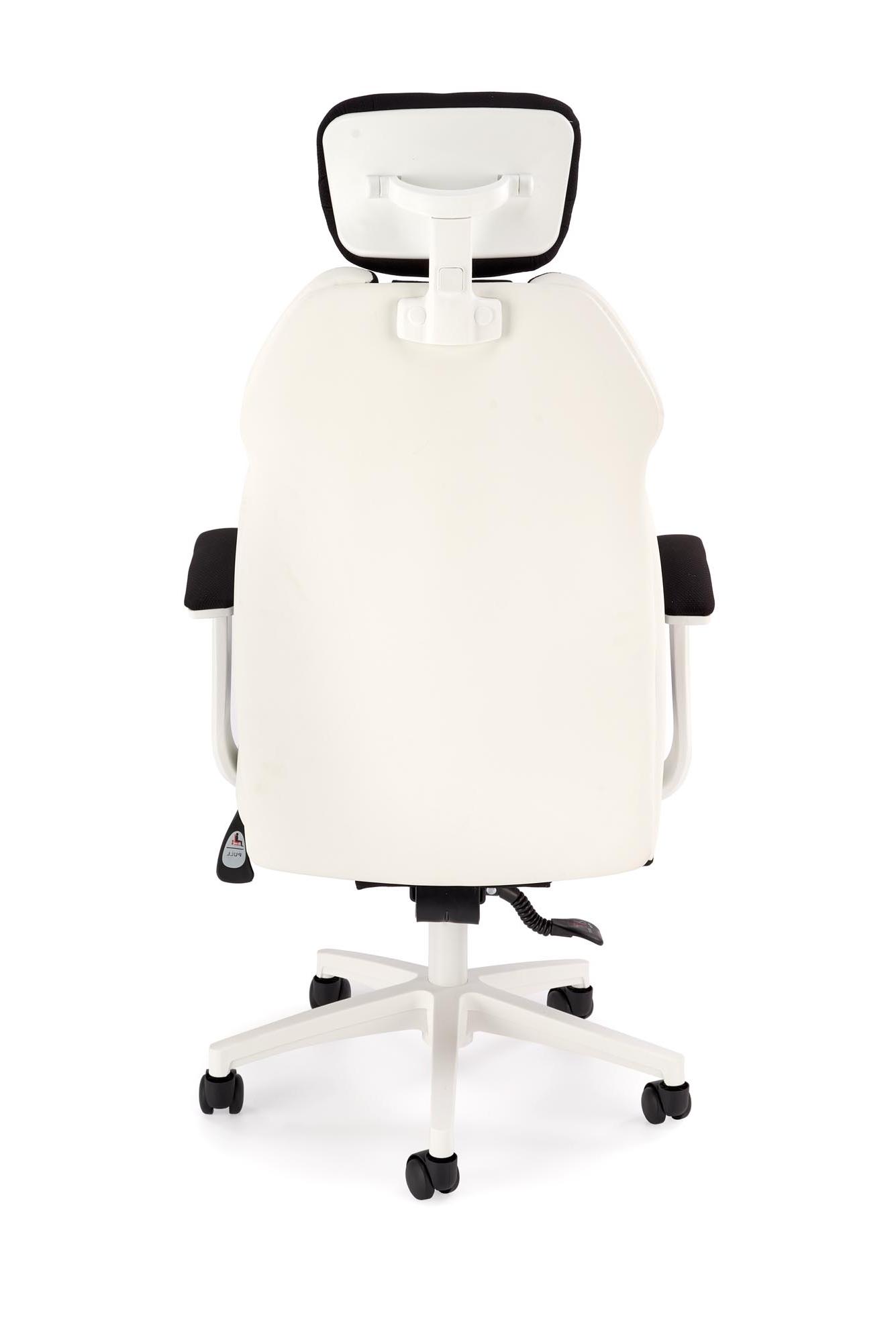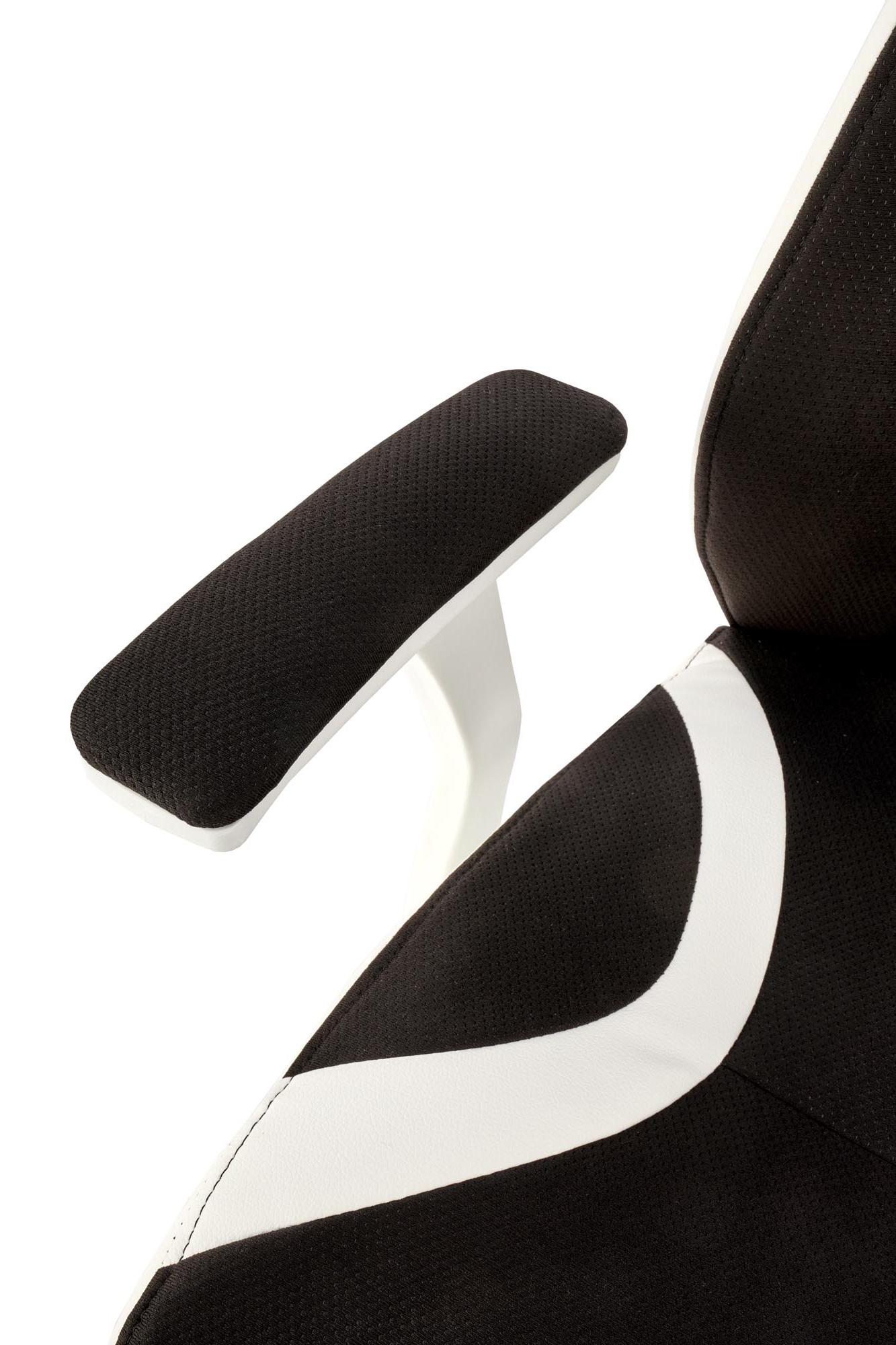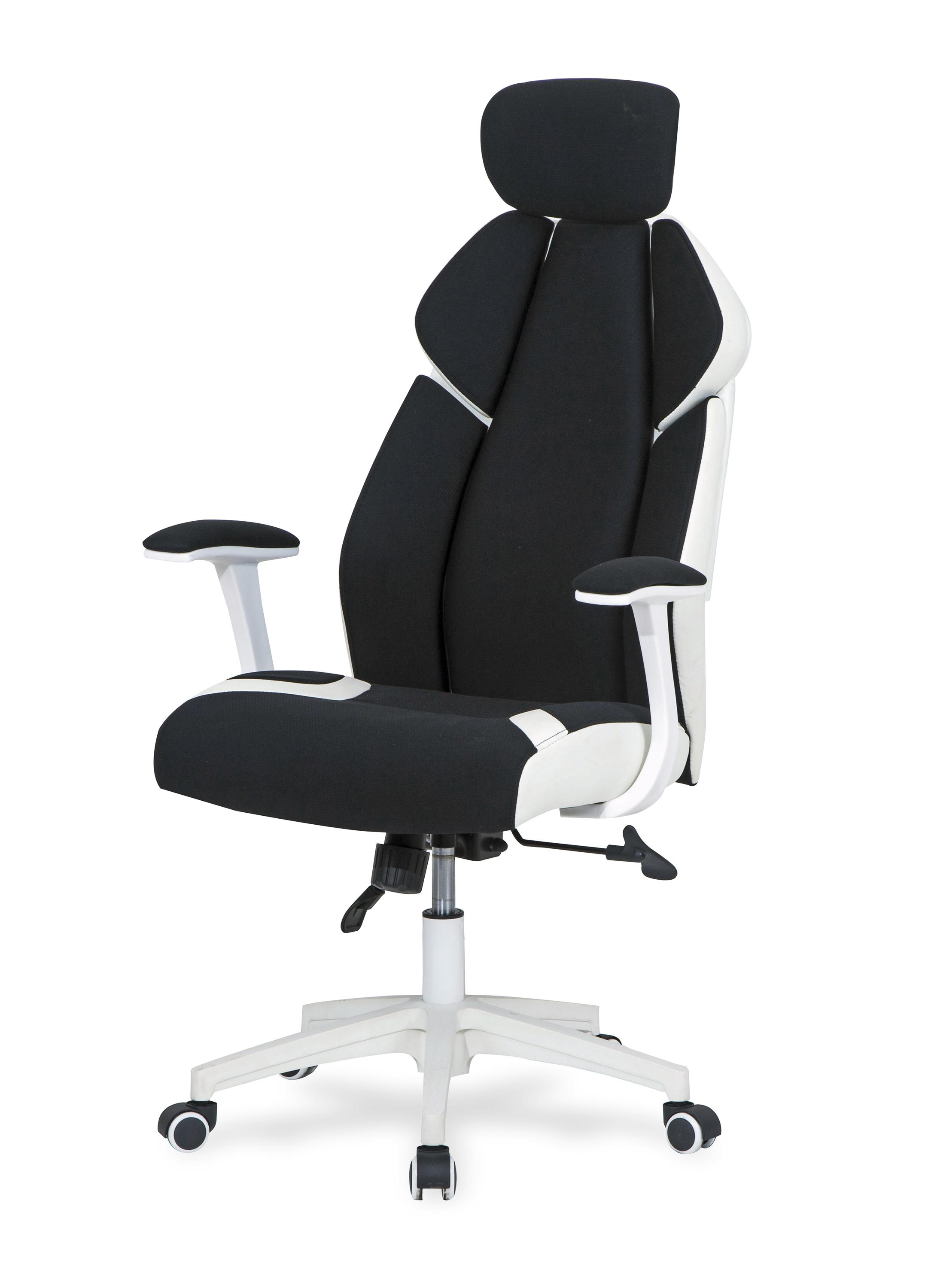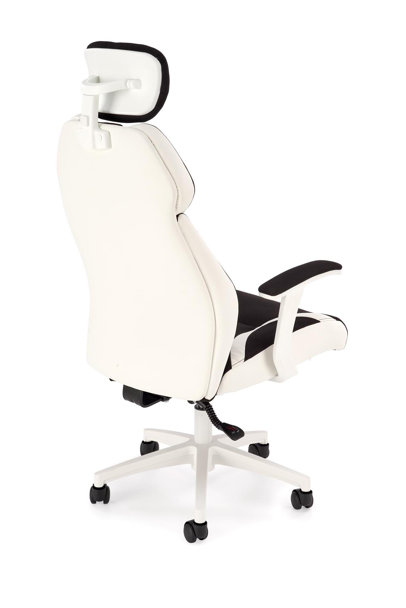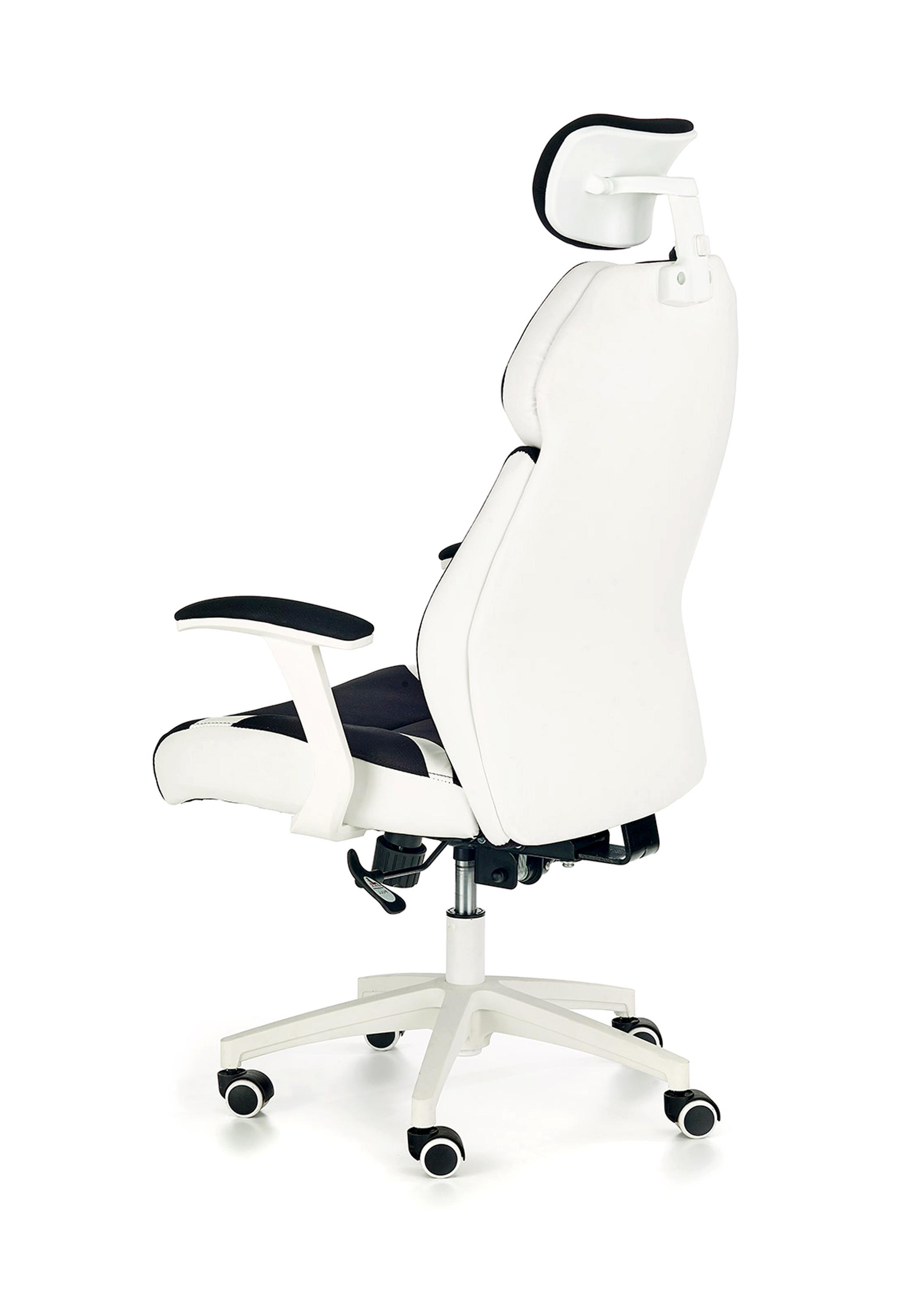 Fotel obrotowy wykonano z materiału: tkanina / eco skóra, kolor czarno-biały