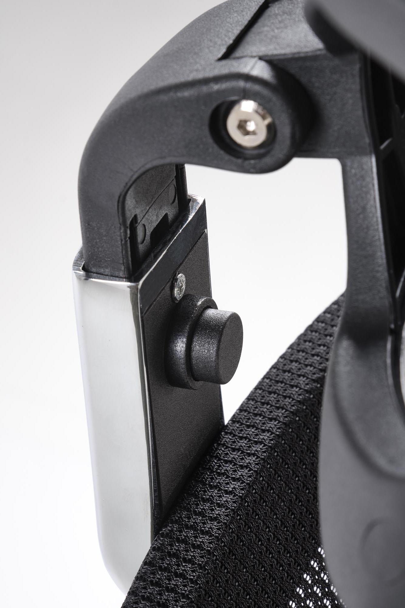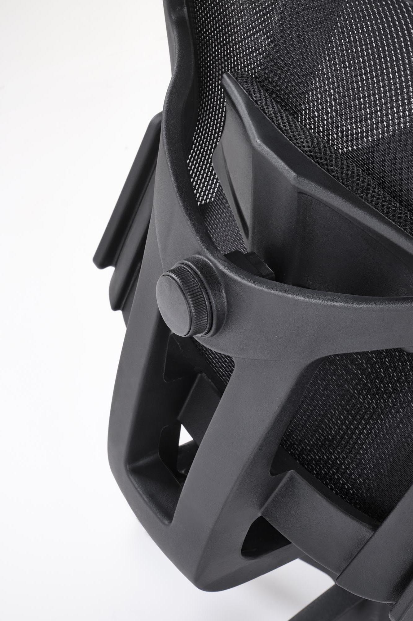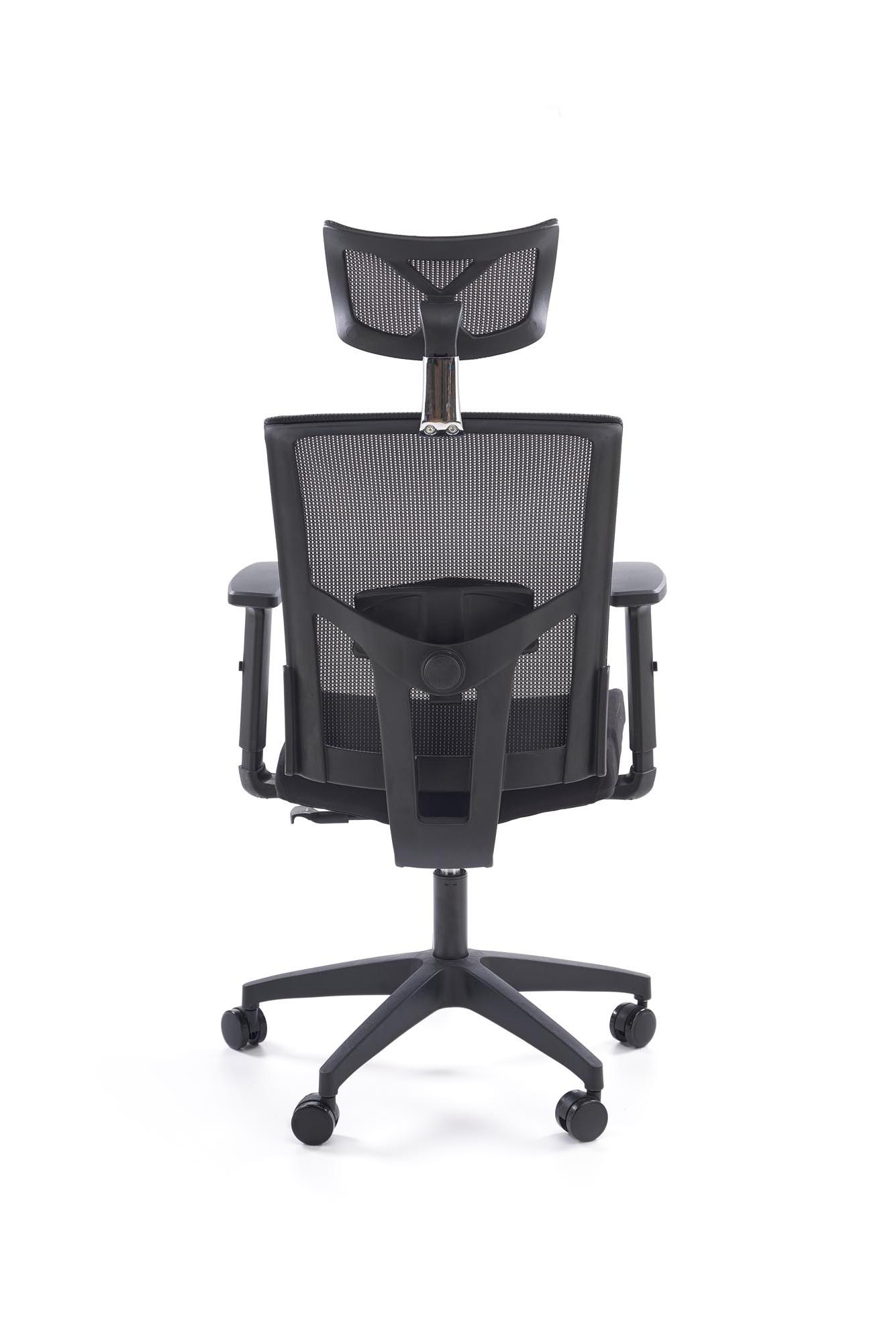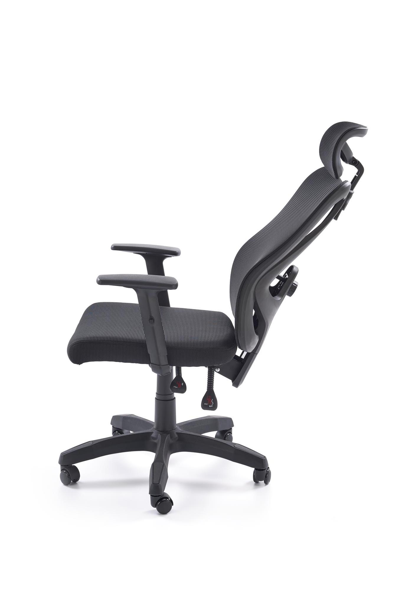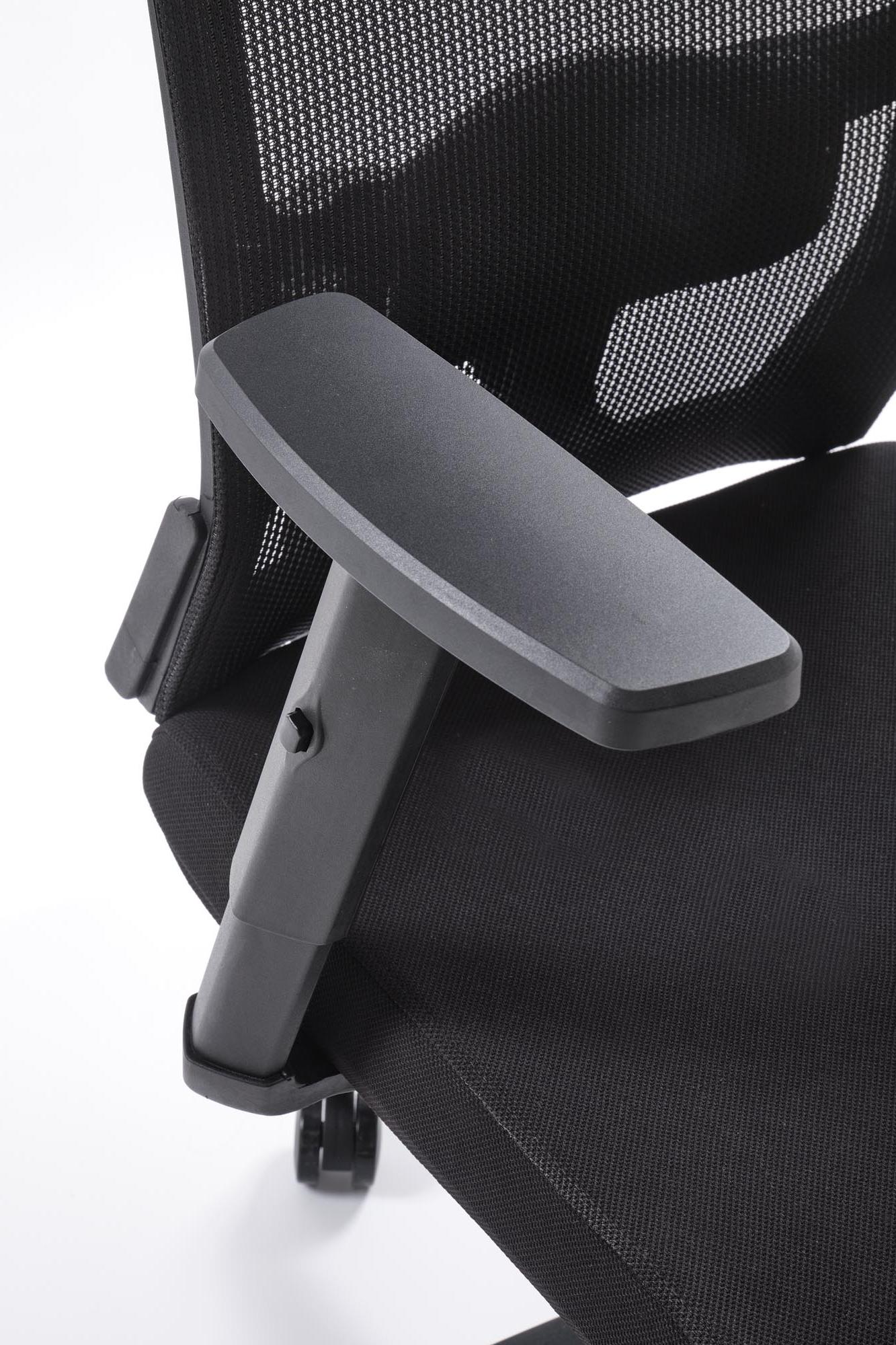 Fotel do biurka, nowoczesny, kolor czarny, kółka kauczukowe, podłokietniki i zagłówek regulowane, tkanina, siatka