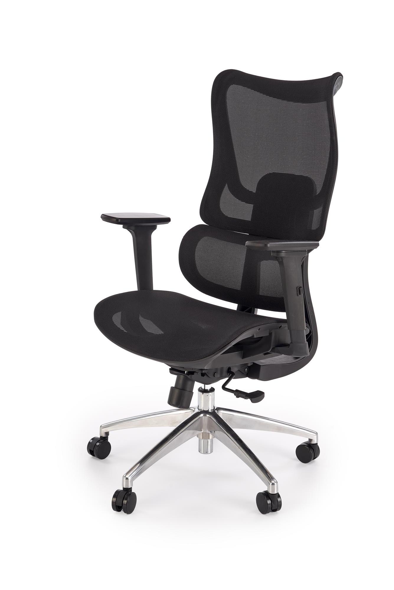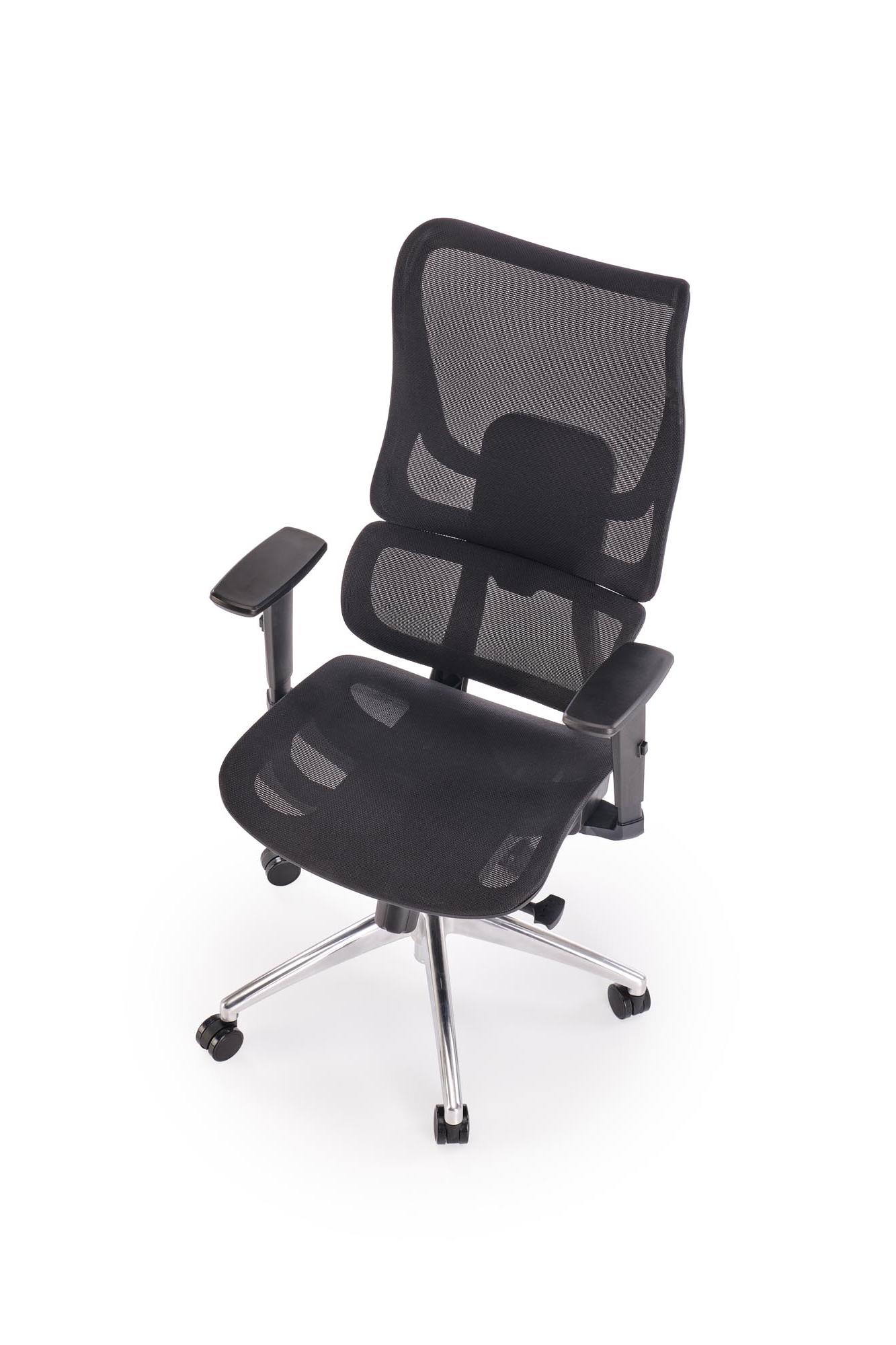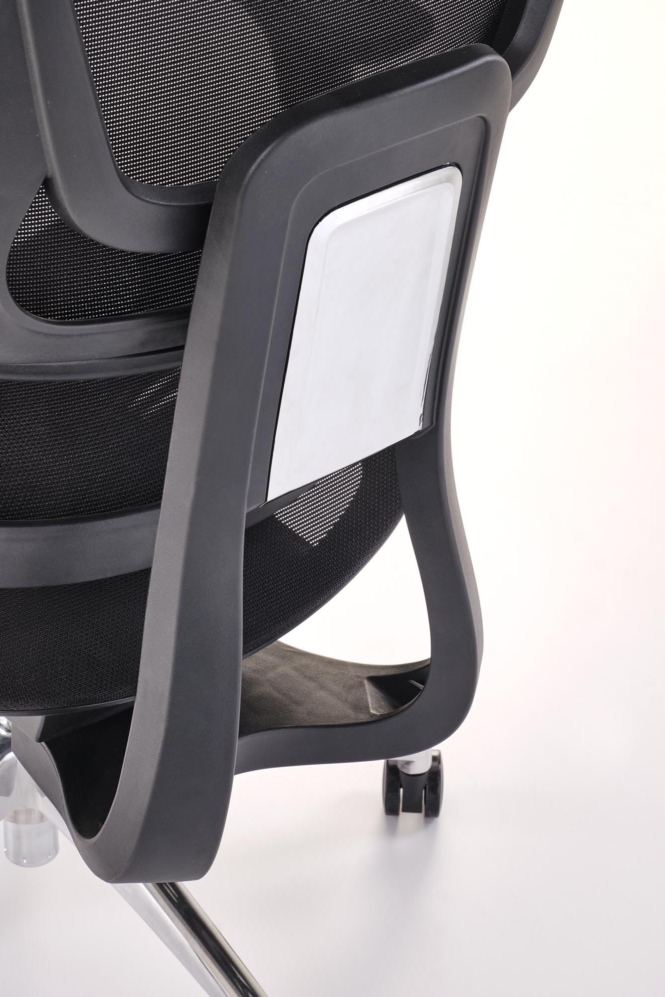 Fotel do biurka, nowoczesny, kolor czarny, siatka, na chromowanej podstawie, kółka kauczukowe, regulowane podłokietniki