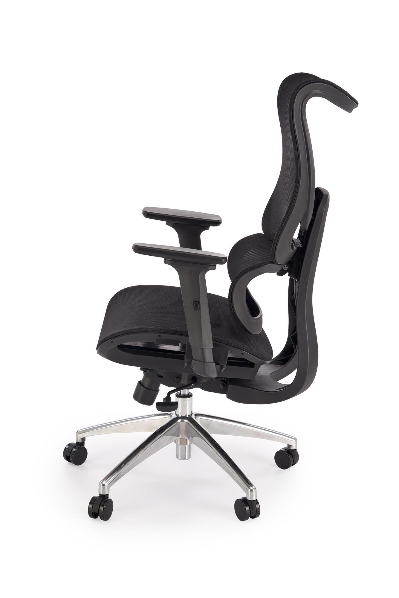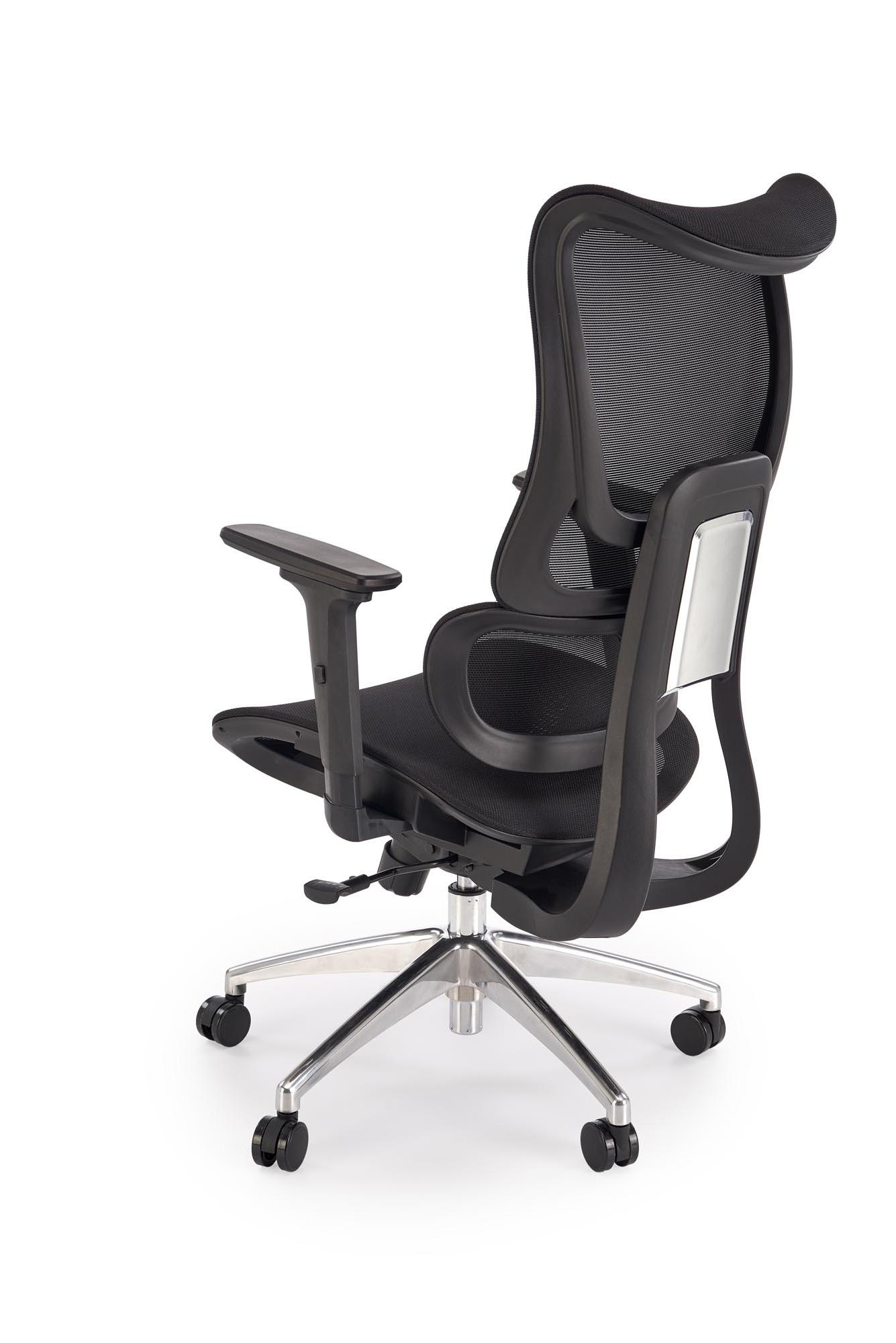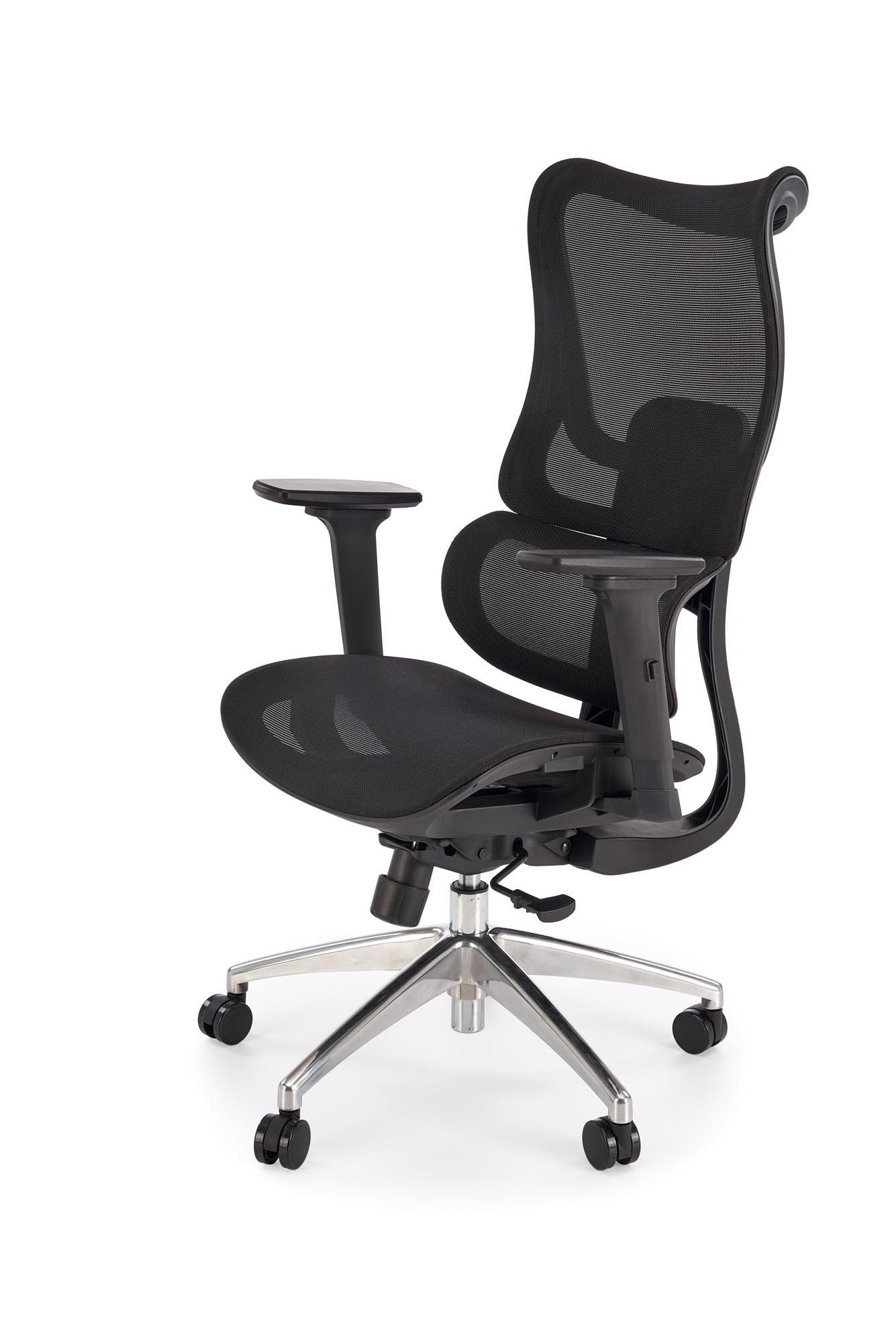 Fotel do biurka, nowoczesny, kolor czarny, siatka, na chromowanej podstawie, kółka kauczukowe, regulowane podłokietniki