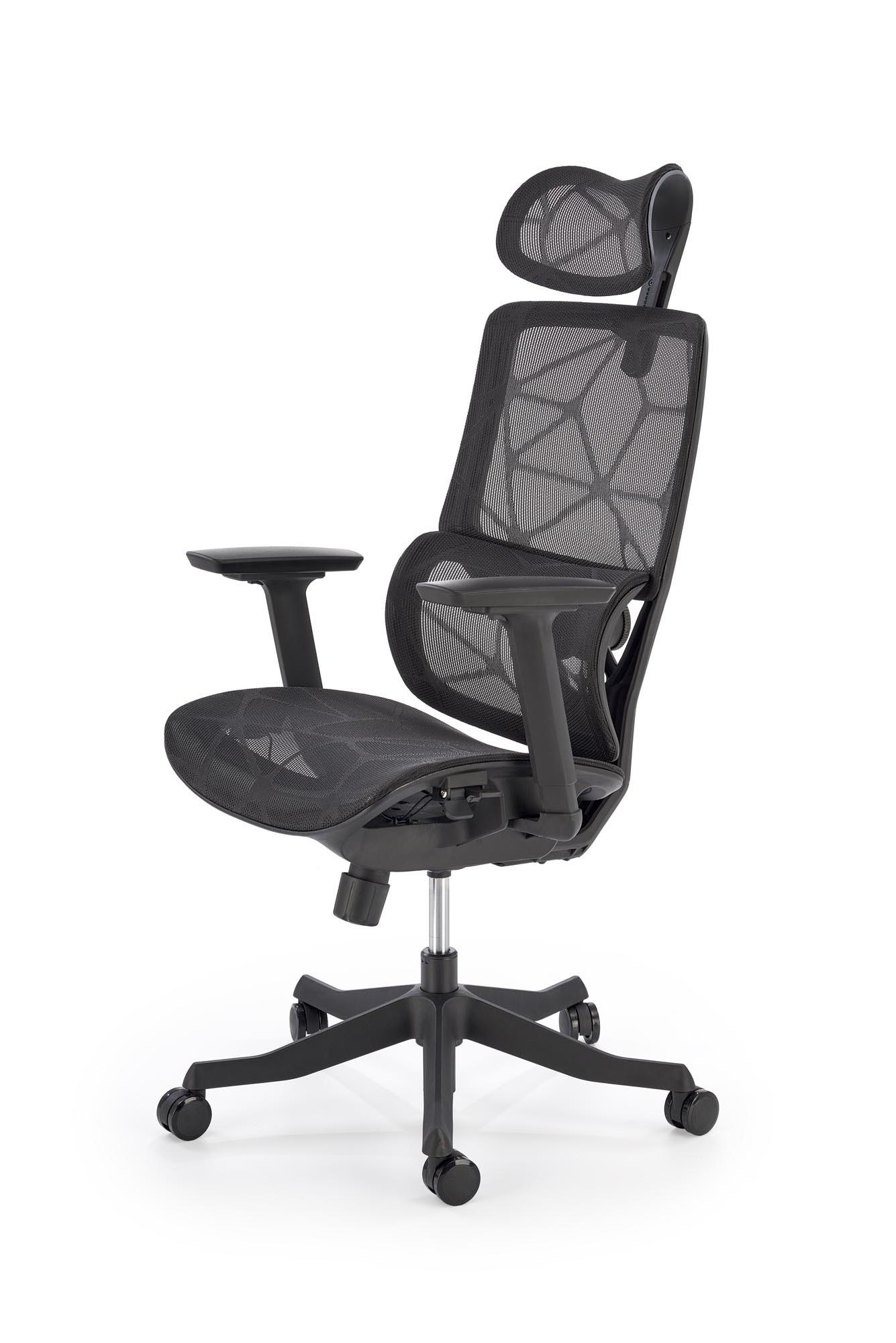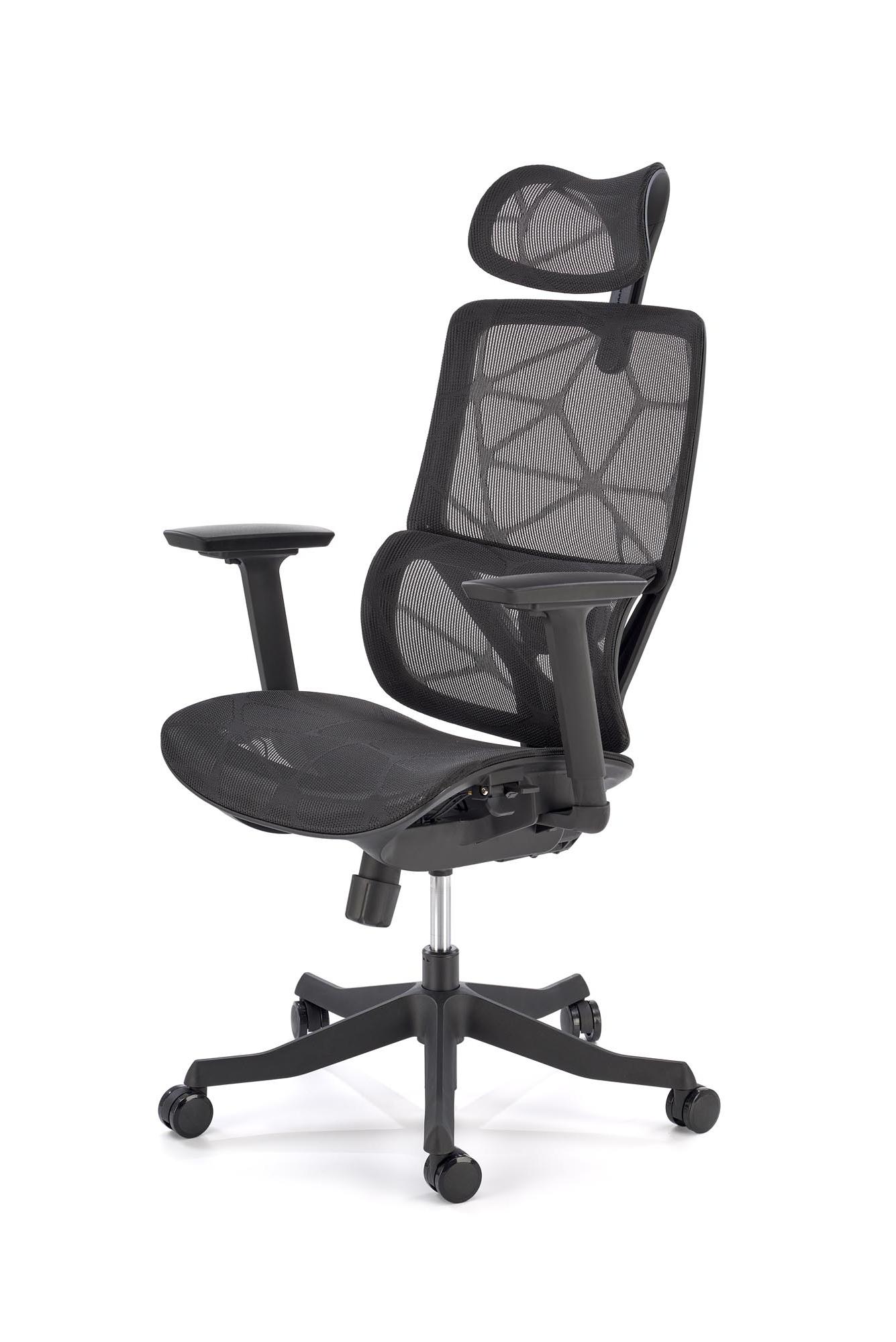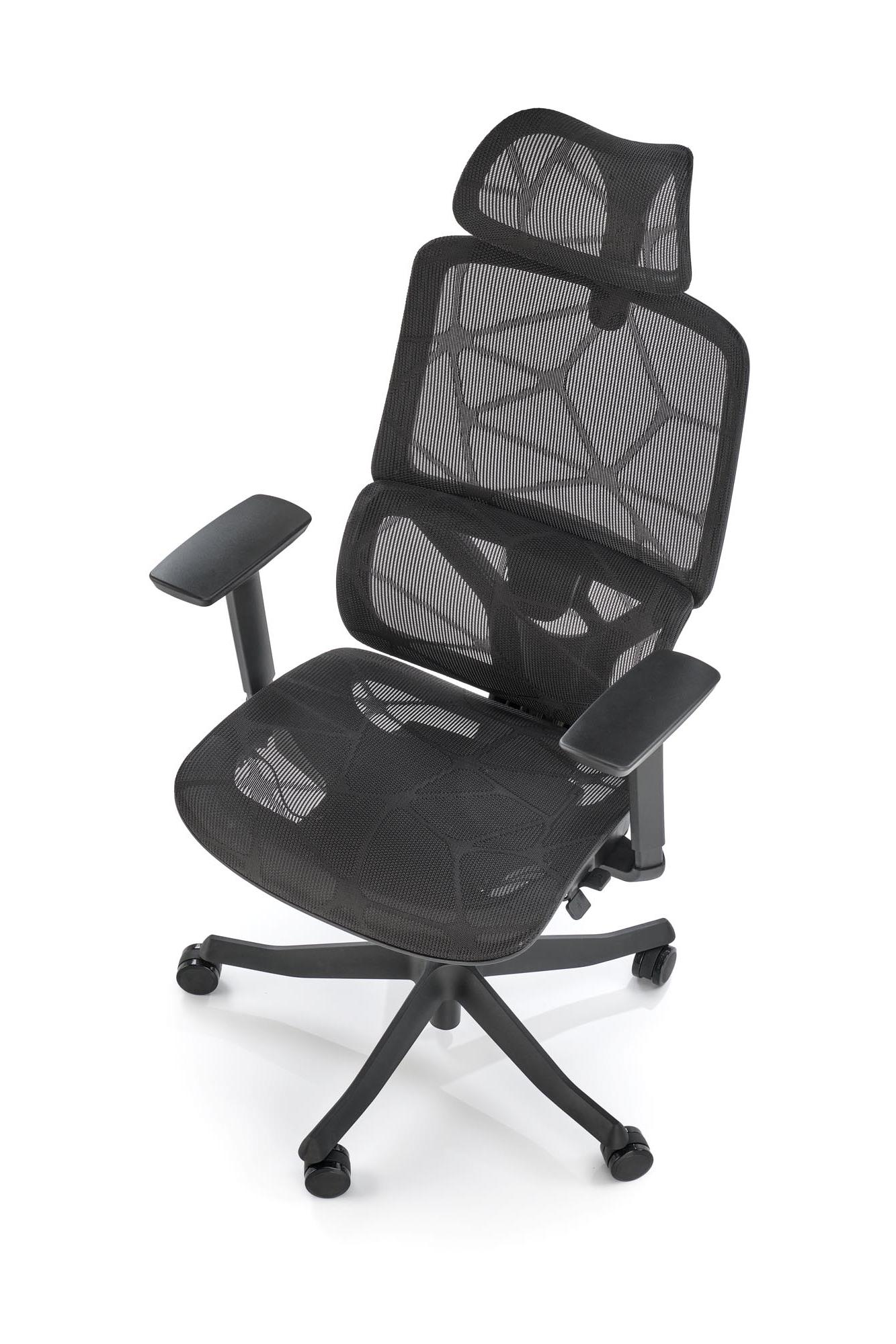 Fotel do biurka, nowoczesny, kolor czarny, z regulowanym zagłówkiem i podłokietnikami, siatkowe oparcie
