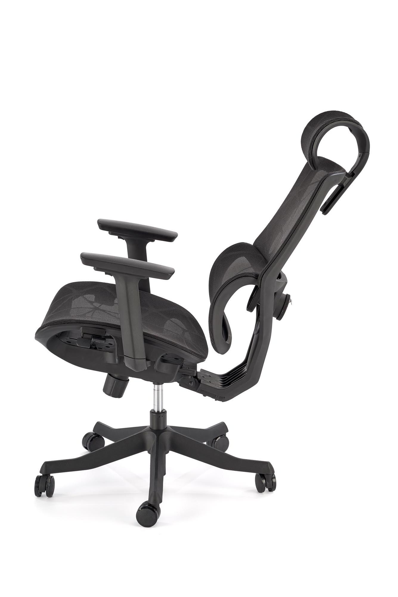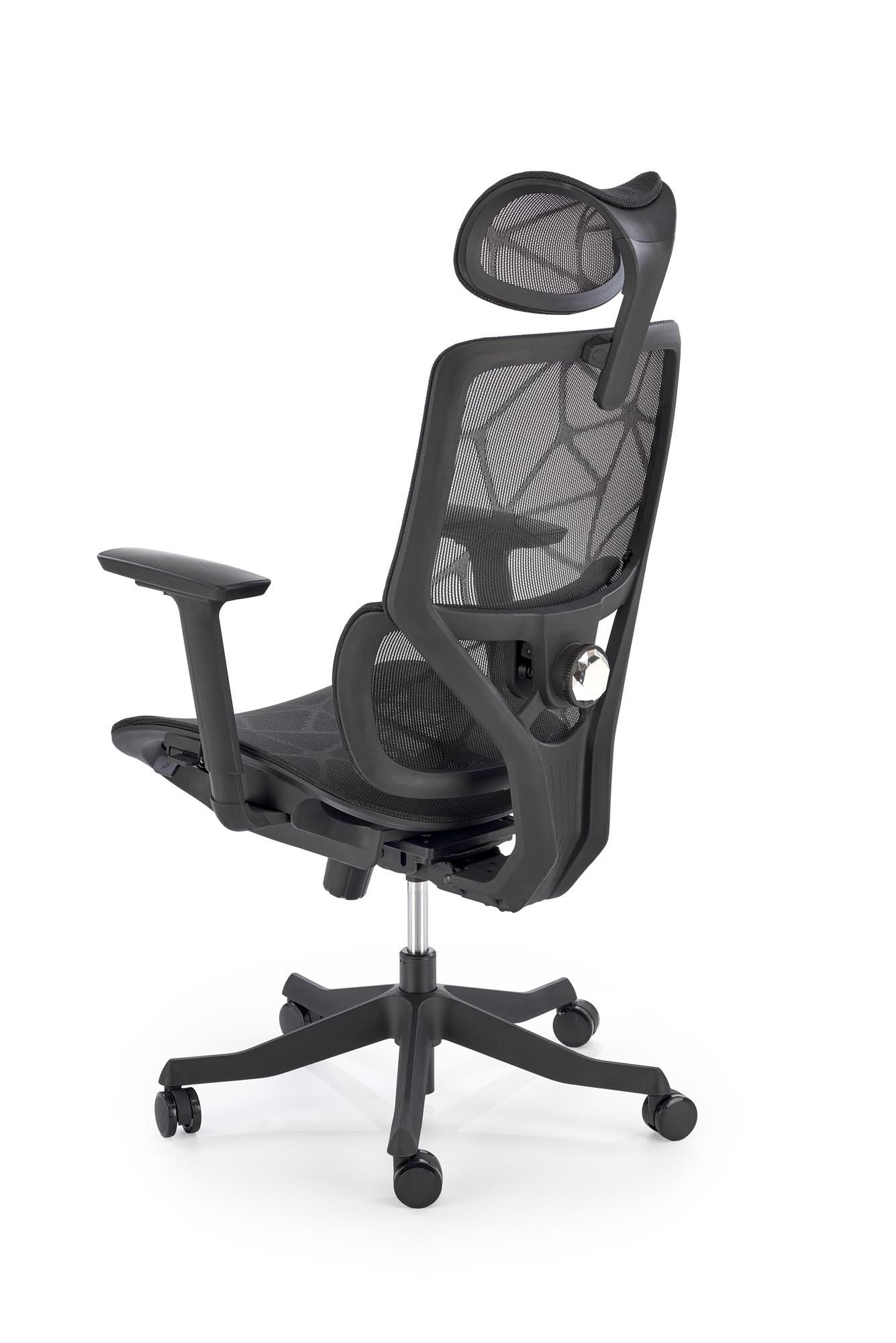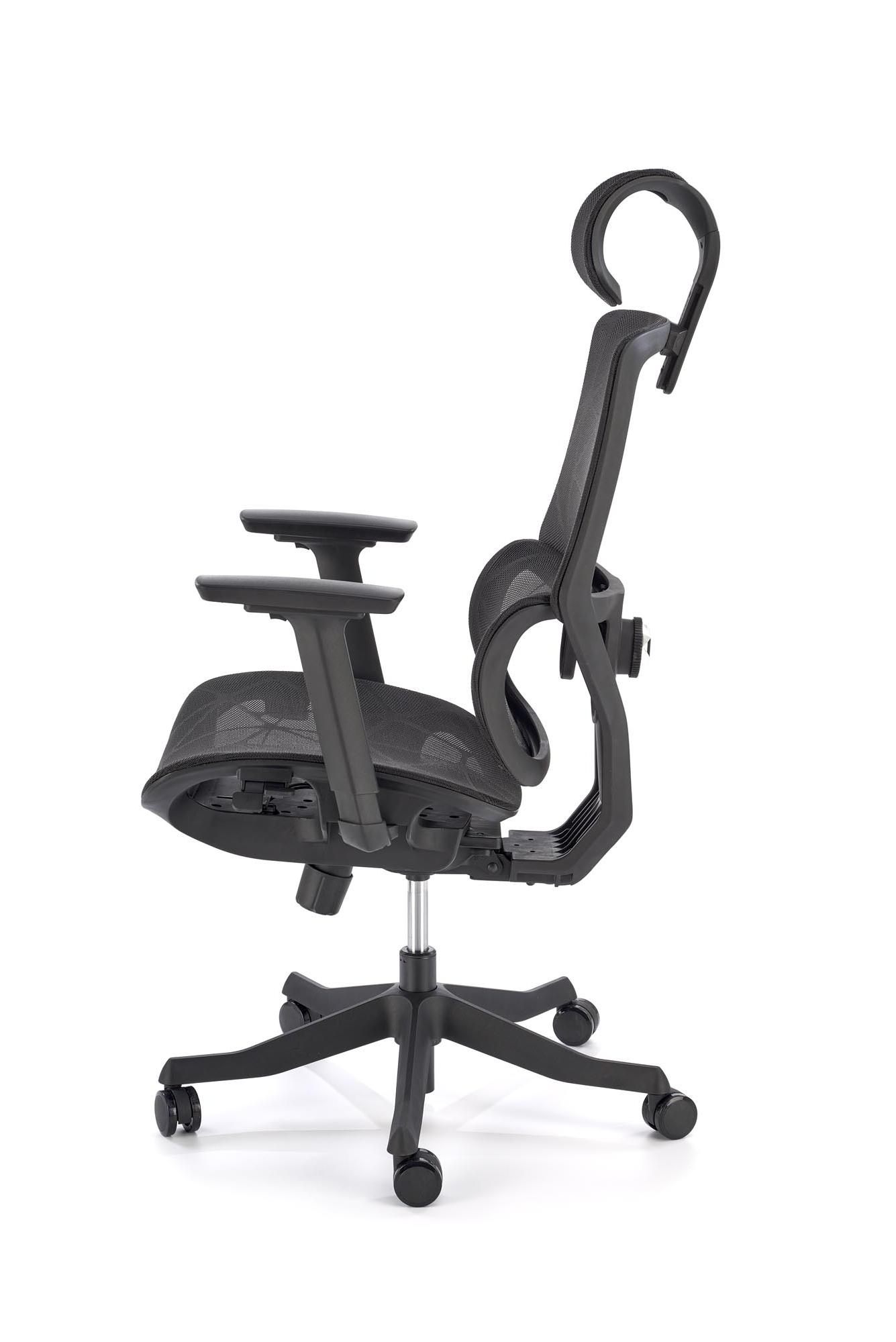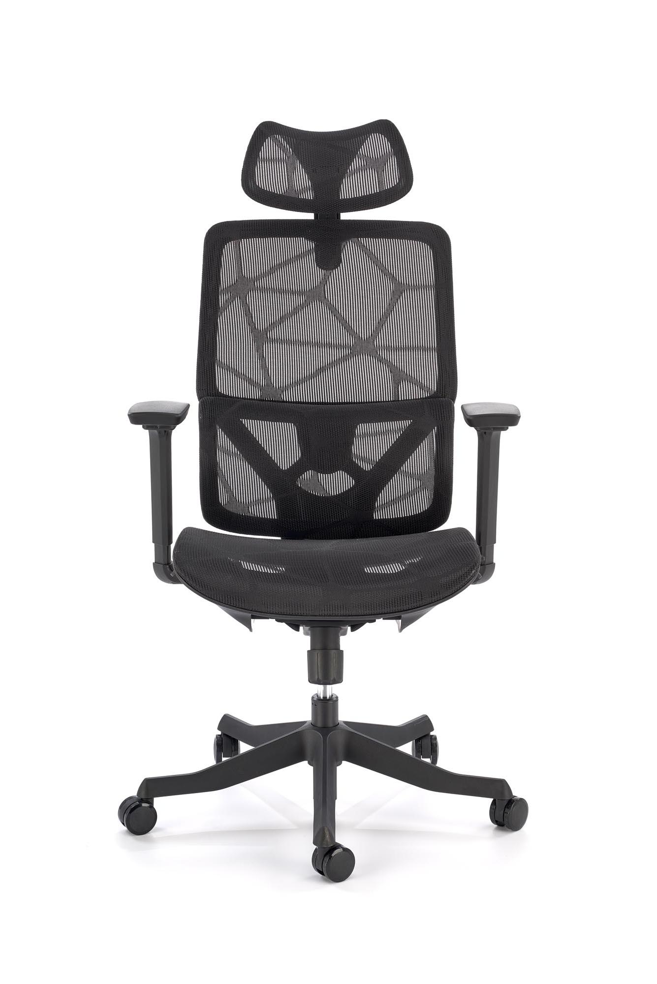 Fotel do biurka, nowoczesny, kolor czarny, z regulowanym zagłówkiem i podłokietnikami, siatkowe oparcie