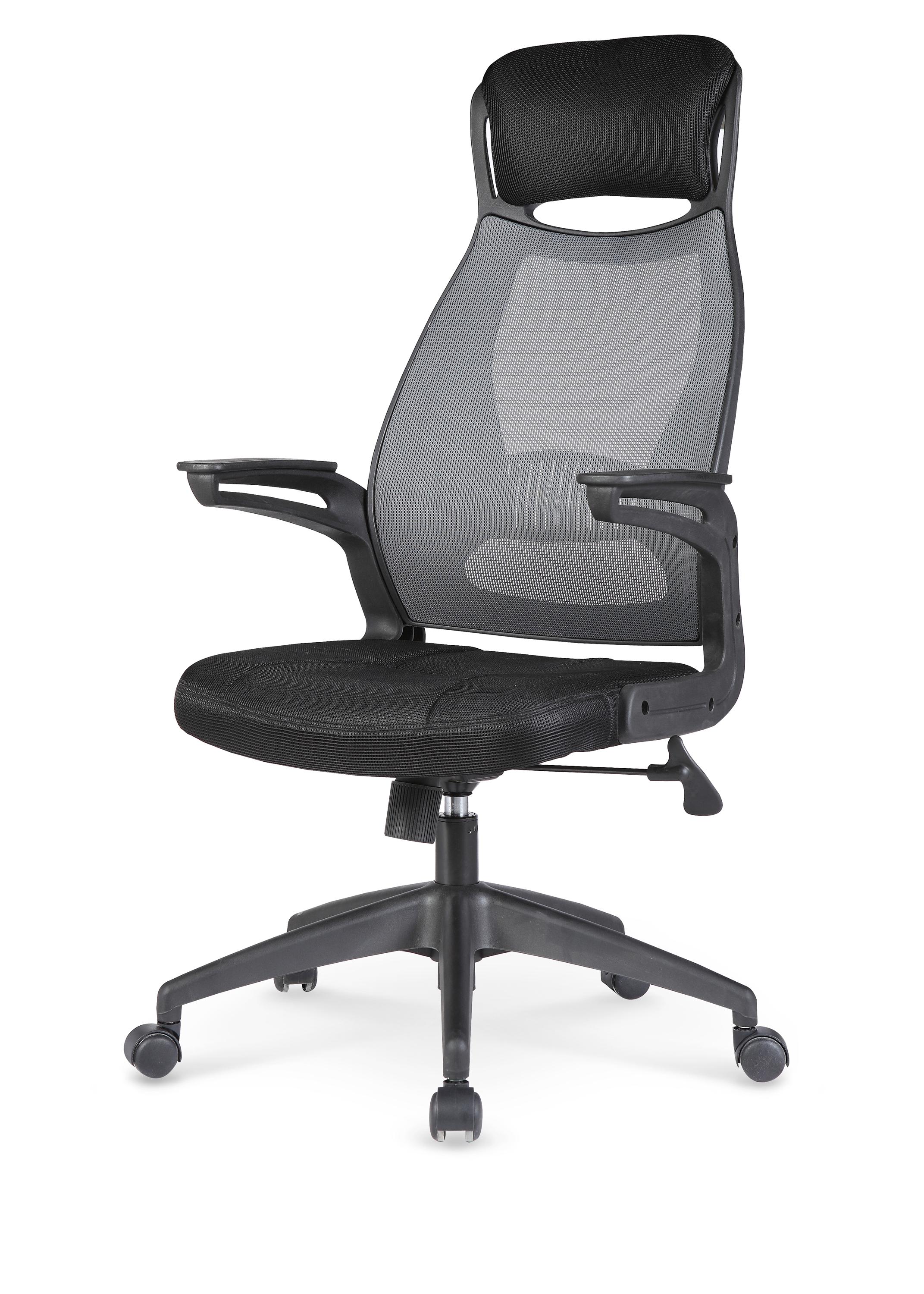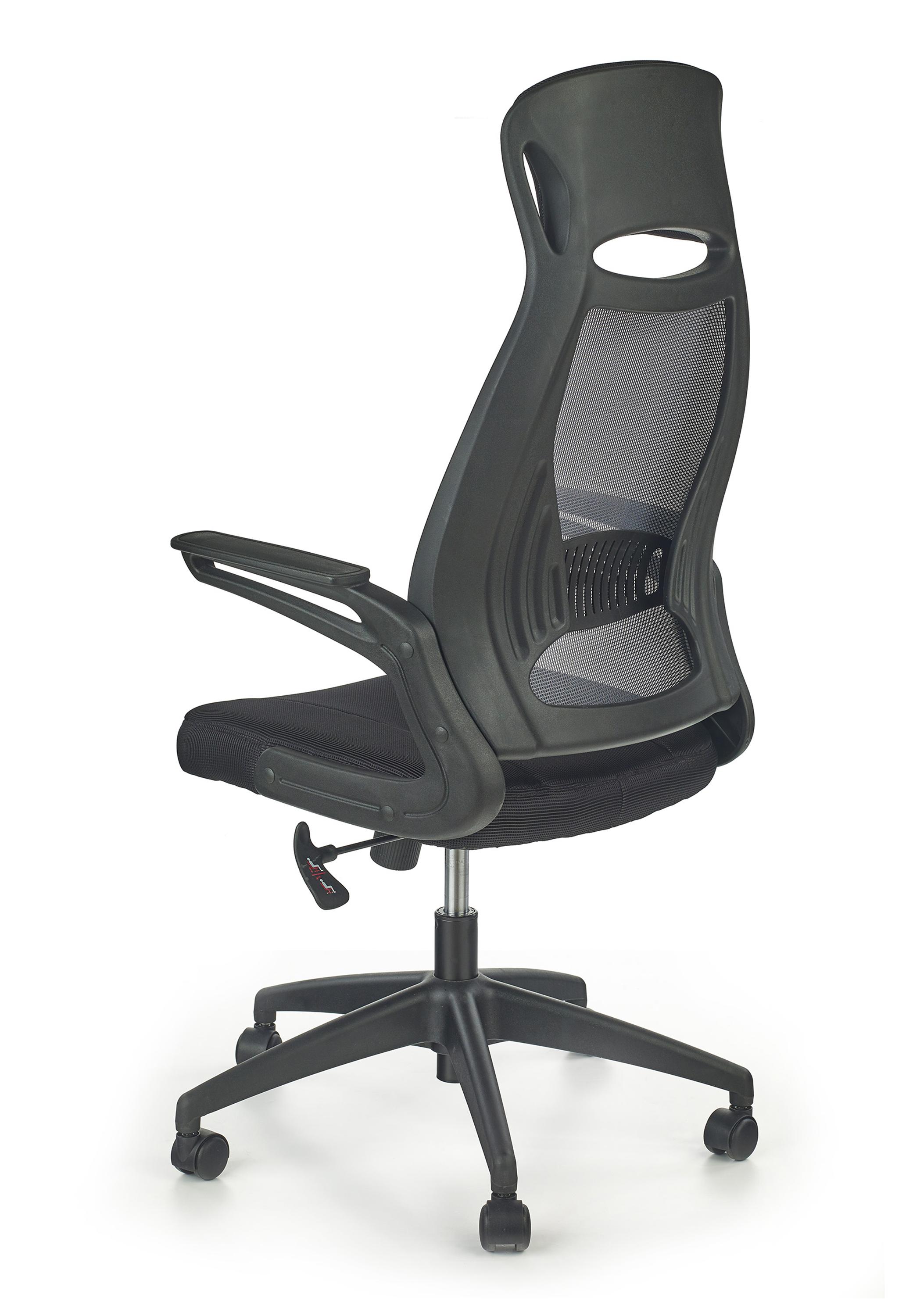 Fotel obrotowy wykonano z materiału: tkanina membranowa / siatka, kolor czarno-popielaty