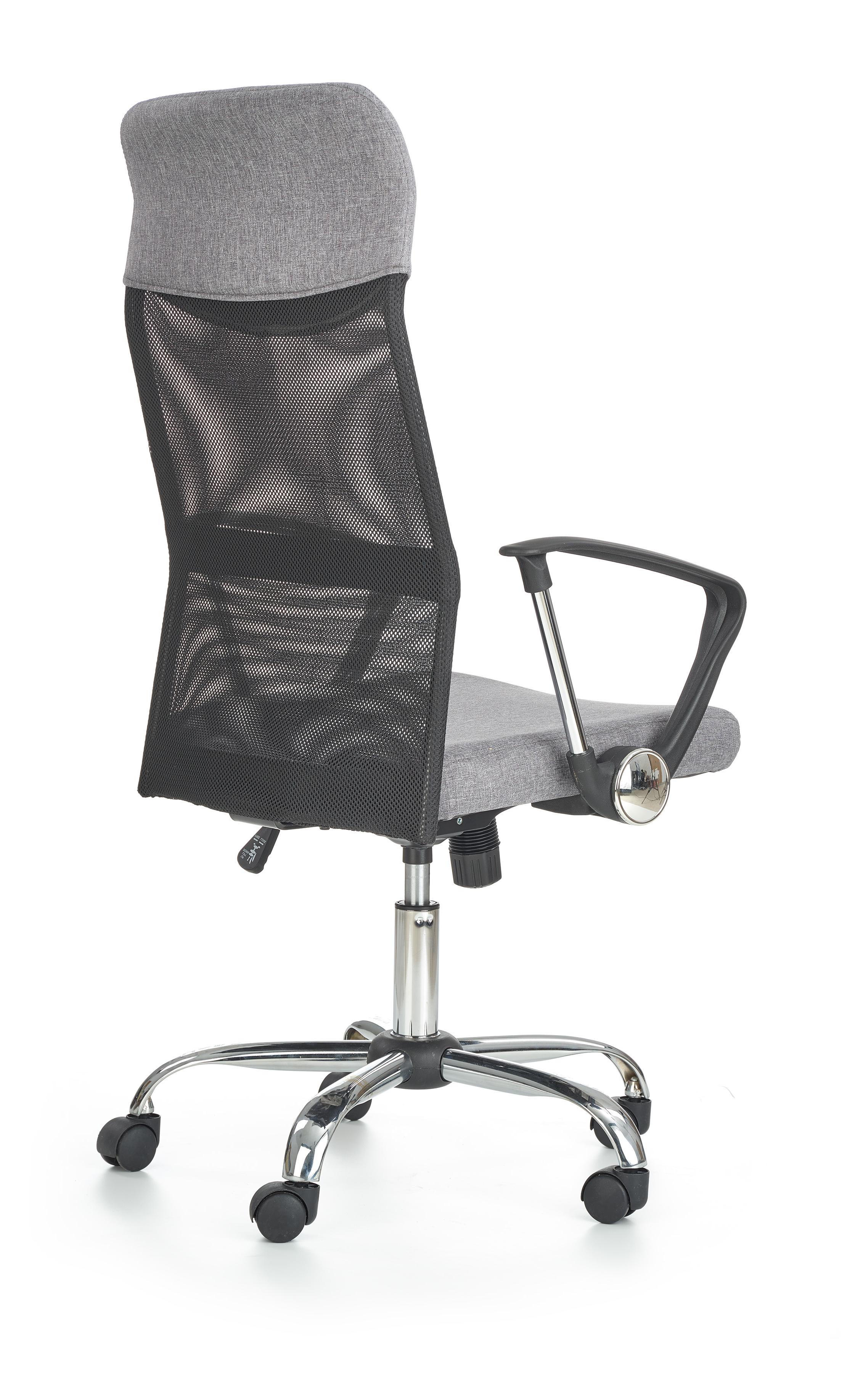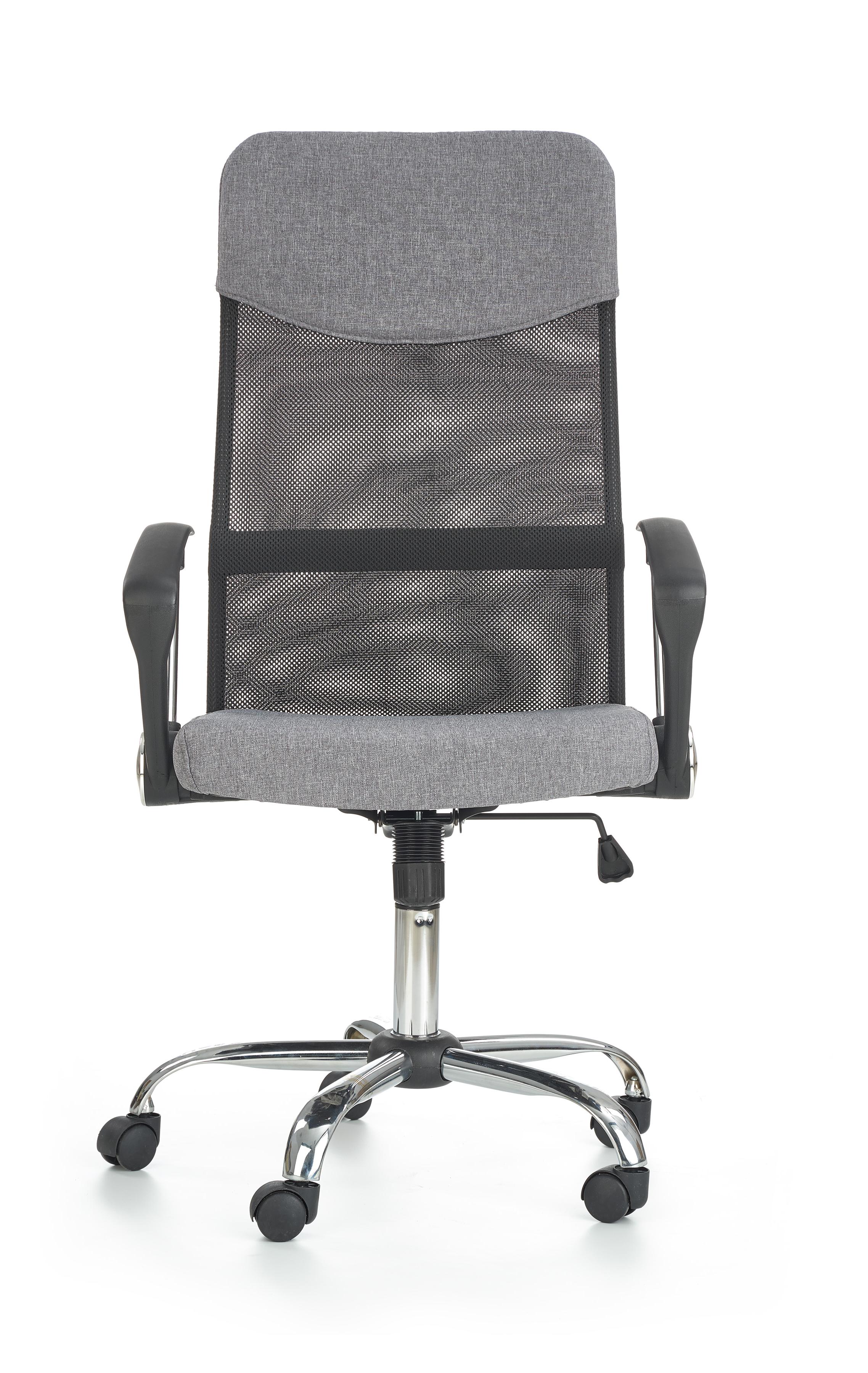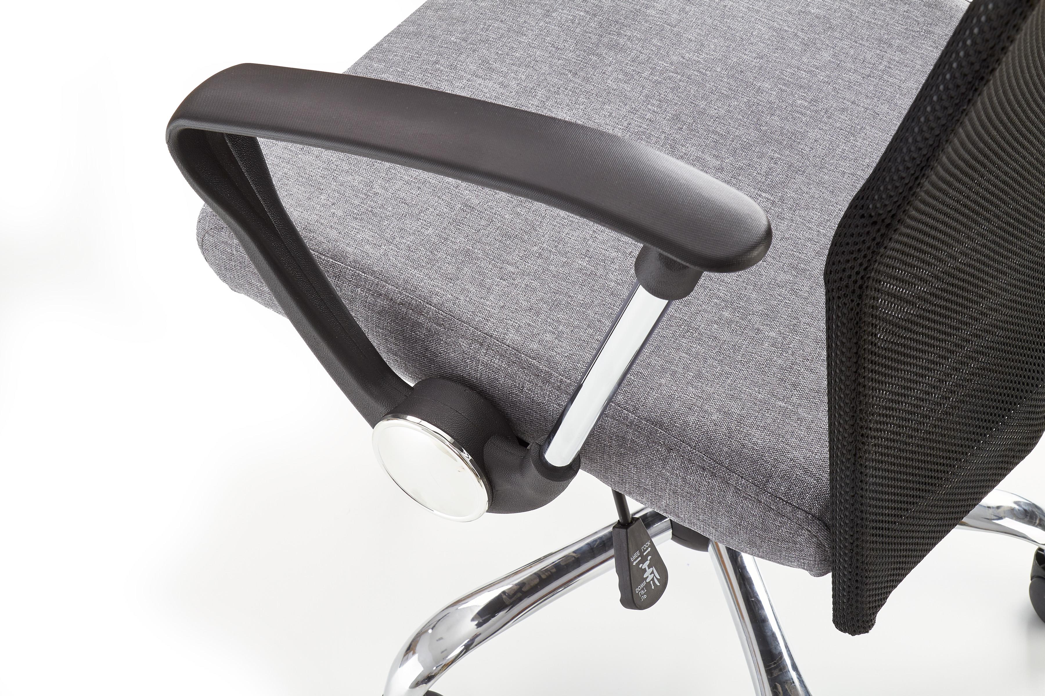 Fotel obrotowy wykonano z materiału: tkanina / siatka, kolor czarno-popielaty