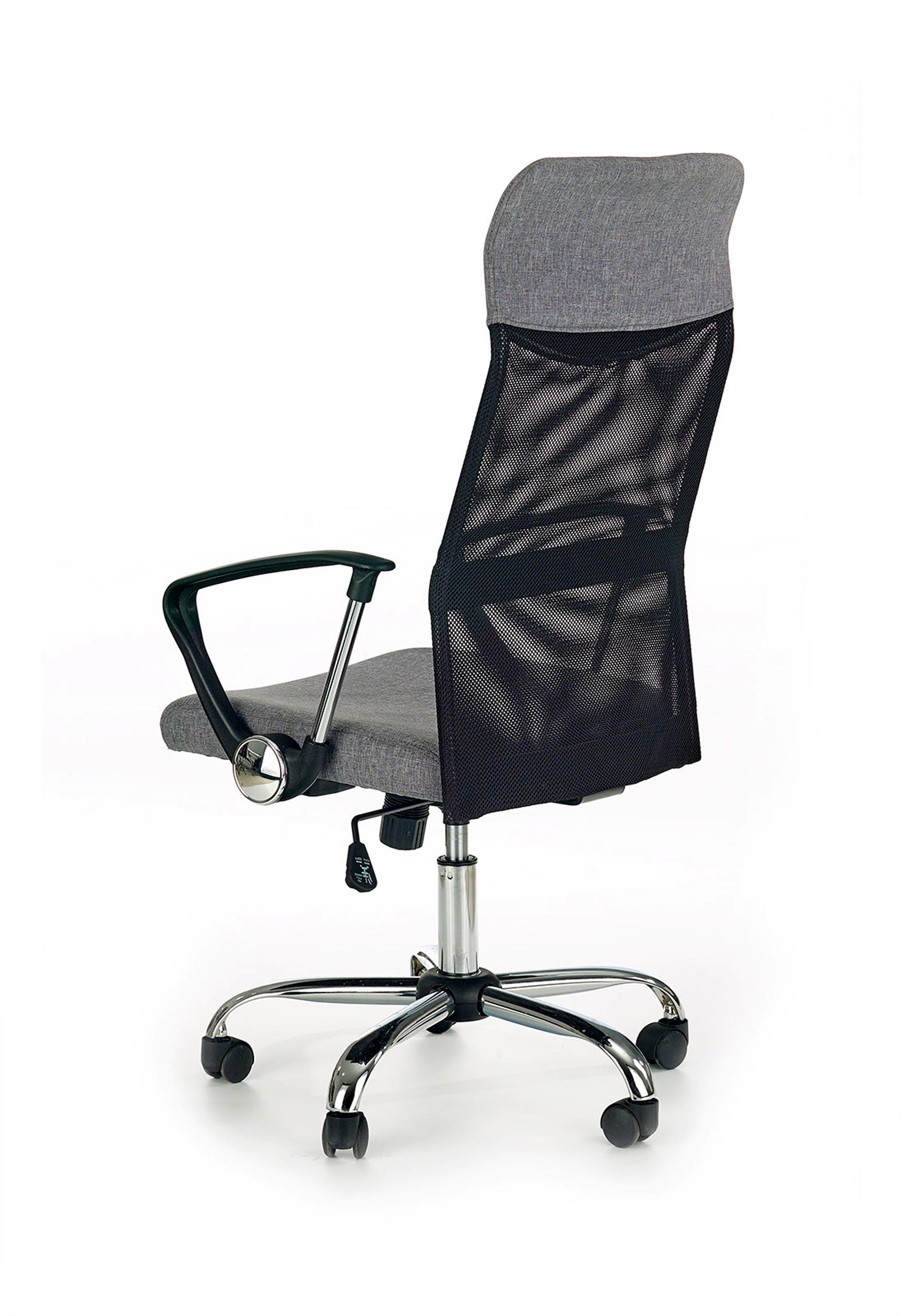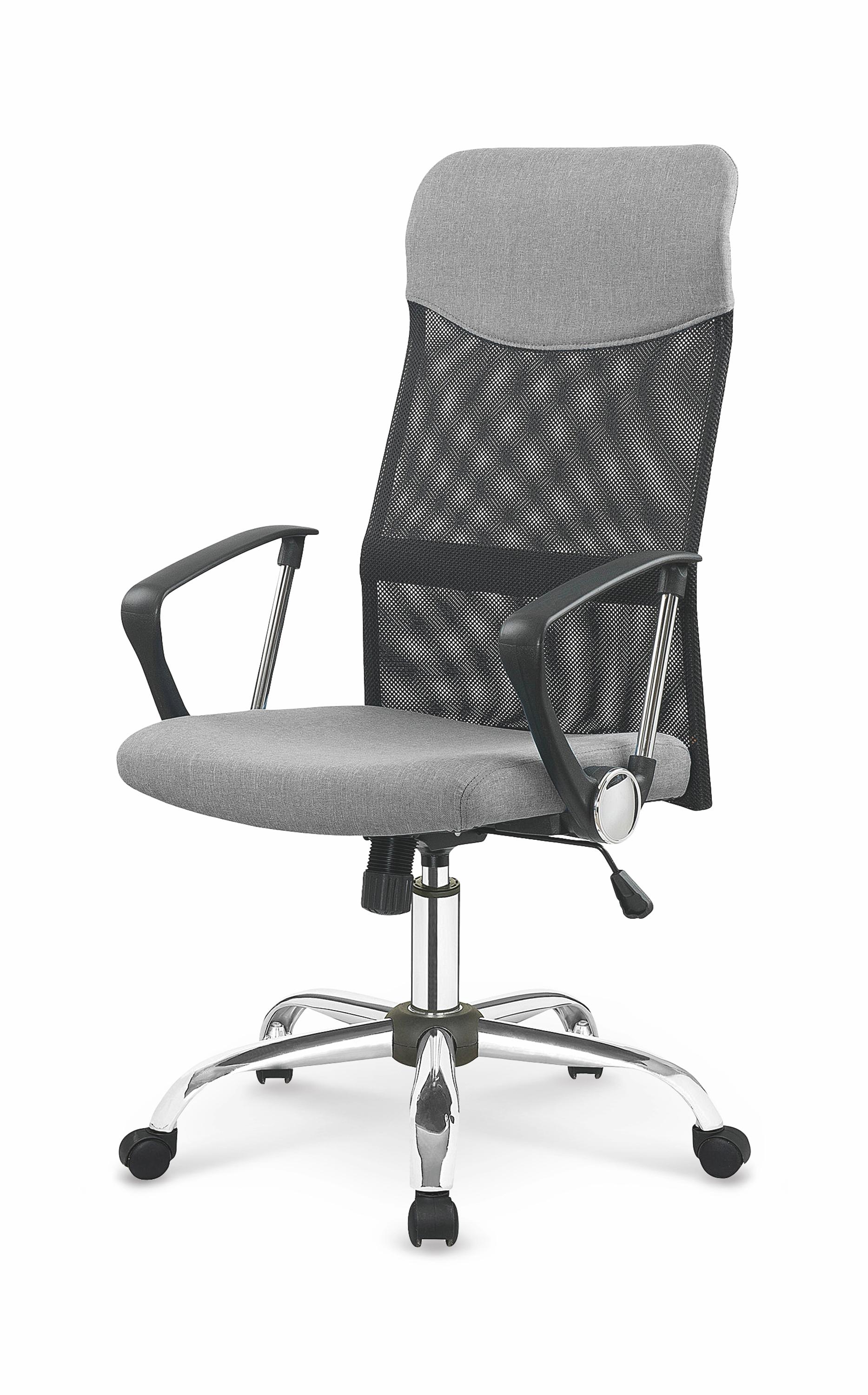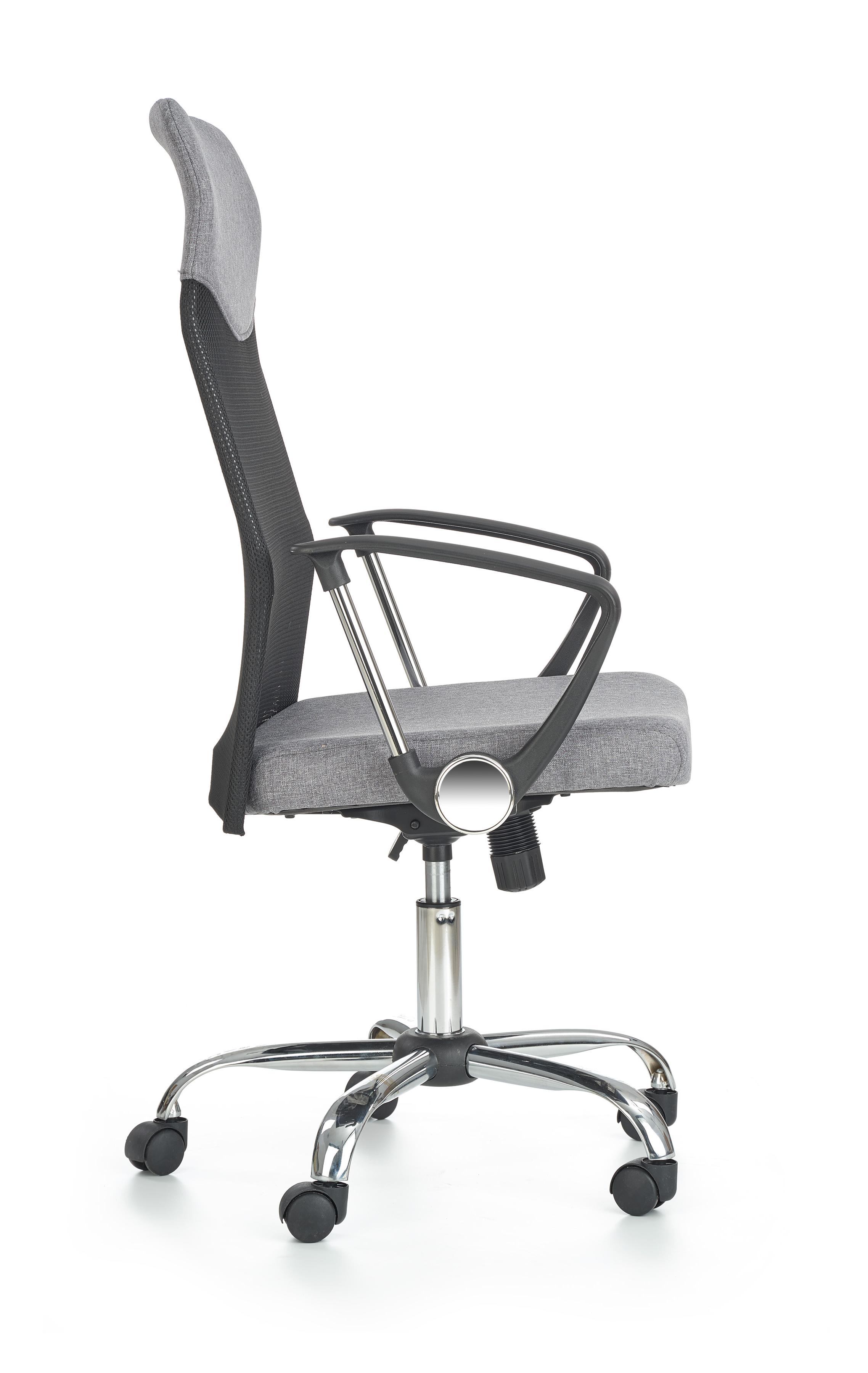 Fotel obrotowy wykonano z materiału: tkanina / siatka, kolor czarno-popielaty