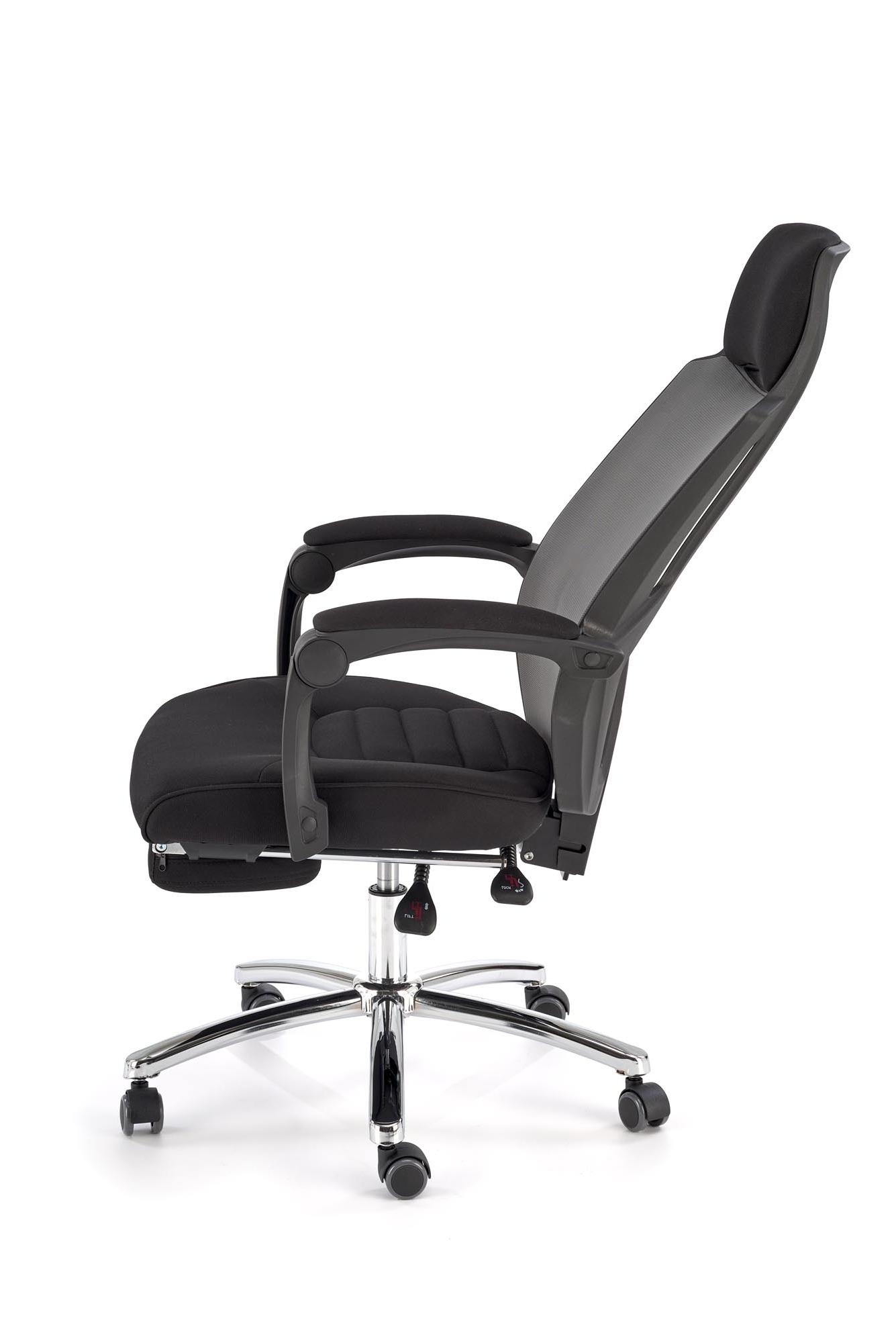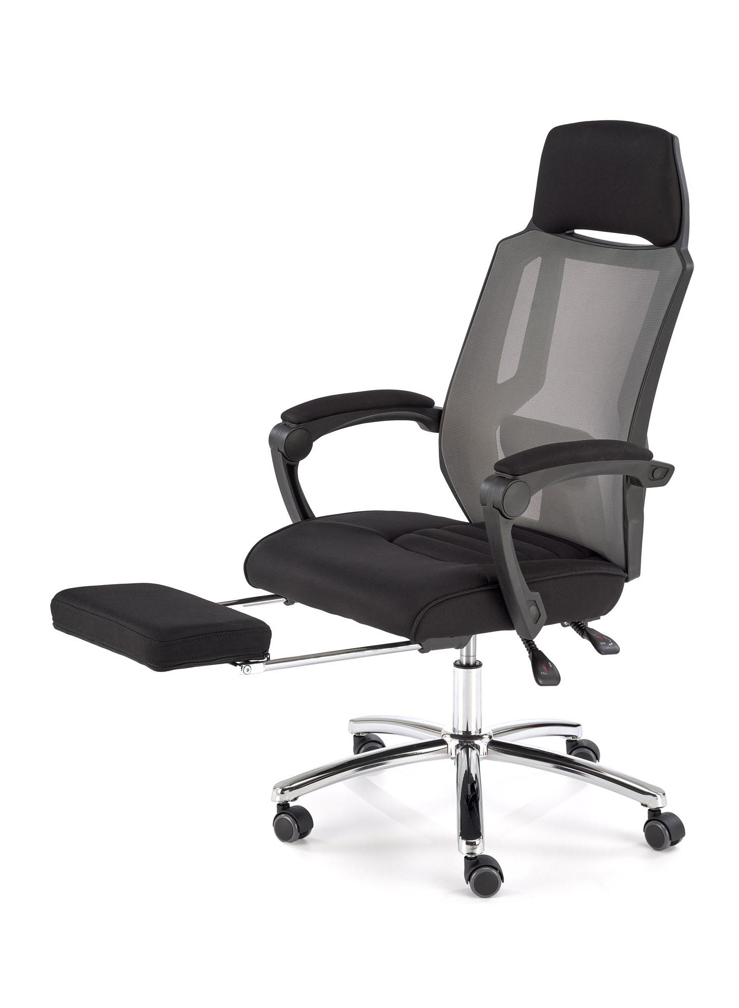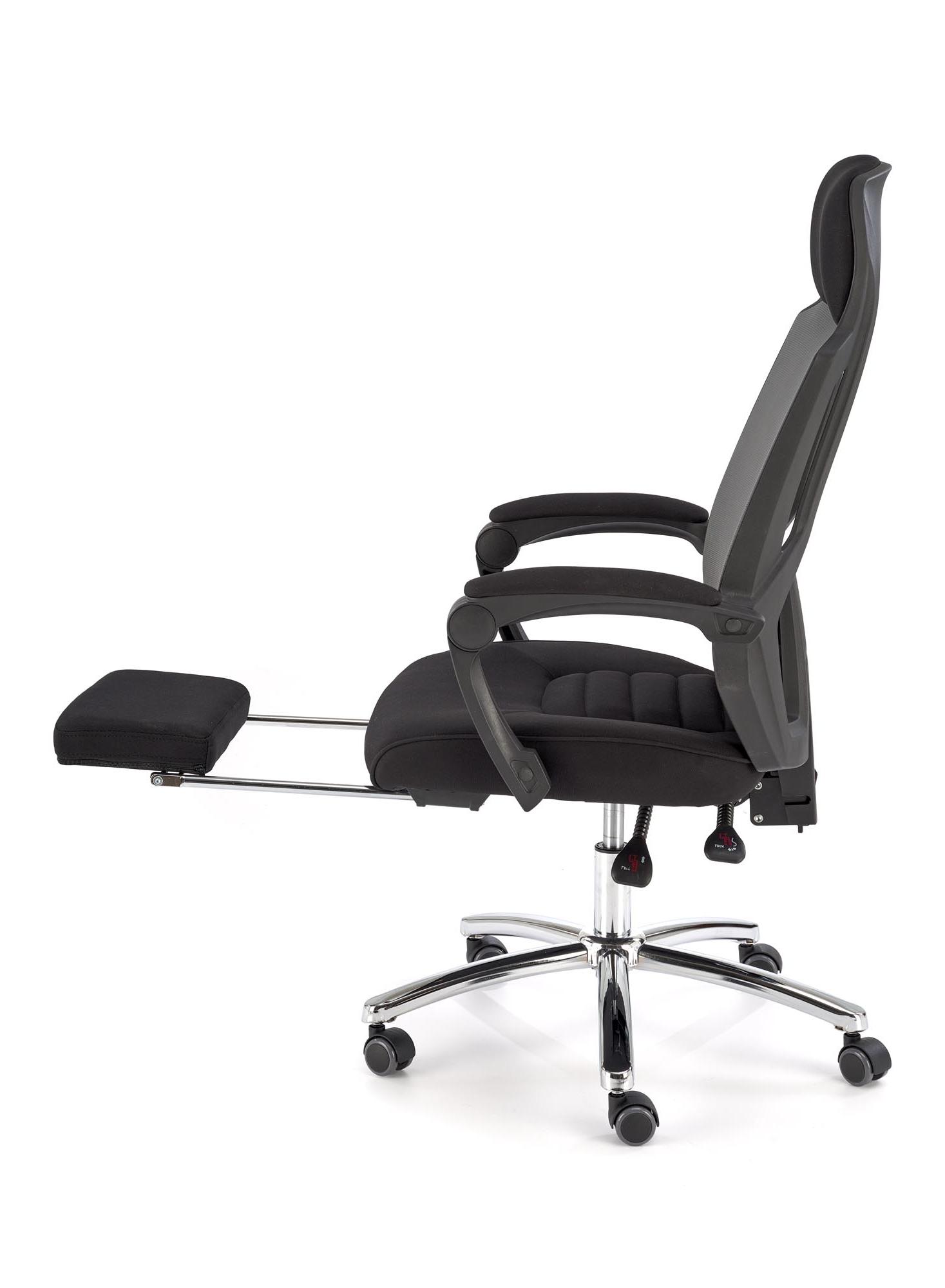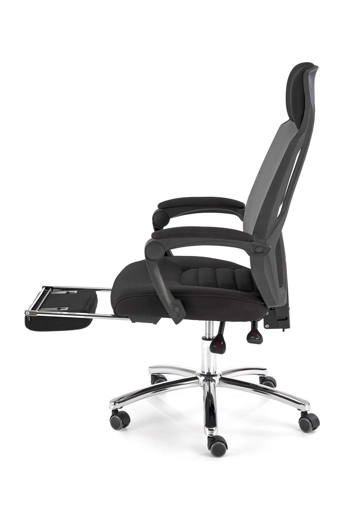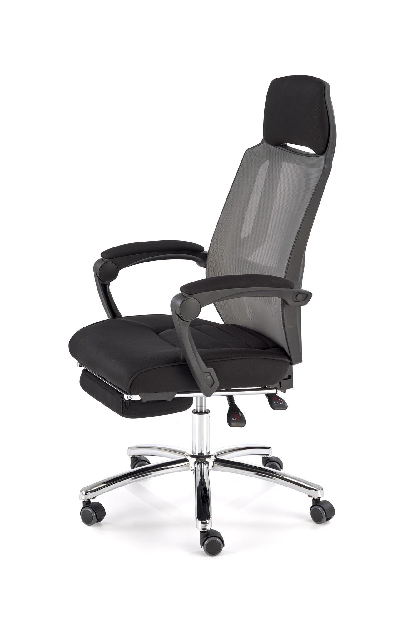 Fotel do biurka z wysuwanym podnóżkiem, na chromowanej podstawie, czarno-popielaty, tkanina membranowa, siatka