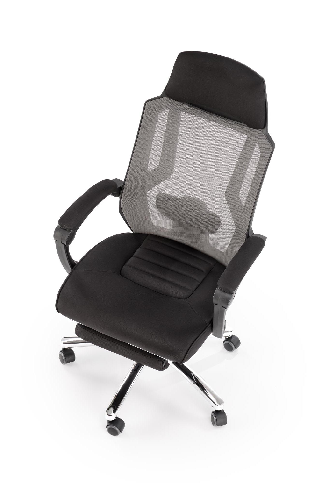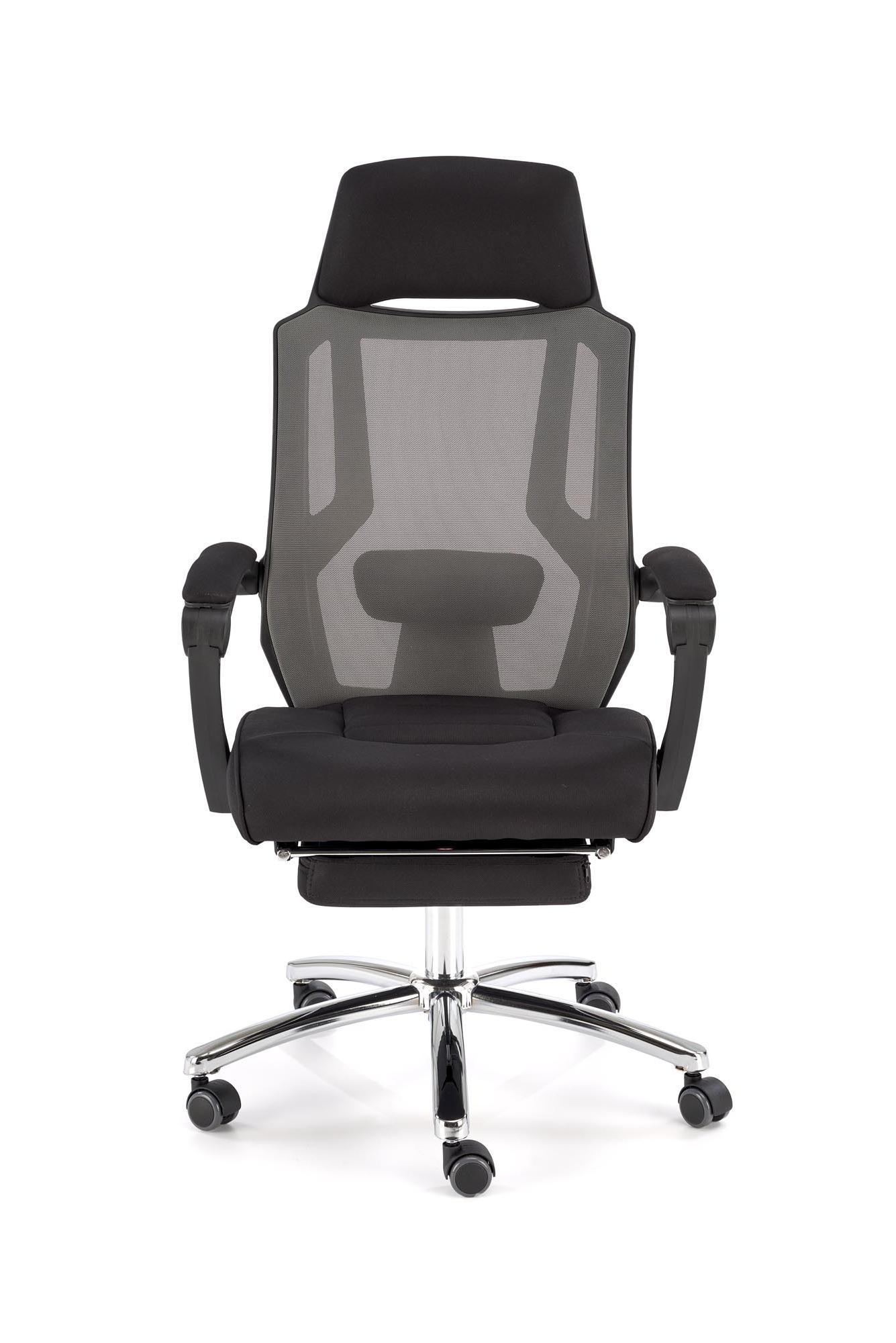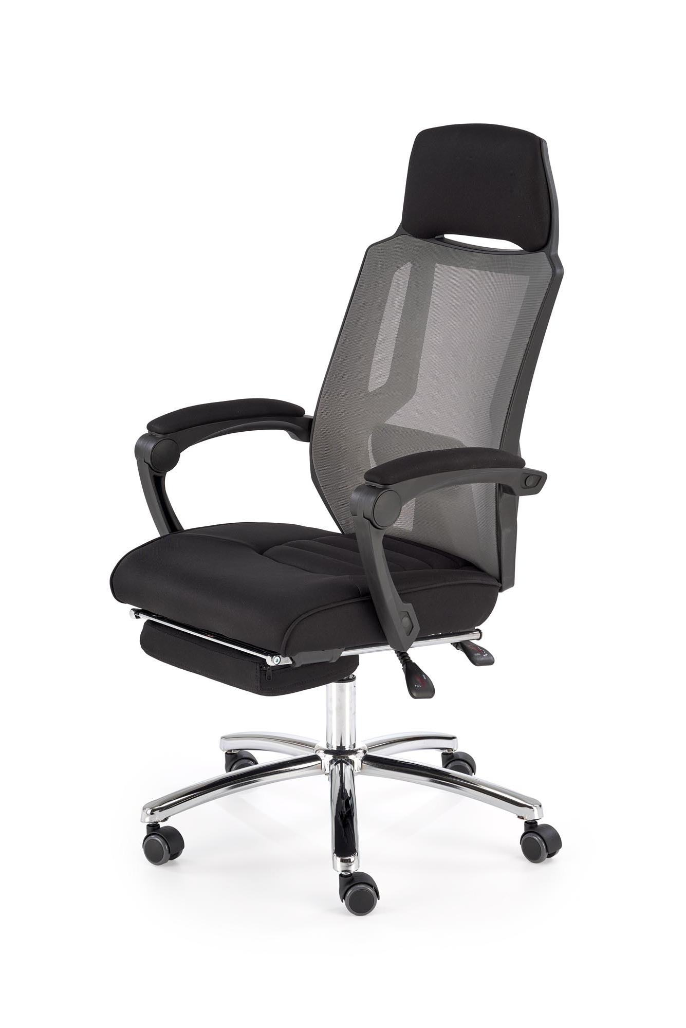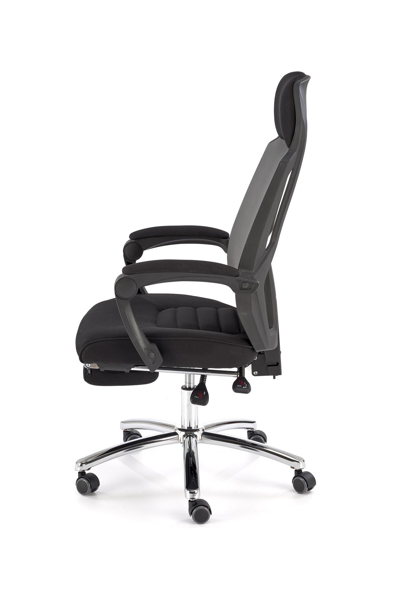 Fotel do biurka z wysuwanym podnóżkiem, na chromowanej podstawie, czarno-popielaty, tkanina membranowa, siatka