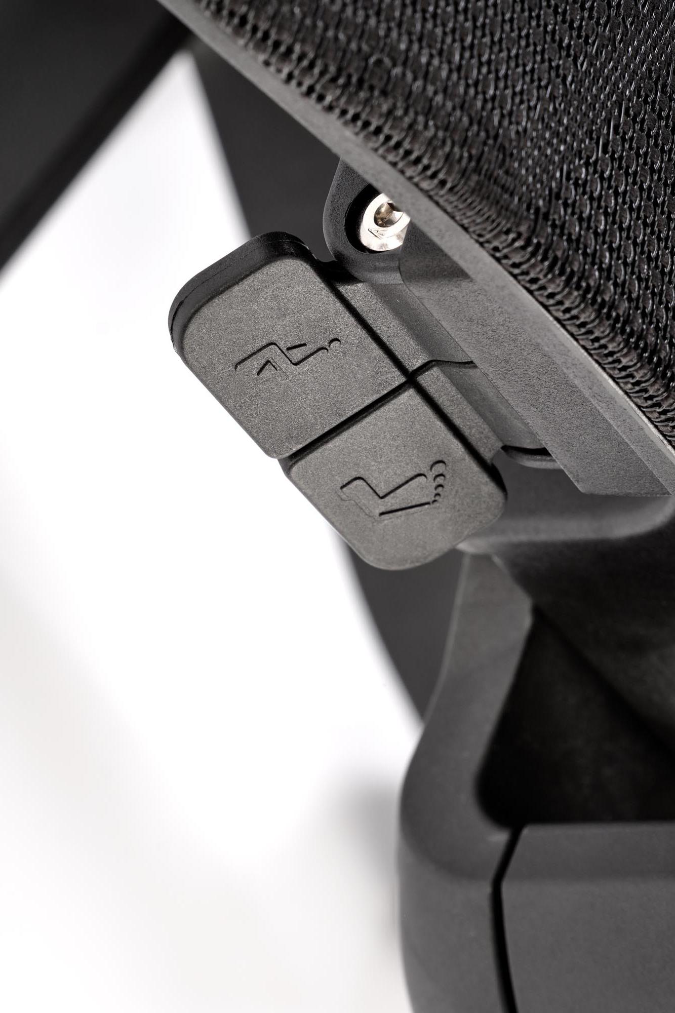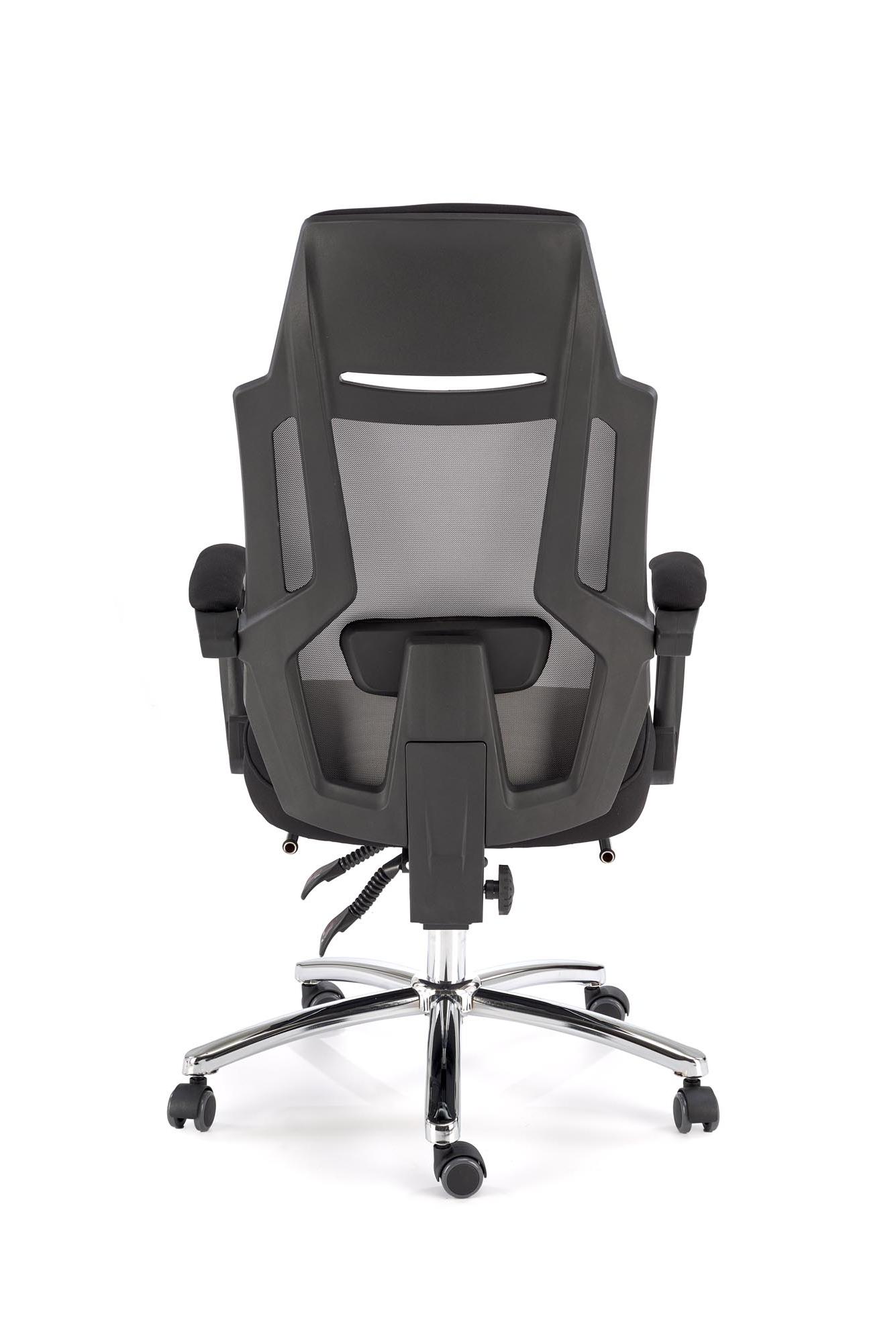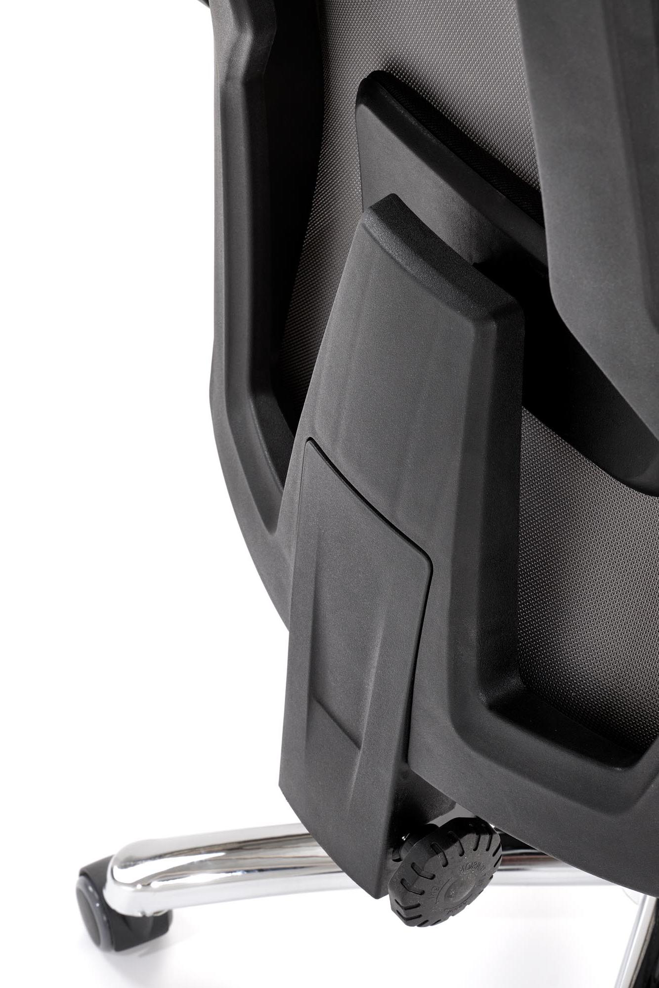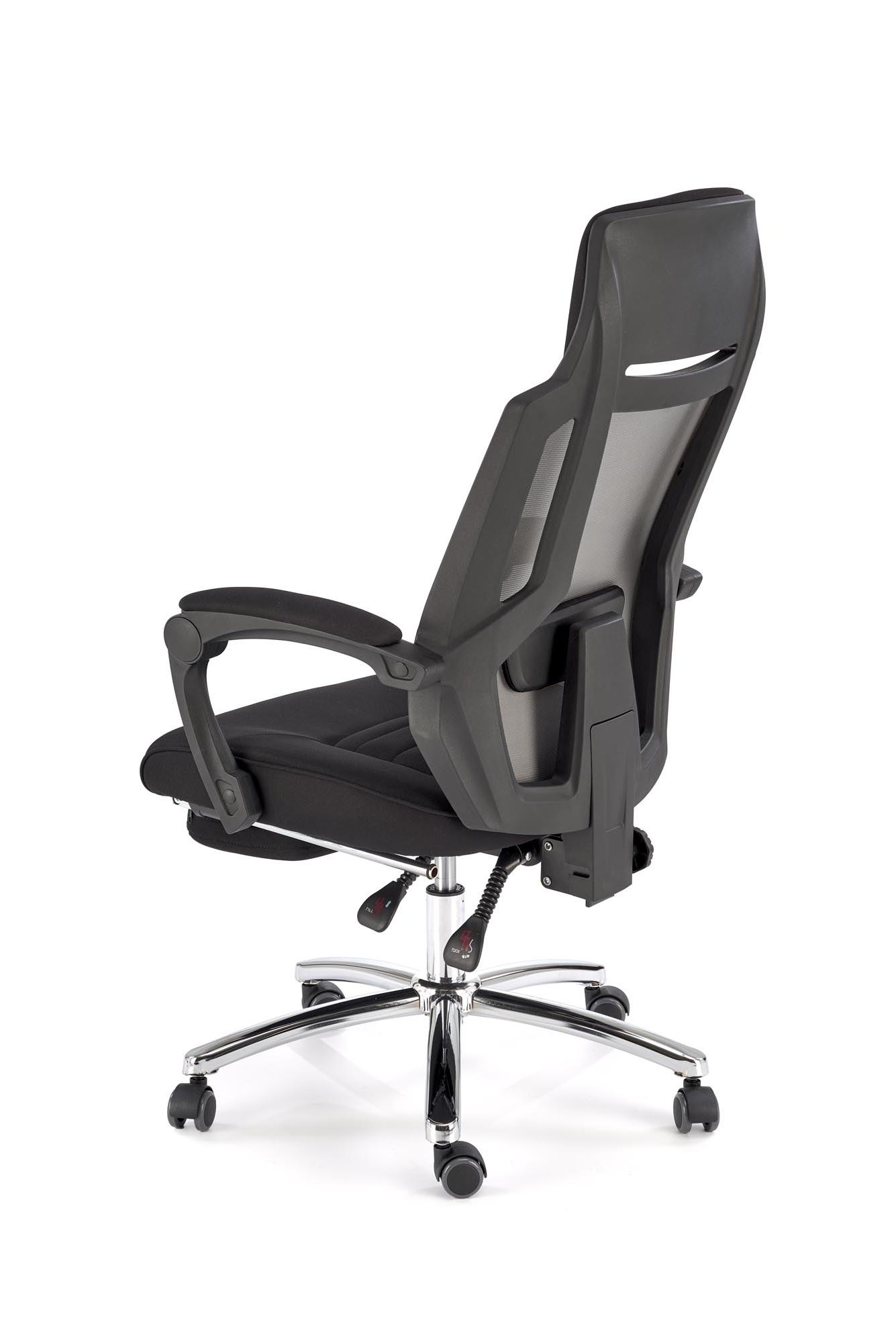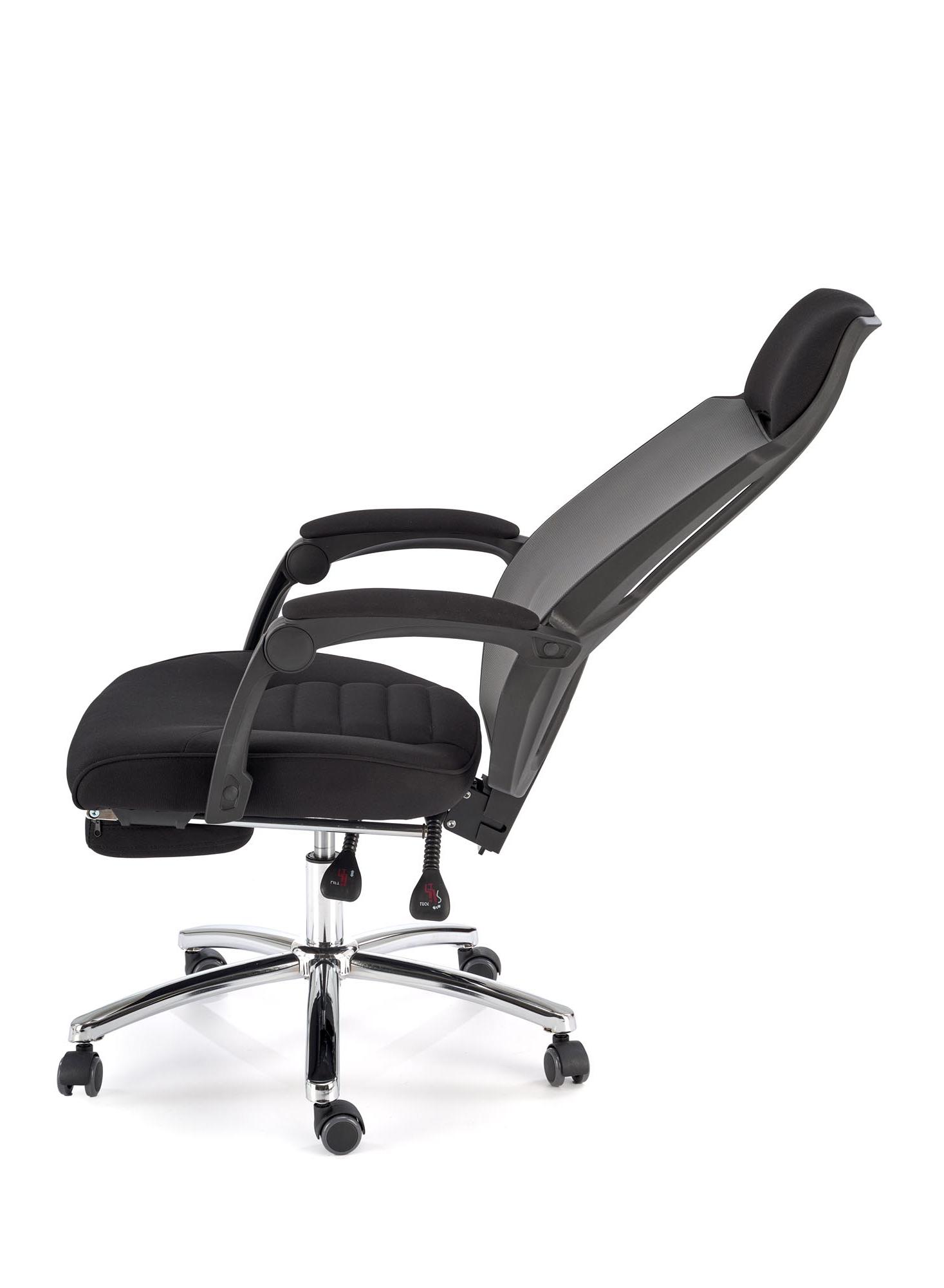 Fotel do biurka z wysuwanym podnóżkiem, na chromowanej podstawie, czarno-popielaty, tkanina membranowa, siatka