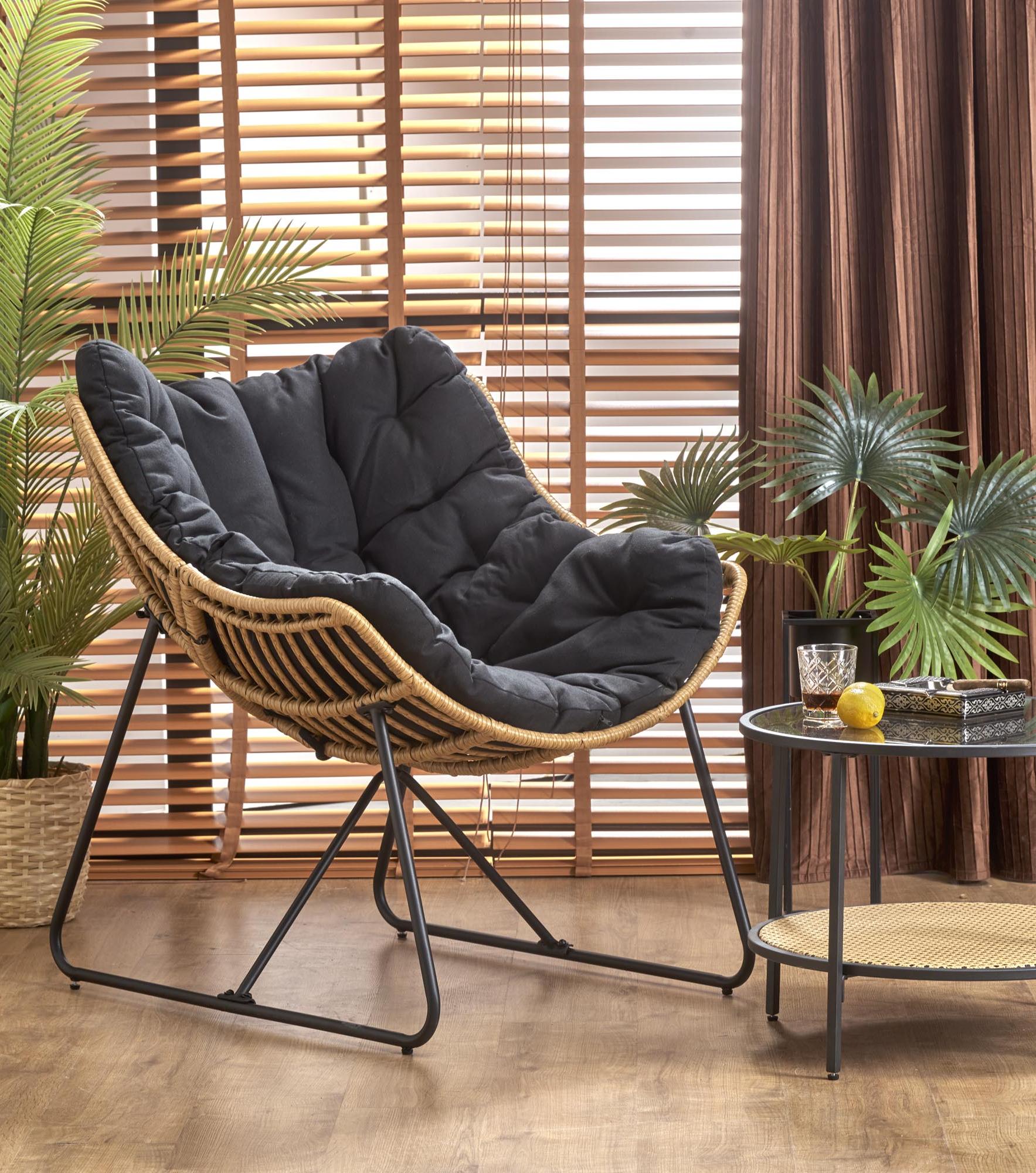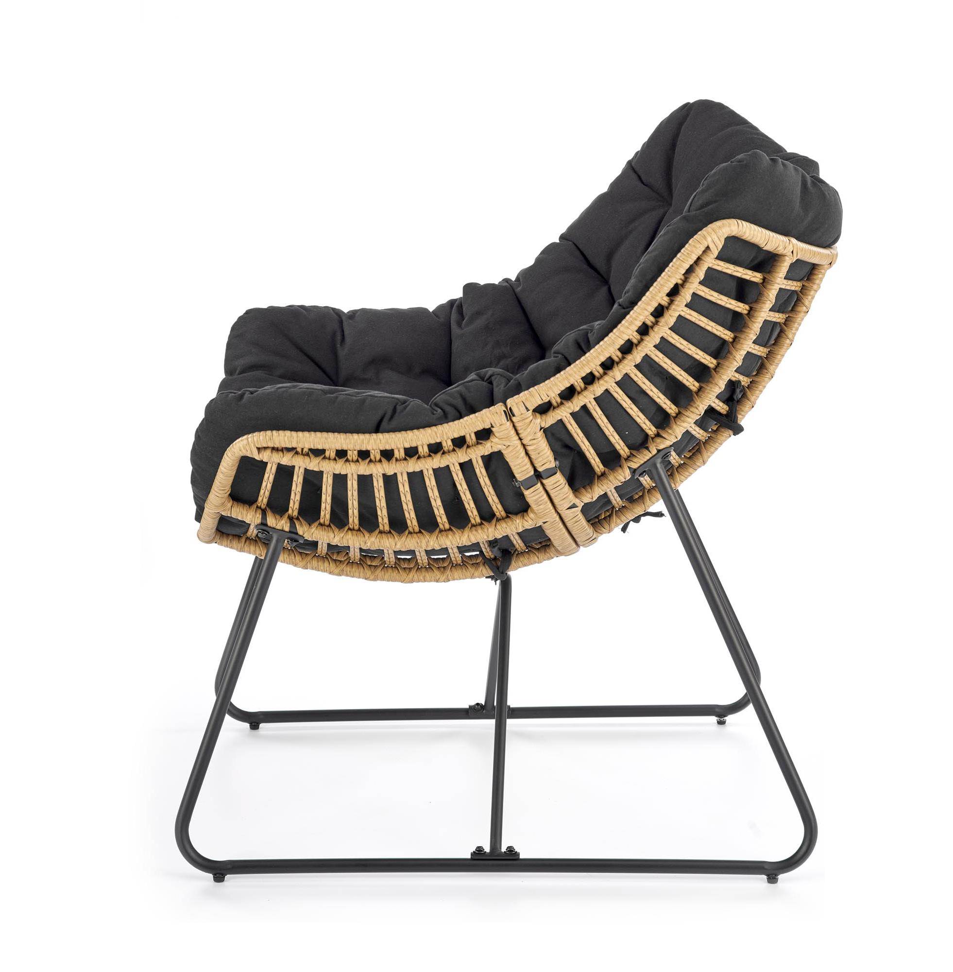 Wykonano z materiału: tkanina / rattan syntetyczny / stal malowana proszkowo, kolor czarny - naturalny