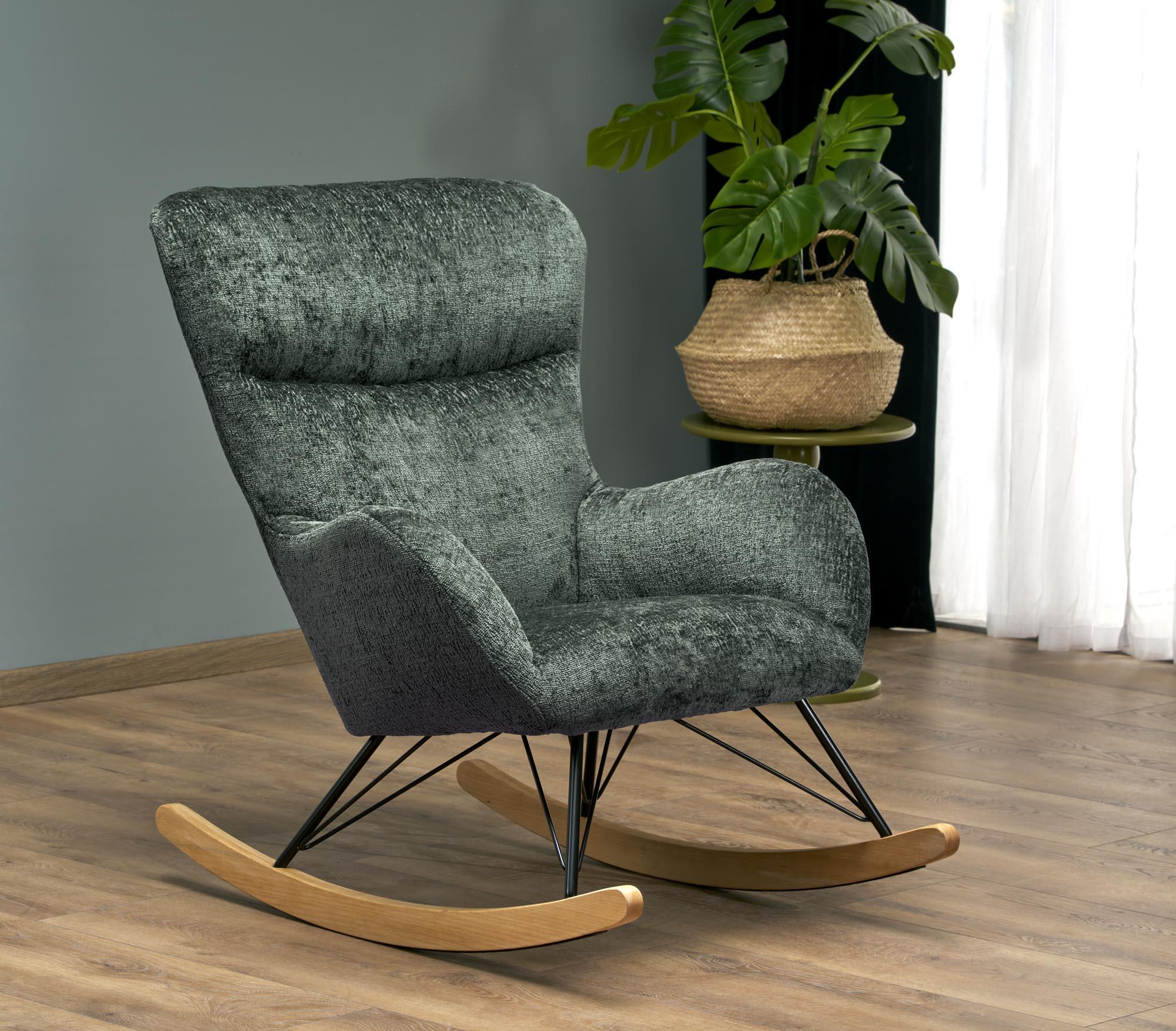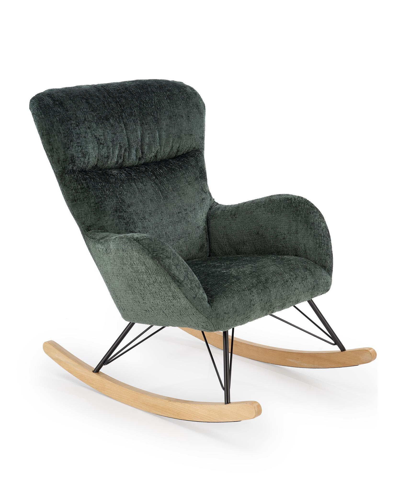 Wykonano z materiału: tkanina / stal malowana proszkowo / drewno lite, kolor zielony