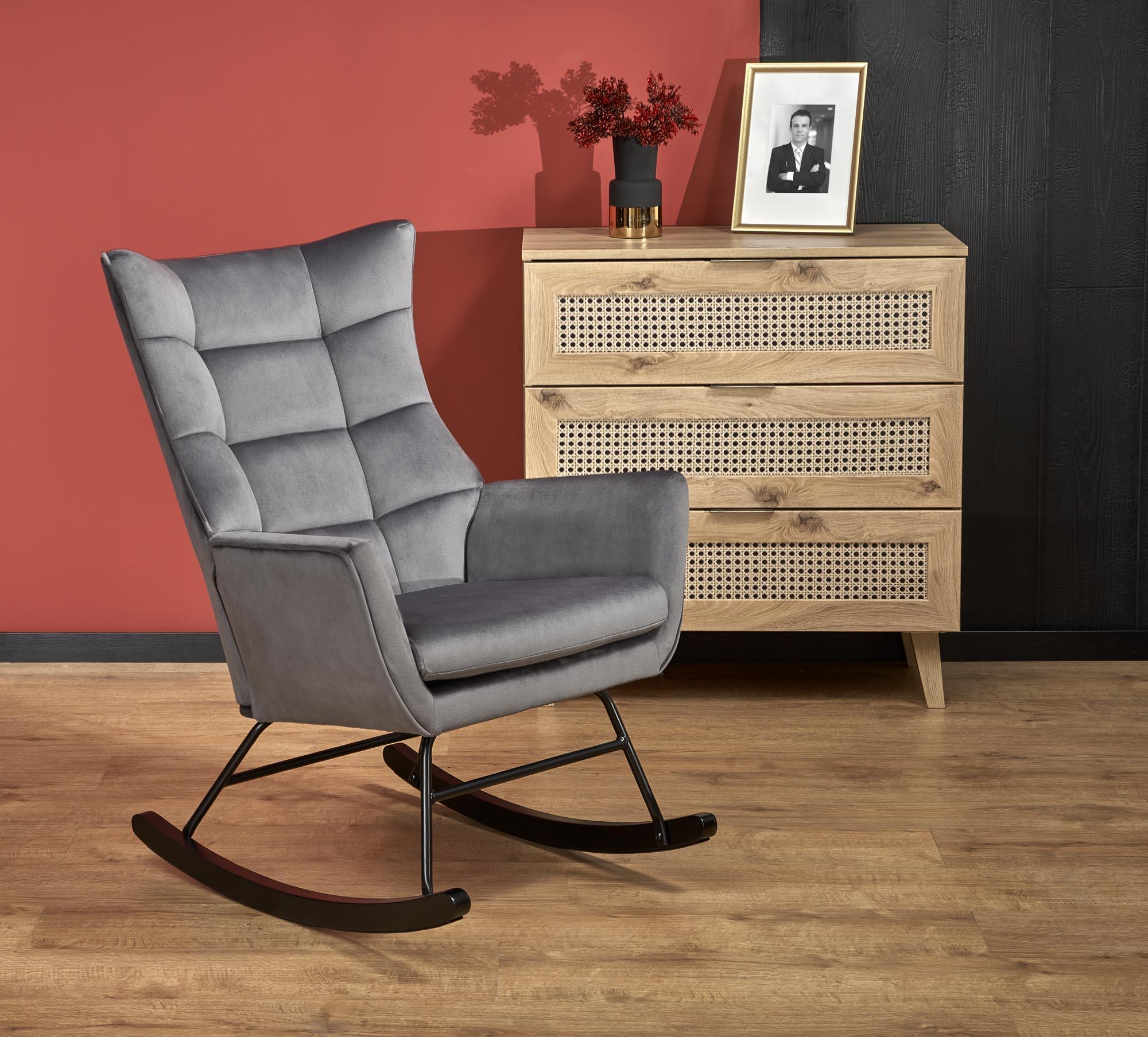 Wykonano z materiału: tkanina - velvet / stal malowana proszkowo / drewno lite, kolor popielaty HLR 21