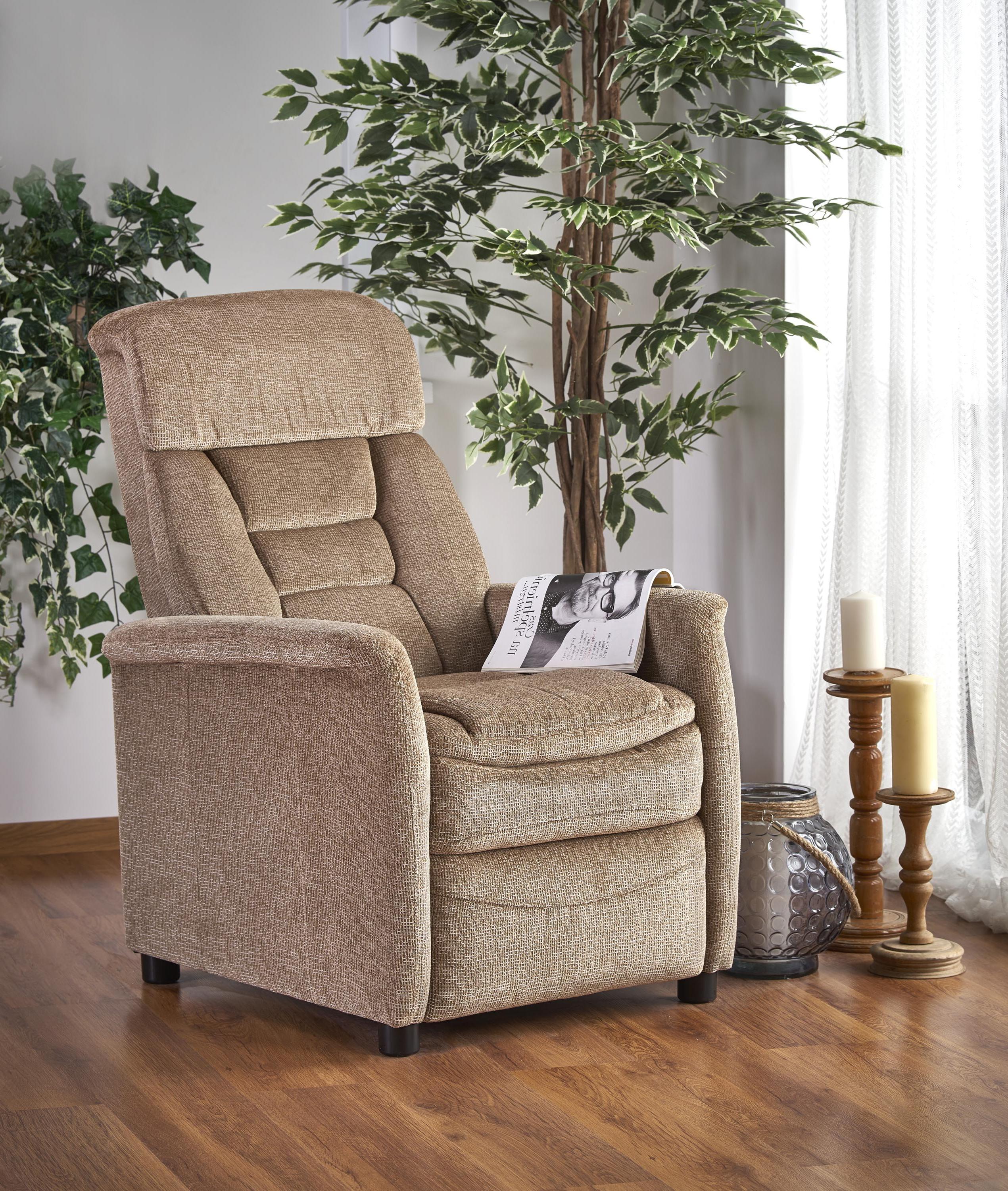 Fotel do salonu, funkcja relax, kolor beżowy, styl klasyczny, rozkładany
