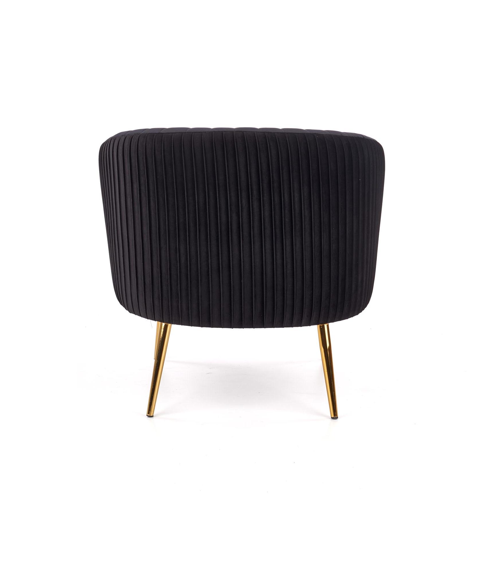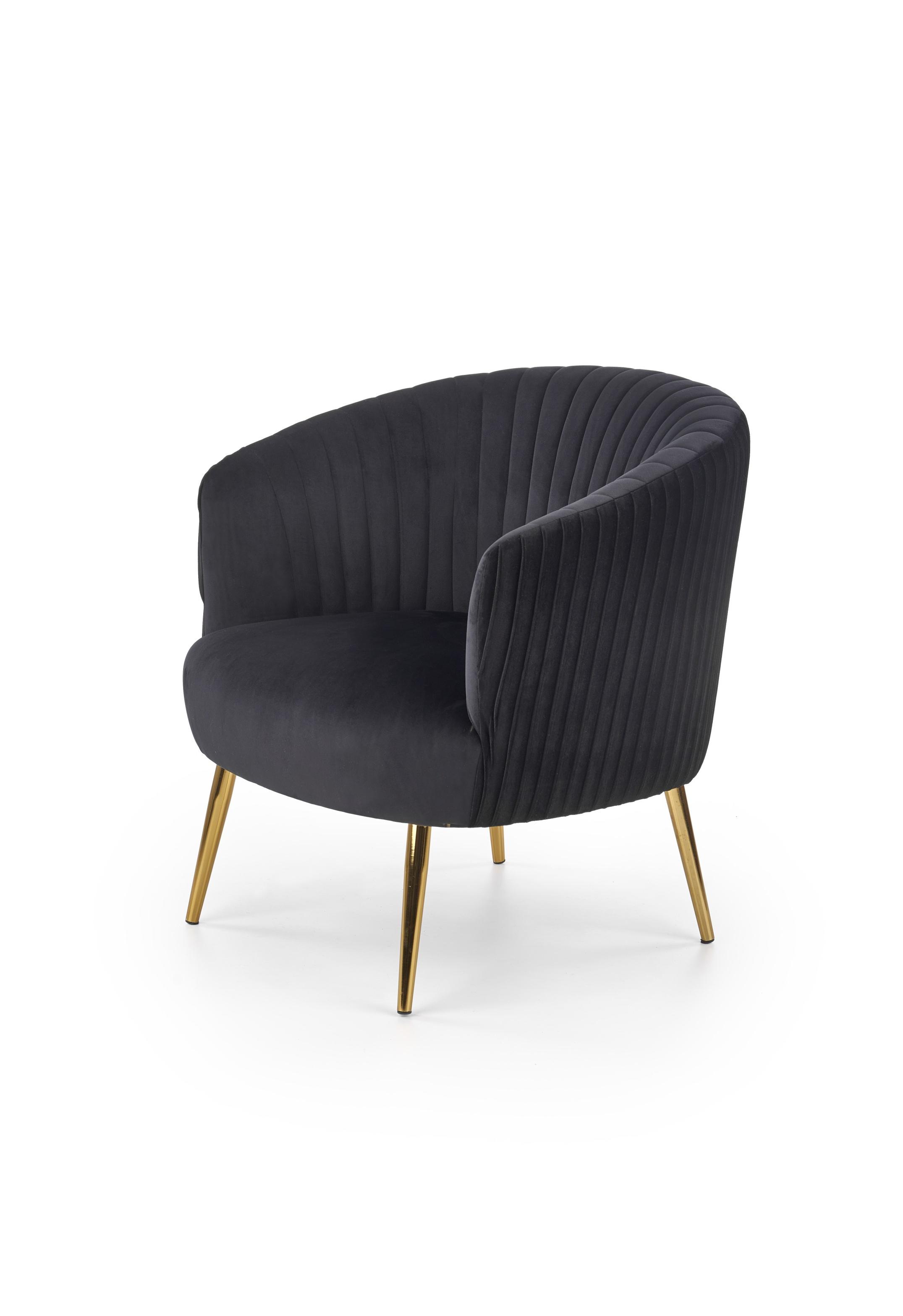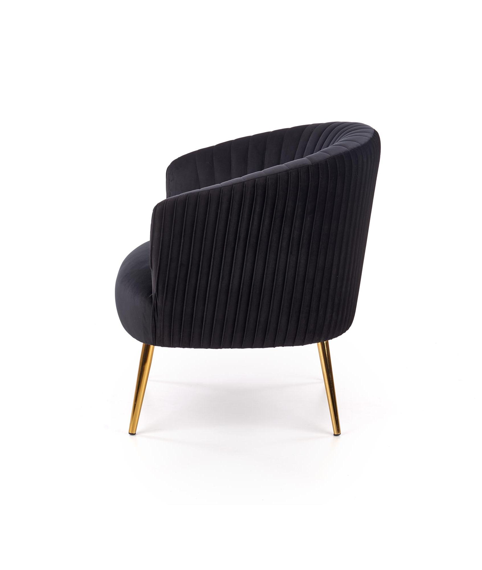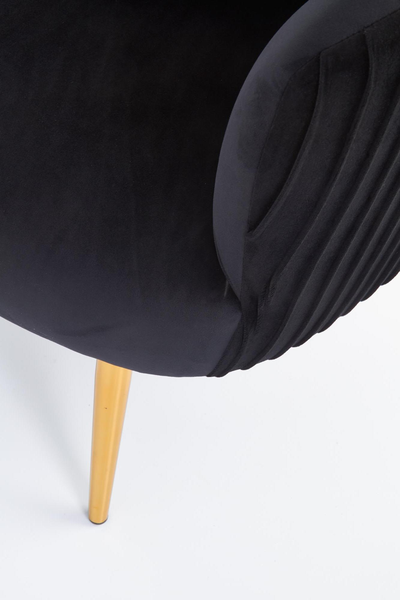 Wykonano z materiału: tkanina / stal chromowana, kolor tapicerka - czarny, nogi - złoty