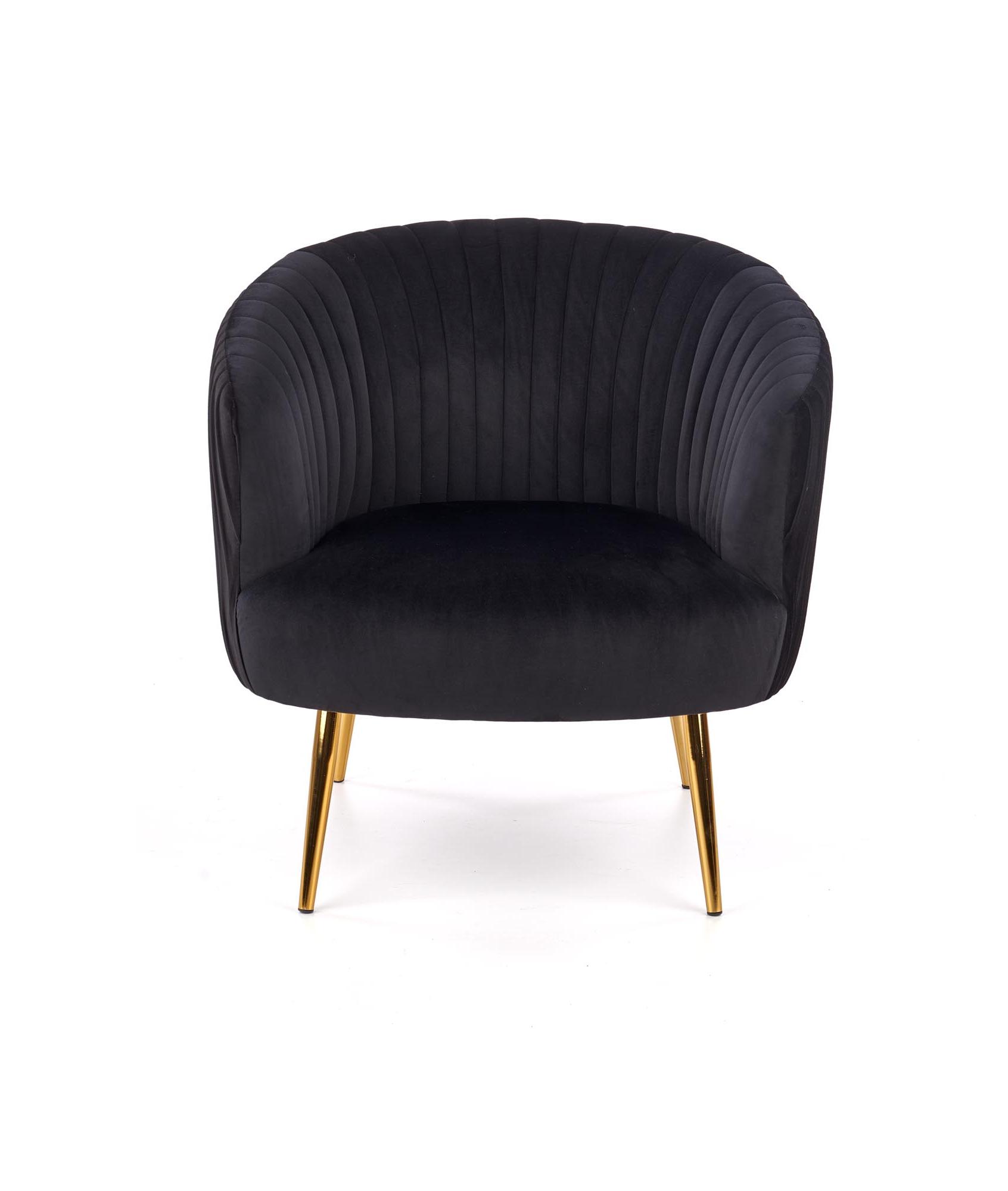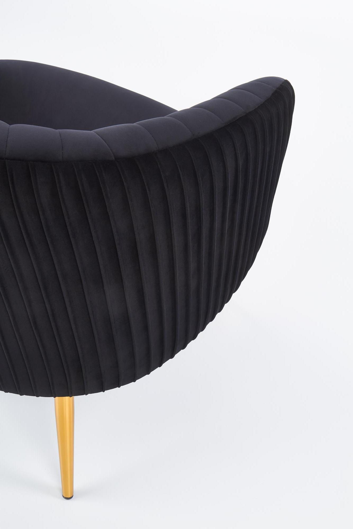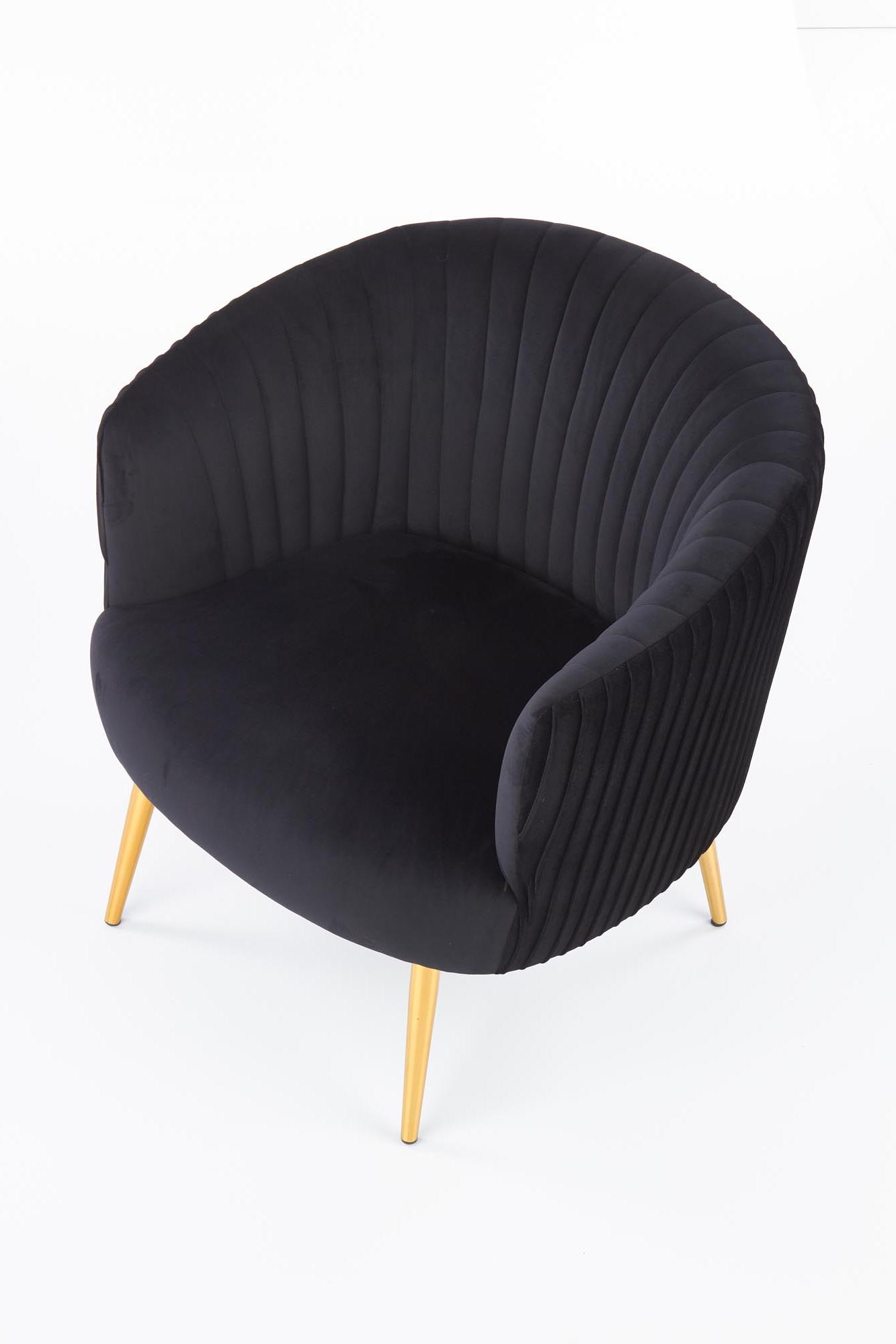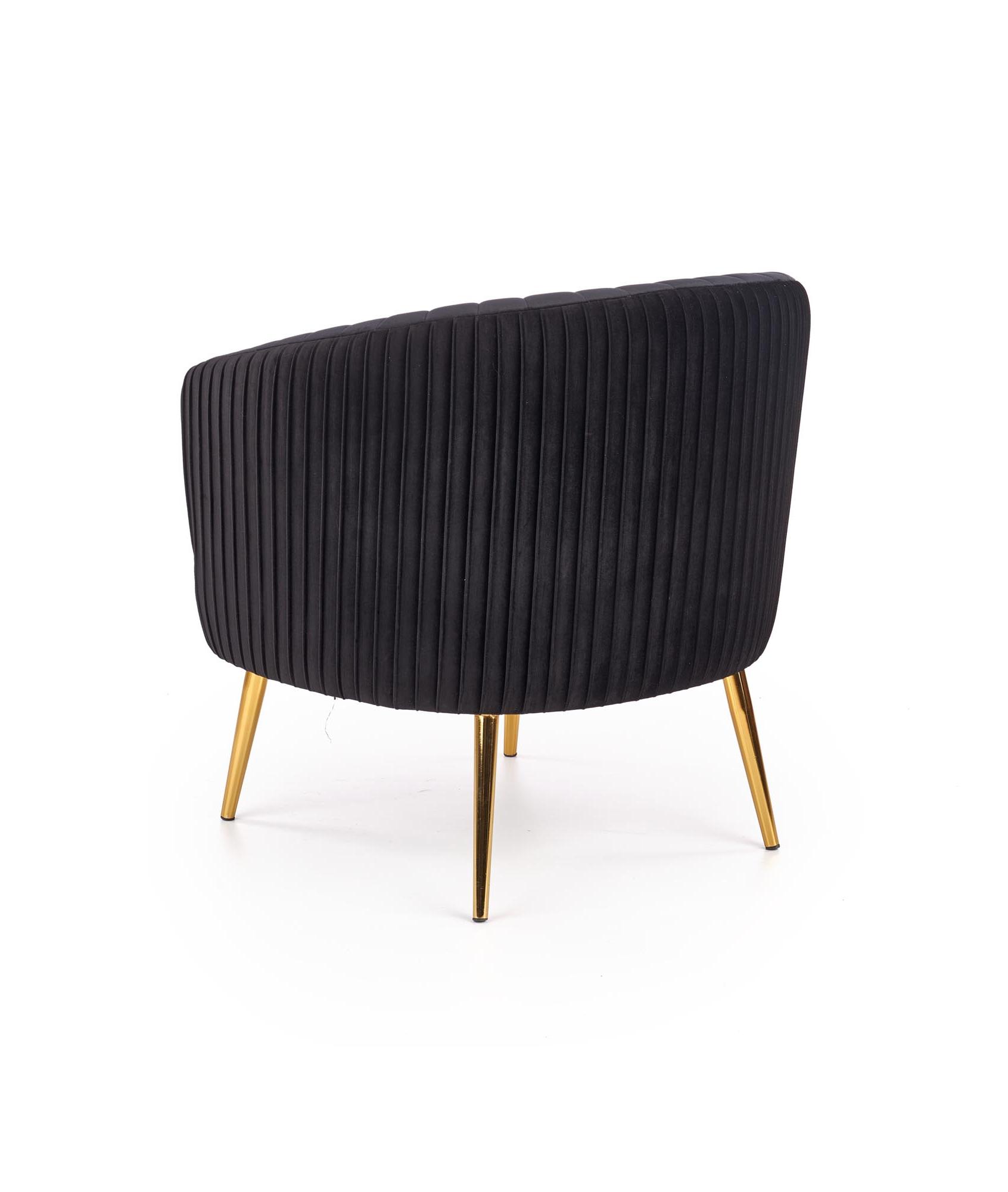 Wykonano z materiału: tkanina / stal chromowana, kolor tapicerka - czarny, nogi - złoty