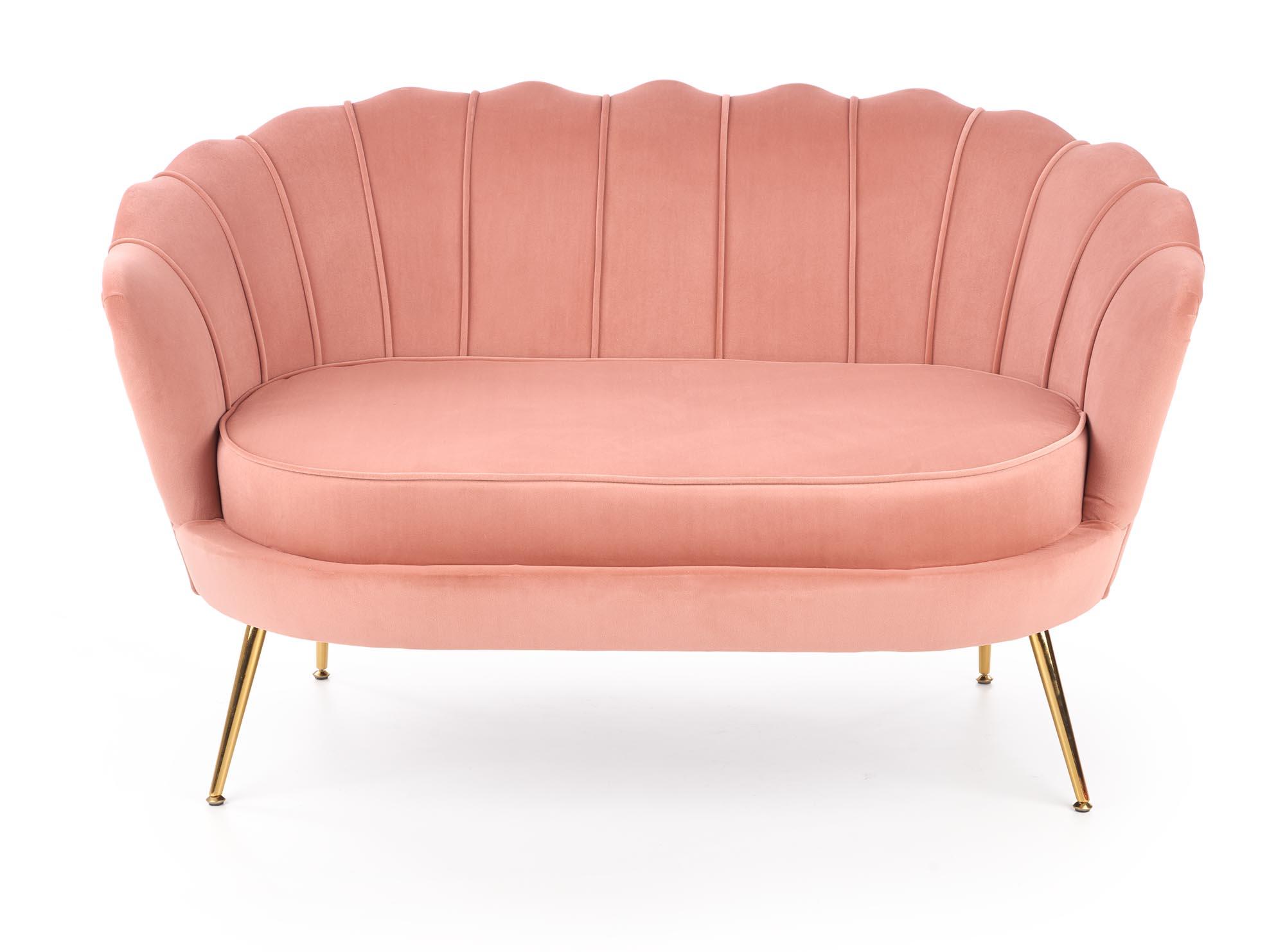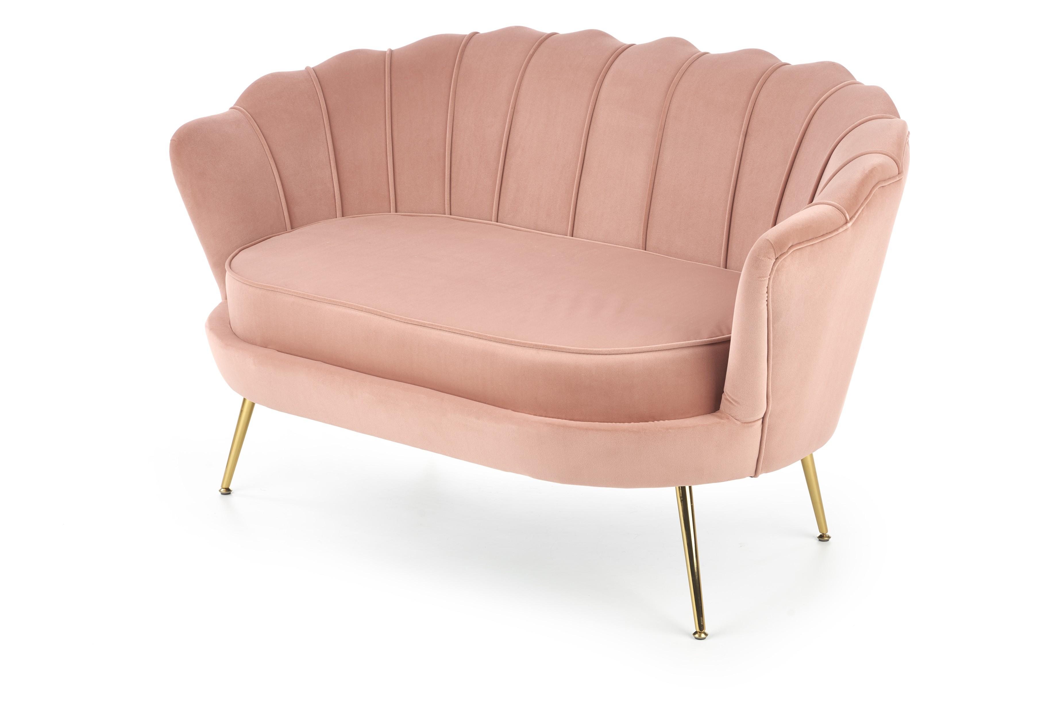 Wykonano z materiału: tkanina / stal chromowana, kolor tapicerka - jasny różowy, nogi - złoty