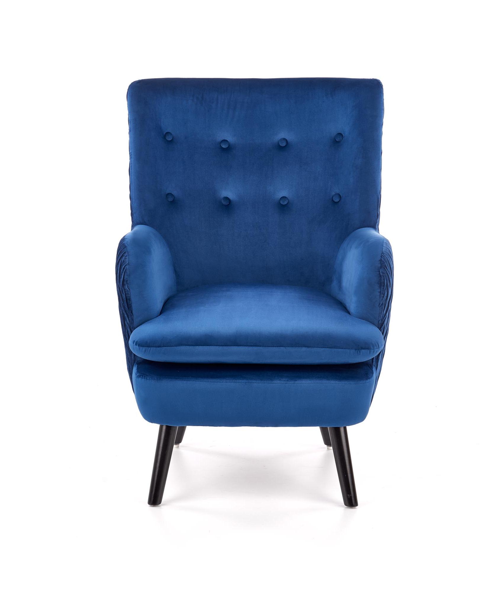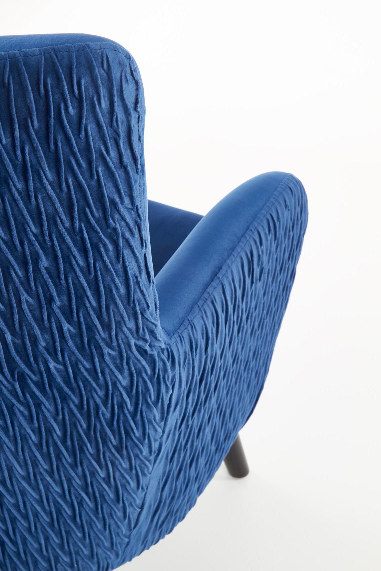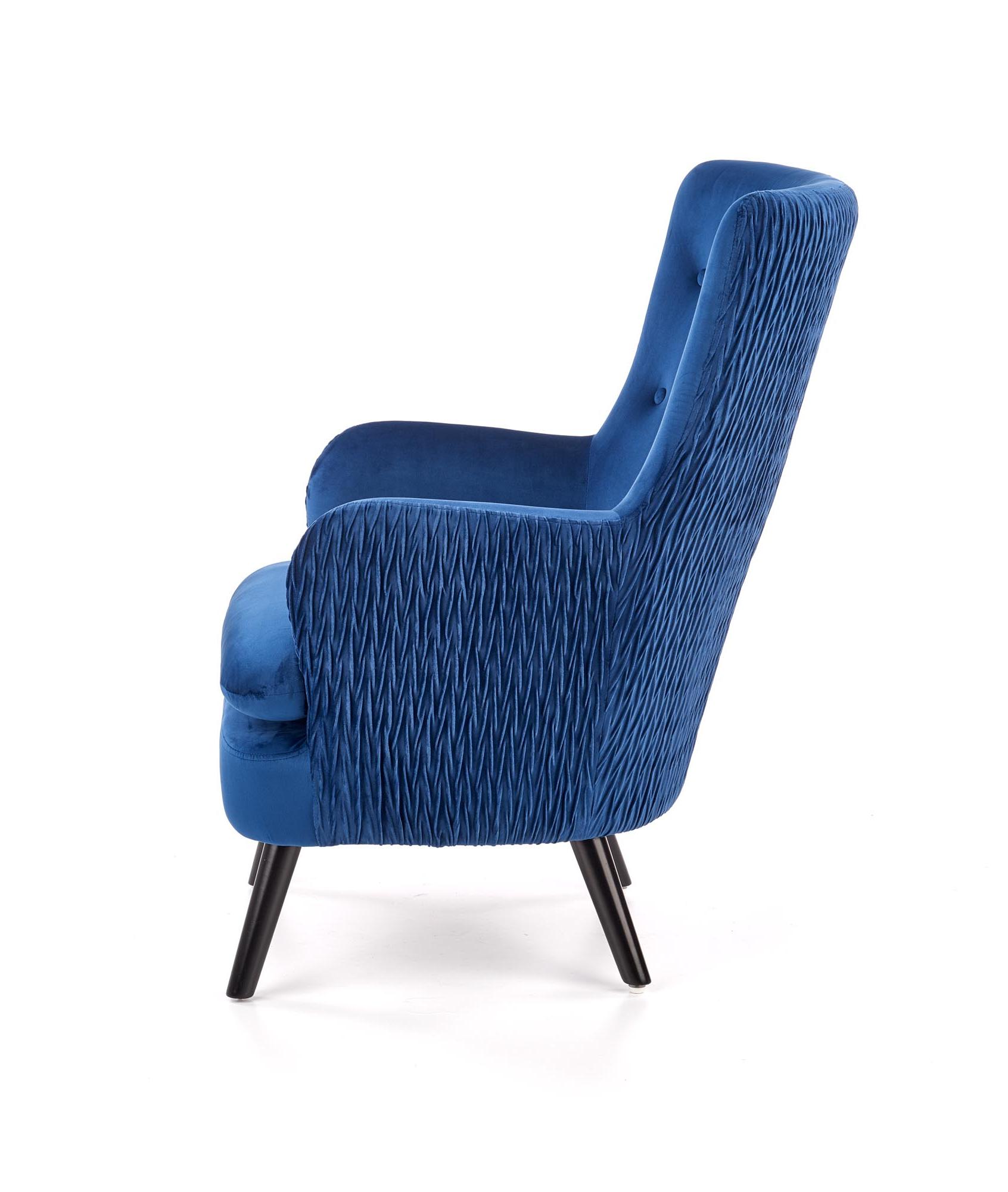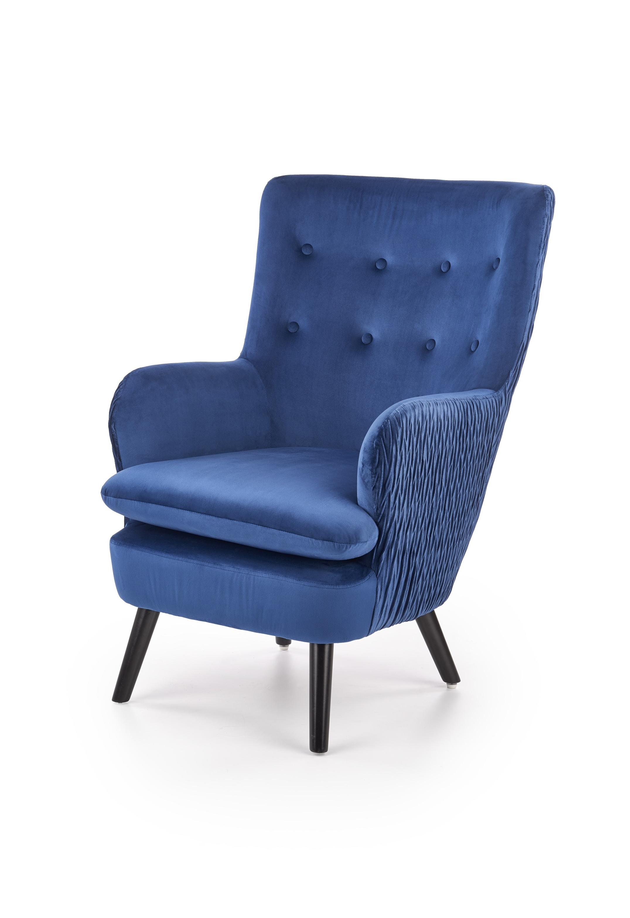 Wykonano z materiału: tkanina / drewno lite, kolor tapicerka - granatowy HLR 64, nogi - czarny
