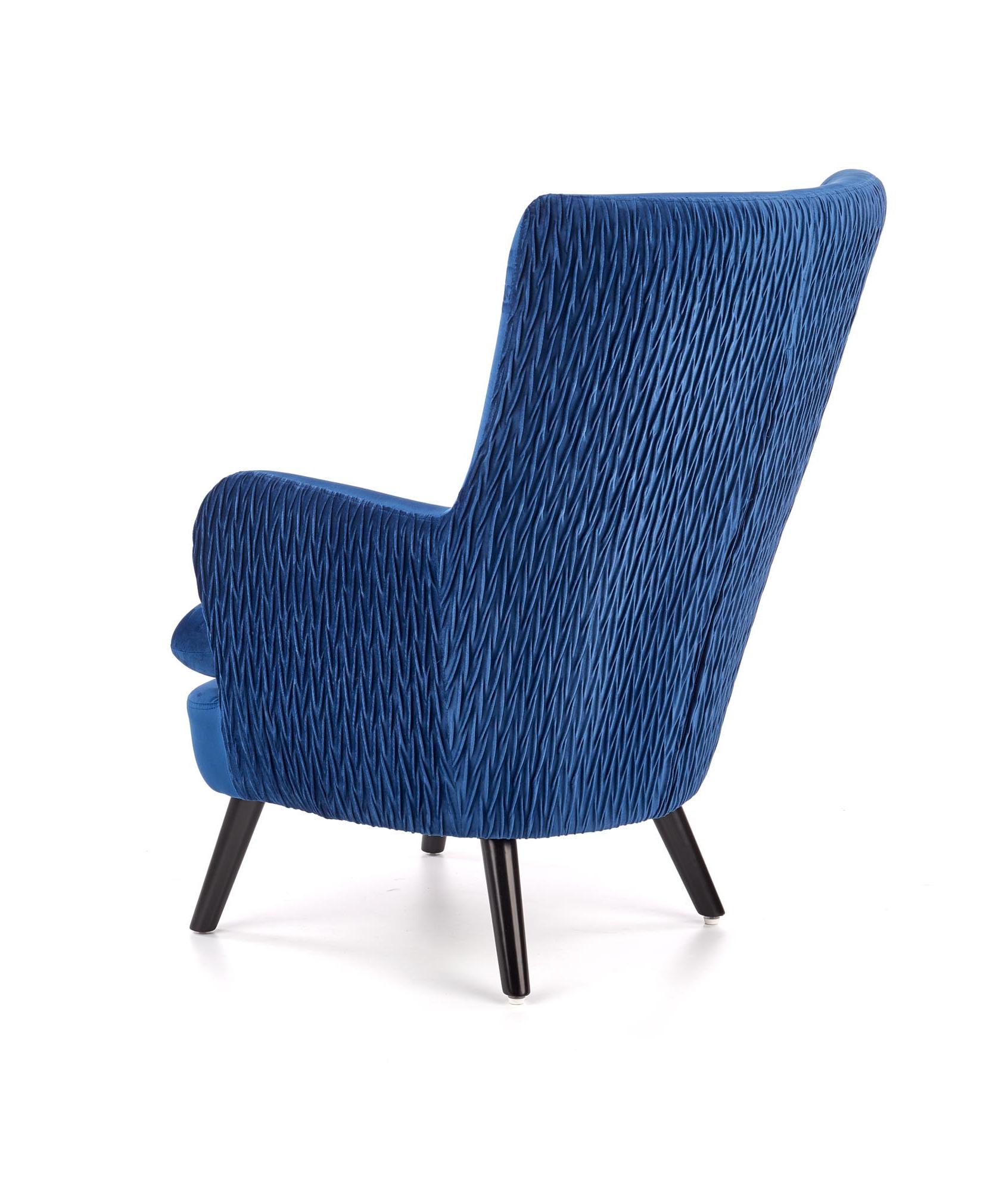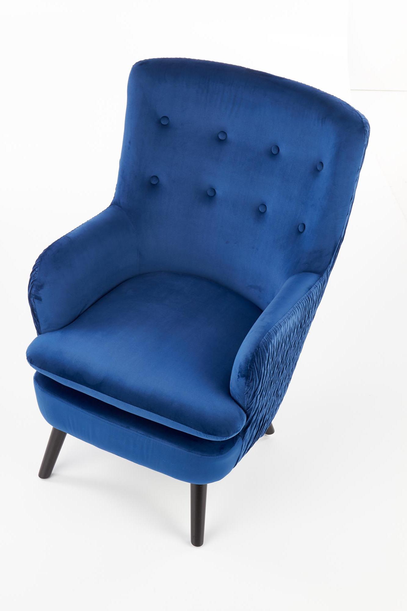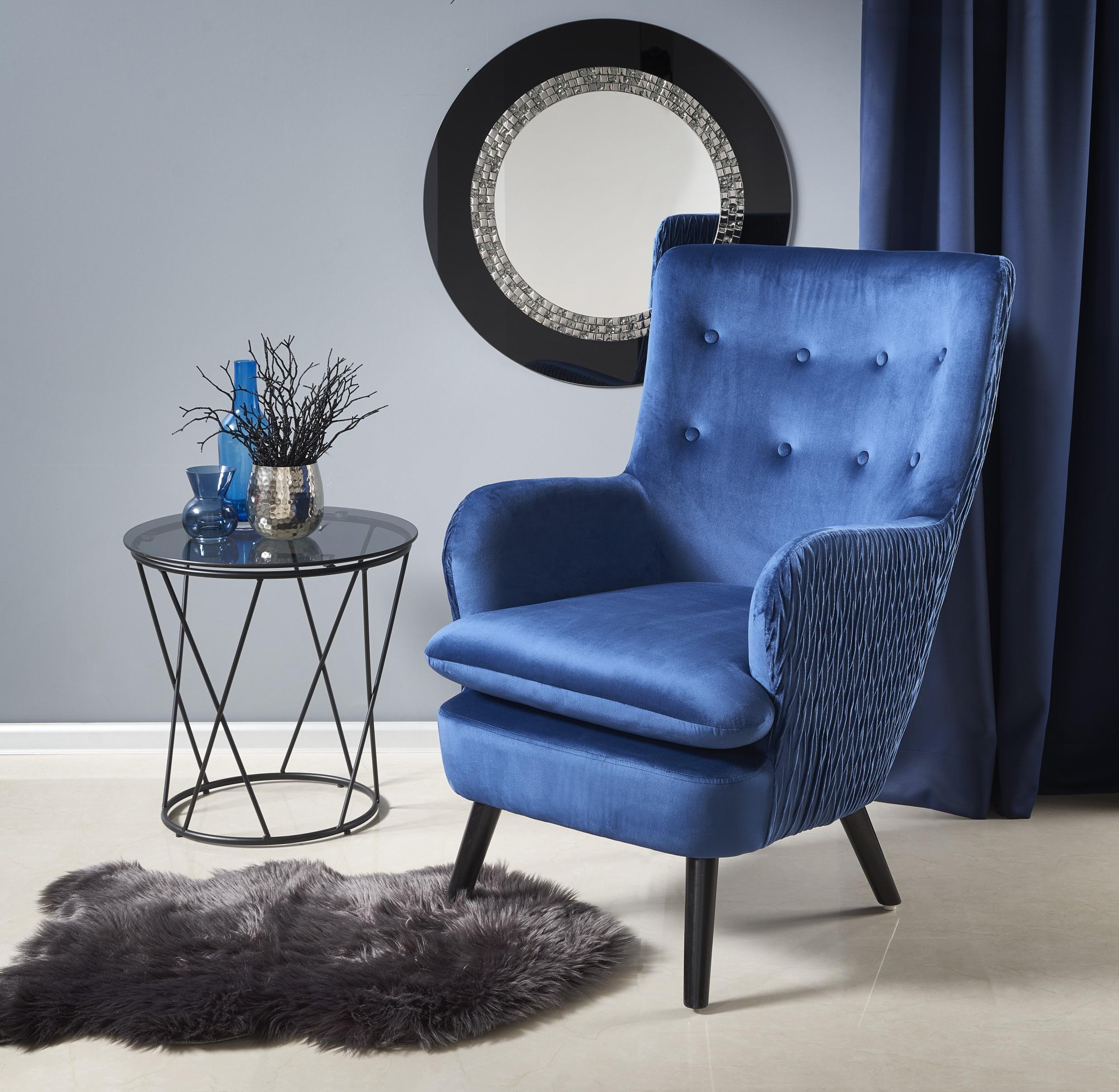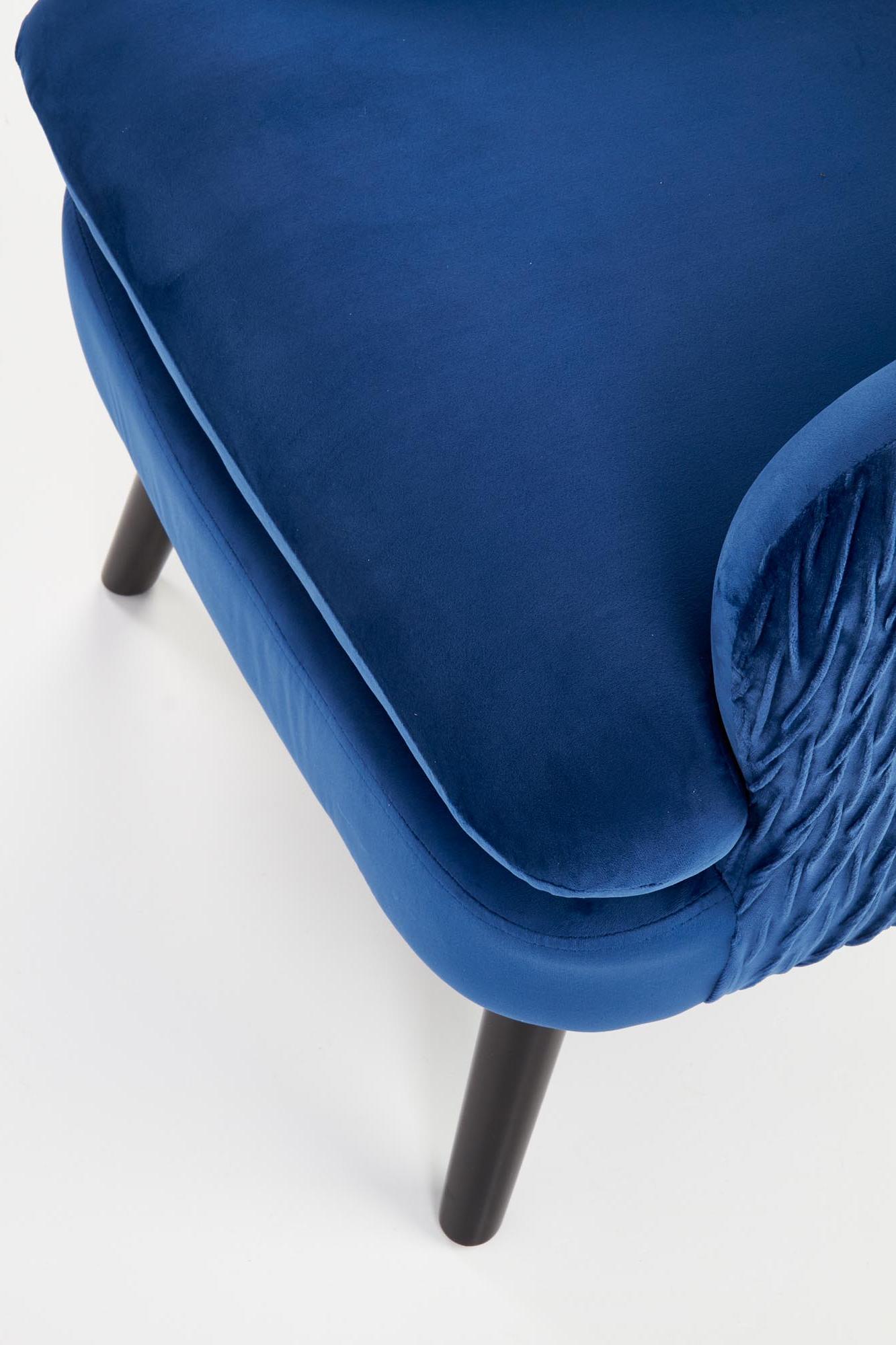 Wykonano z materiału: tkanina / drewno lite, kolor tapicerka - granatowy HLR 64, nogi - czarny