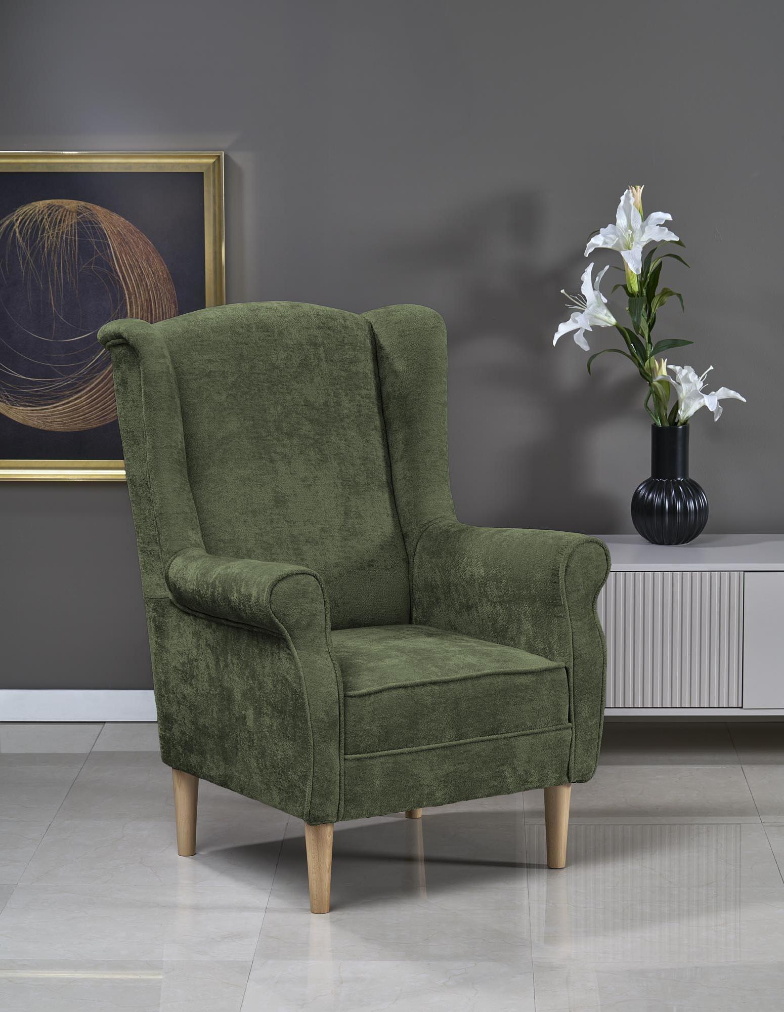Wykonano z materiału: tkanina / drewno lite, kolor oliwkowy