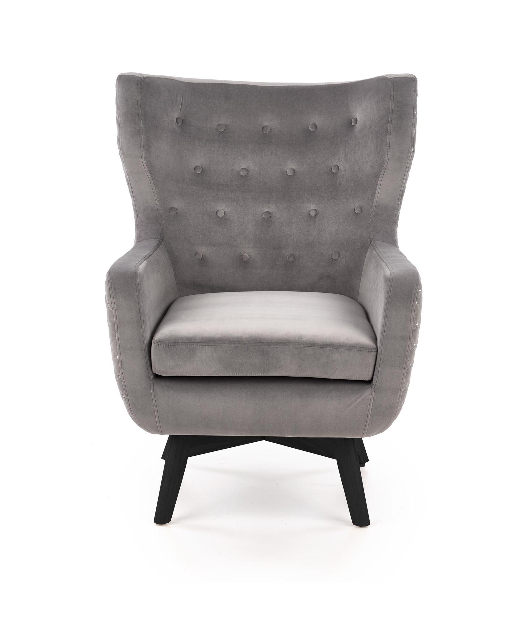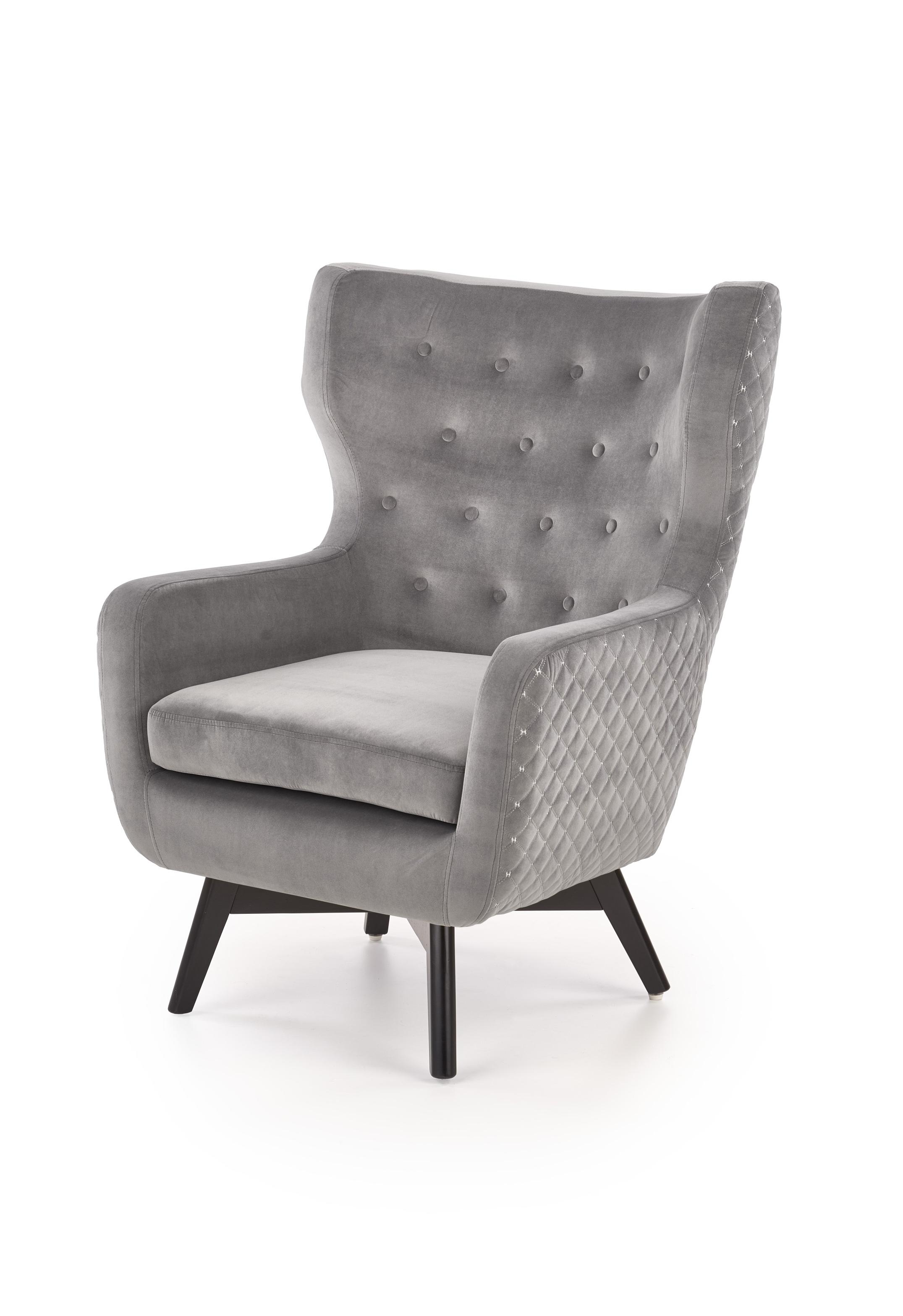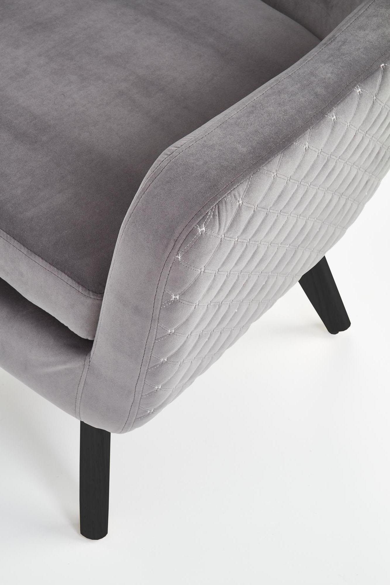 Wykonano z materiału: tkanina / drewno lite, kolor tapicerka - popielaty HLR 21, nogi - czarny