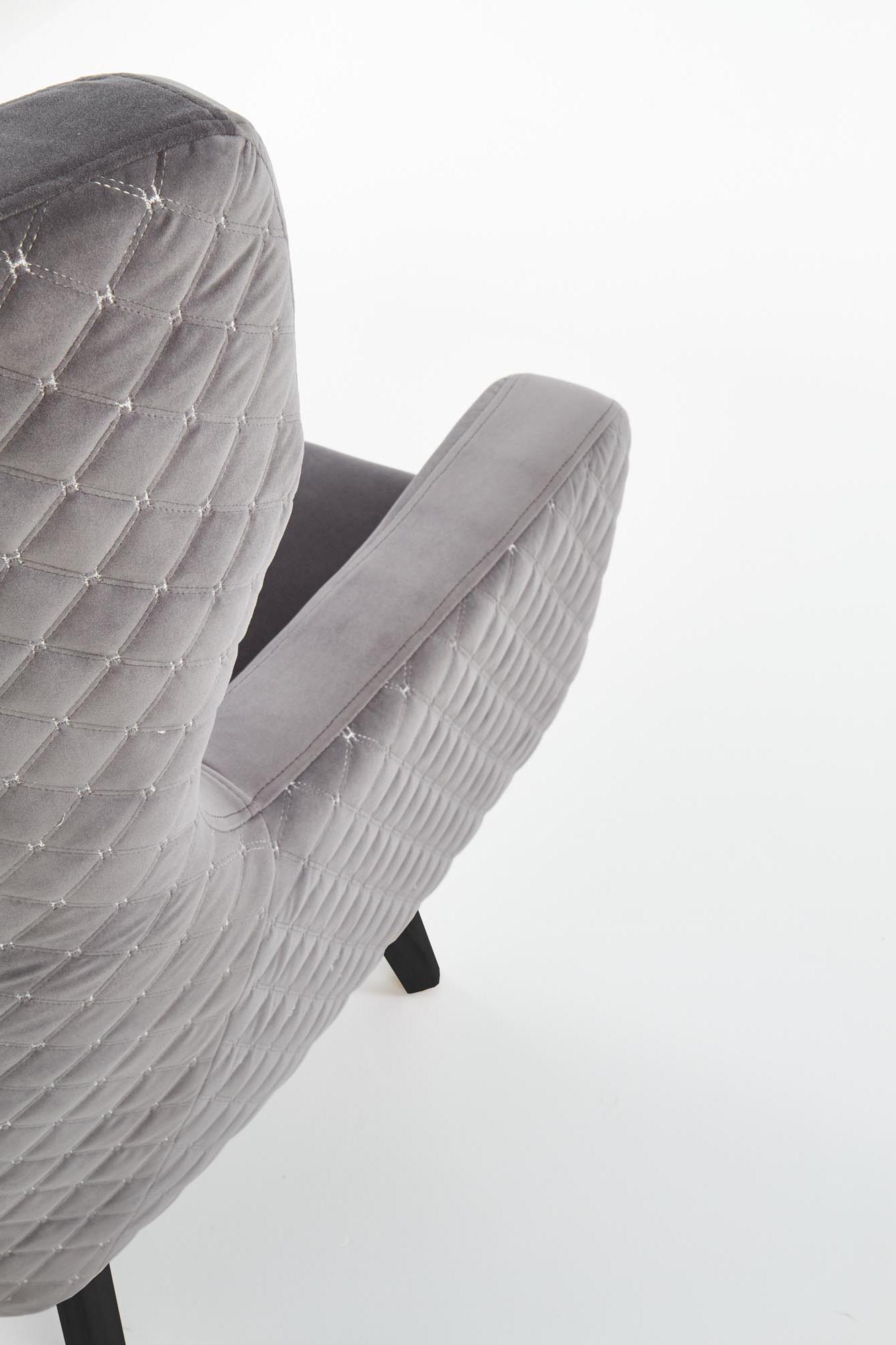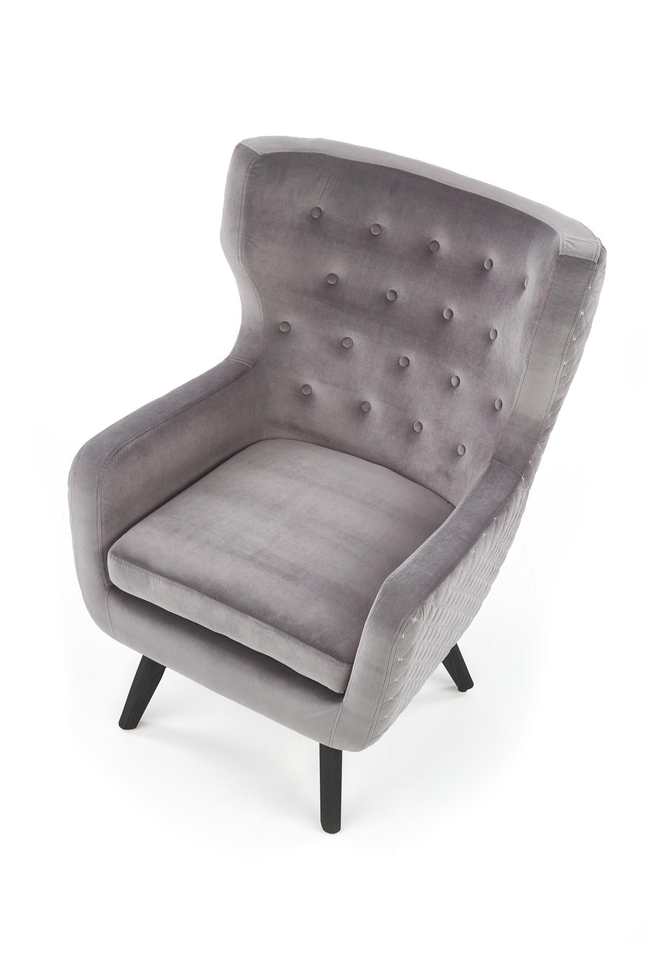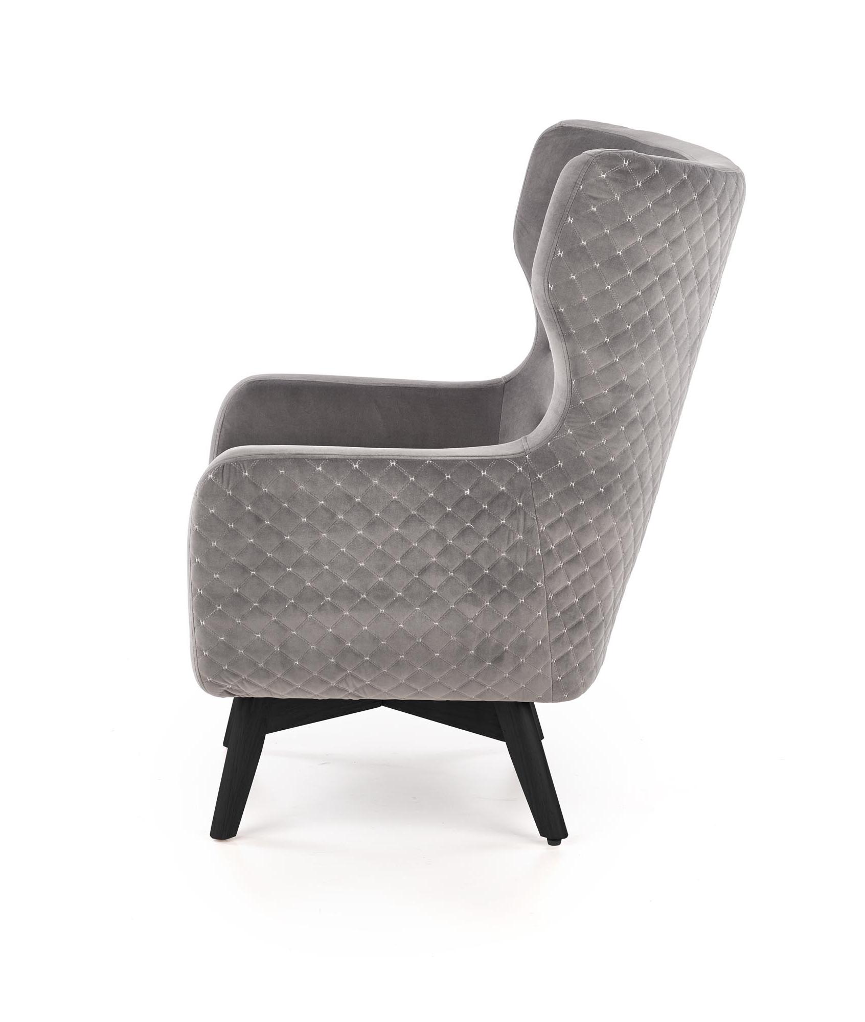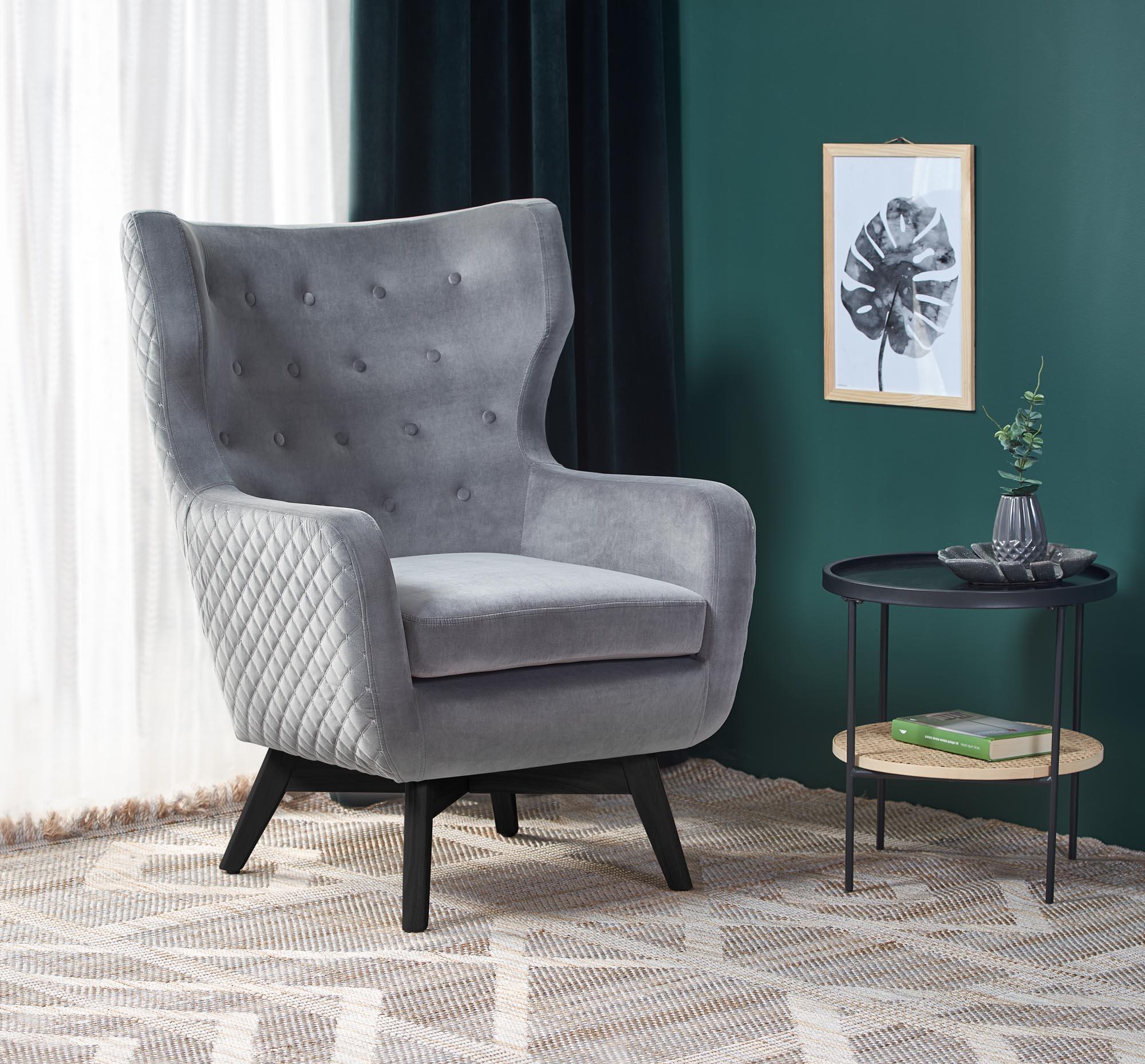 Wykonano z materiału: tkanina / drewno lite, kolor tapicerka - popielaty HLR 21, nogi - czarny