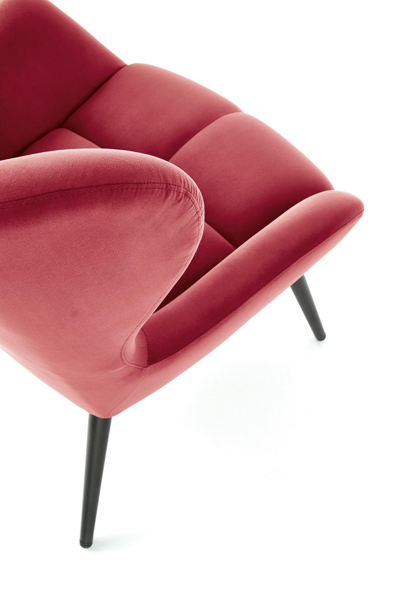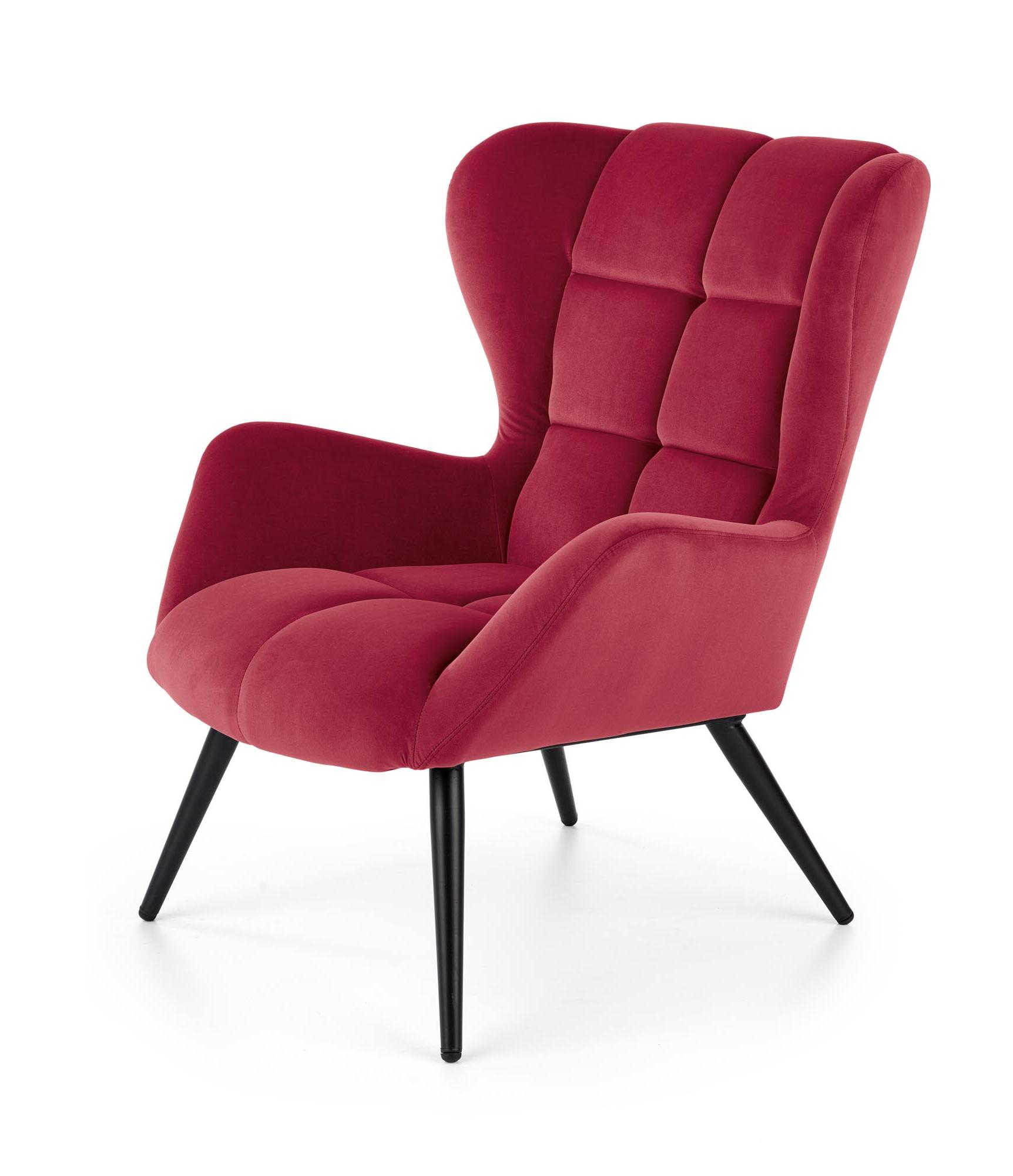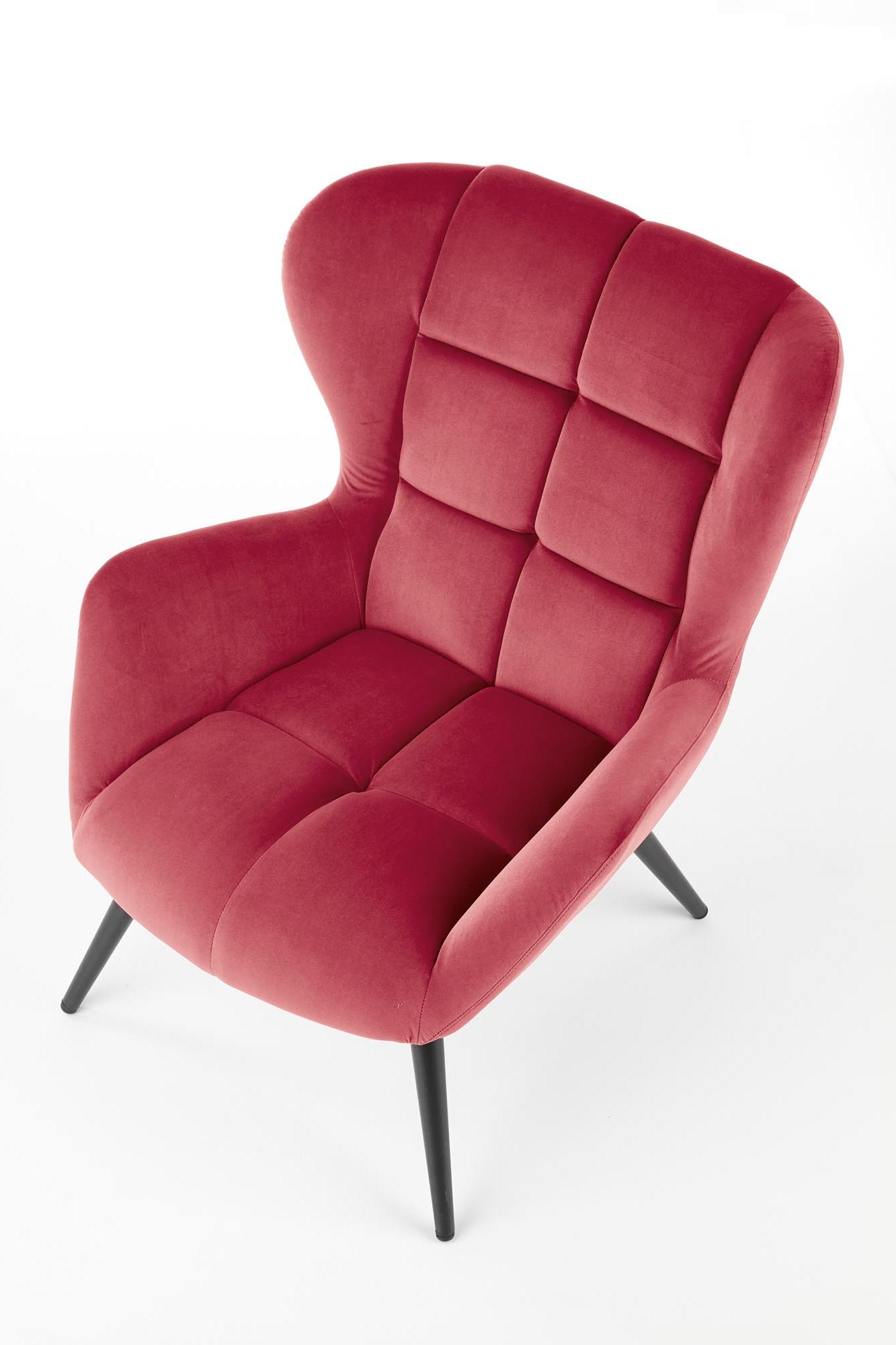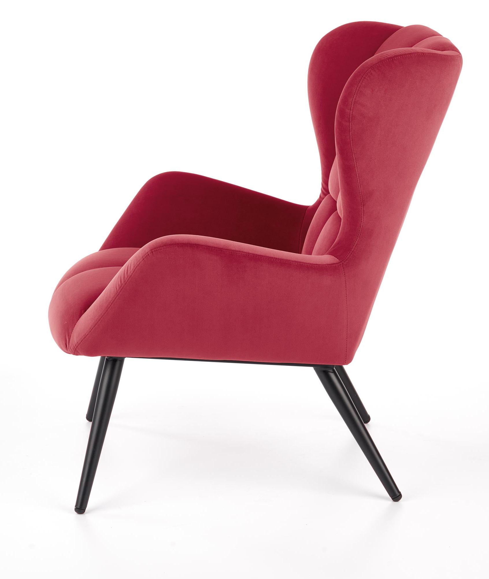 Wykonano z materiału: tkanina / stal malowana proszkowo, kolor tapicerka - bordowy - BLUVEL 59, nogi - czarny