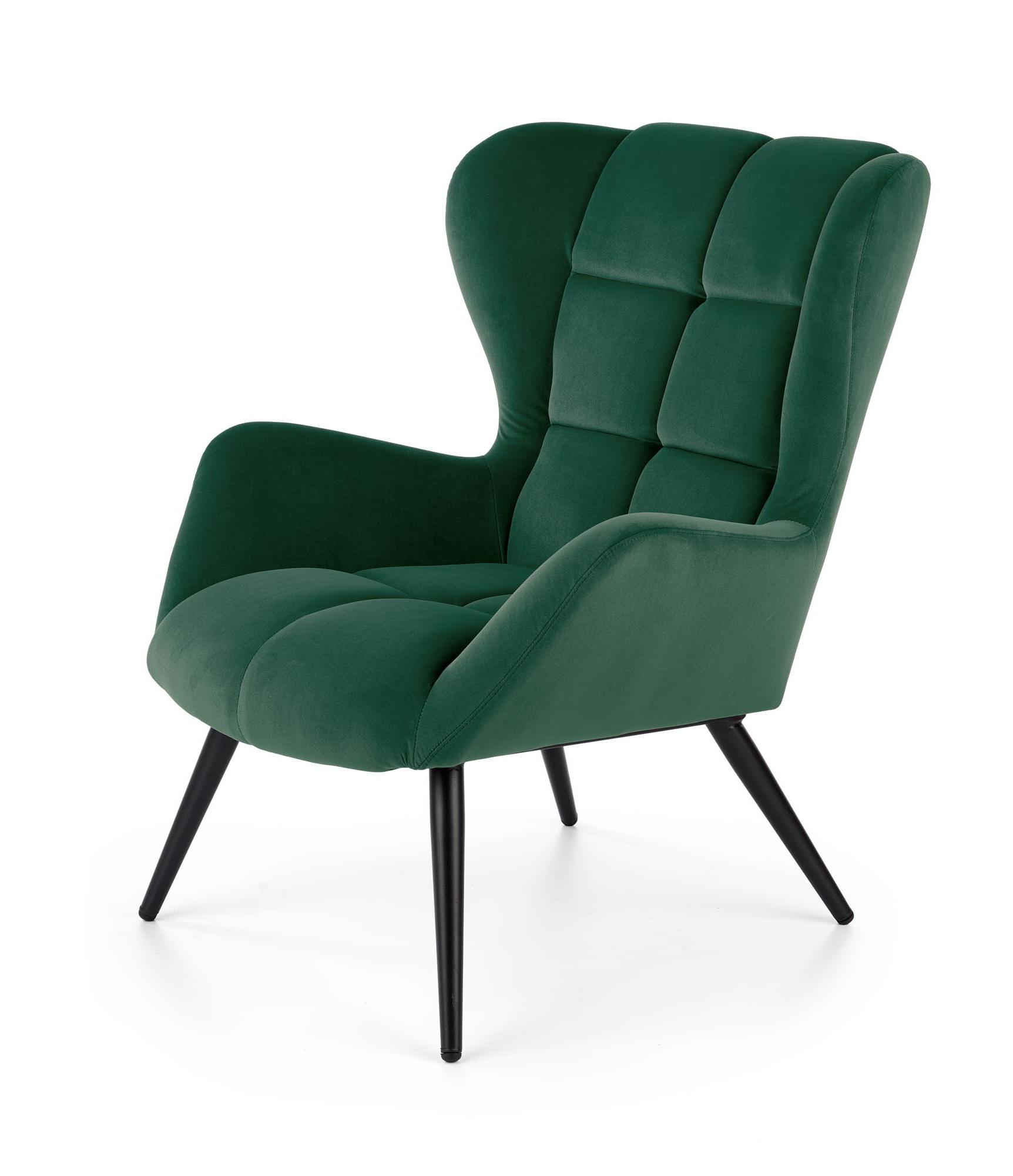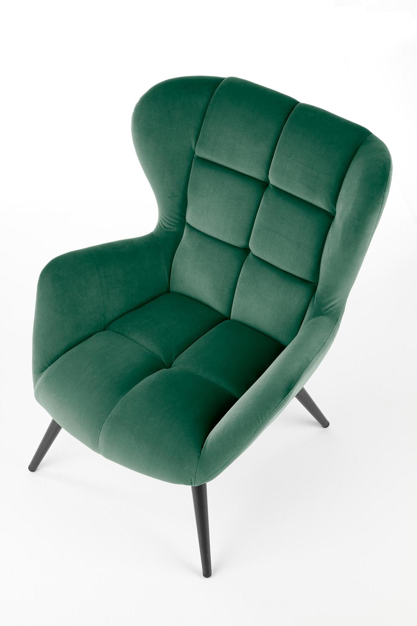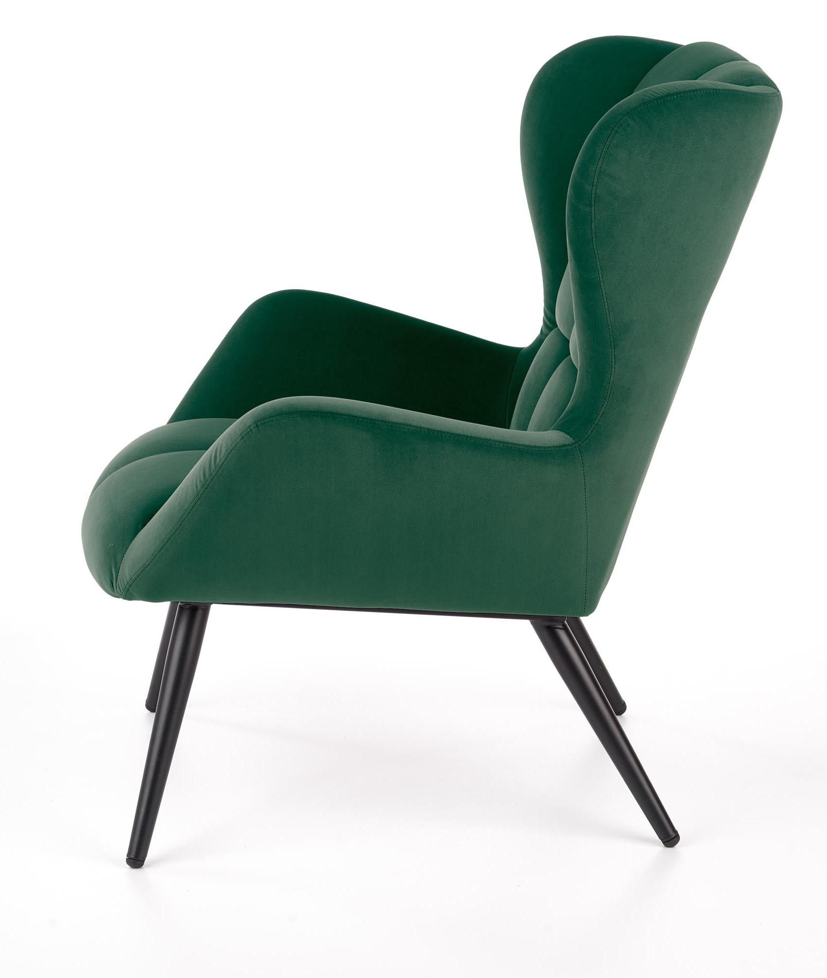 Wykonano z materiału: tkanina / stal malowana proszkowo, kolor tapicerka - c. zielony - BLUVEL 78, nogi - czarny