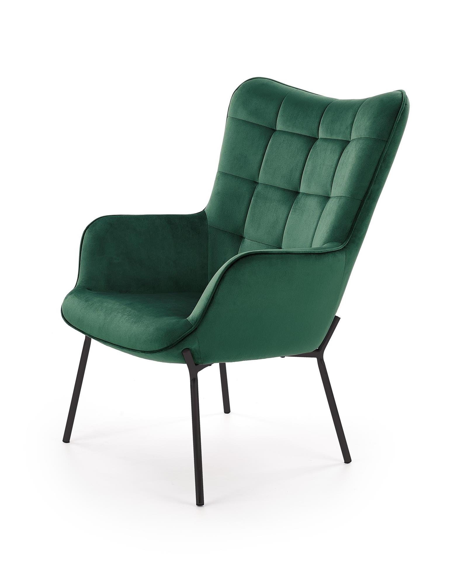 Wykonano z materiału: tkanina / stal malowana proszkowo, kolor tapicerka - ciemny zielony - BLUVEL78, nogi - czarny