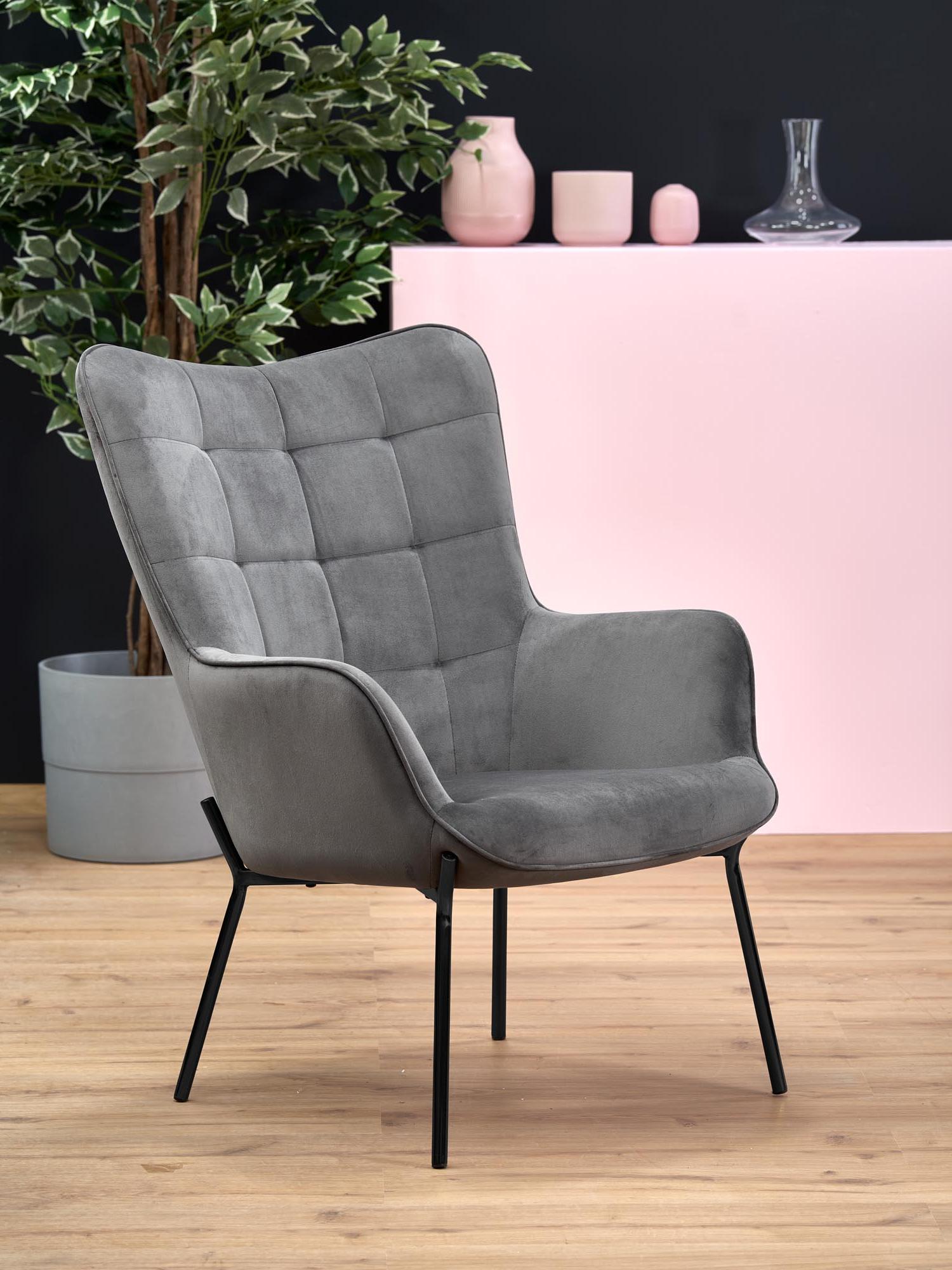 Wykonano z materiału: tkanina / stal malowana proszkowo, kolor tapicerka - popielaty - BLUVEL 14, nogi - czarny